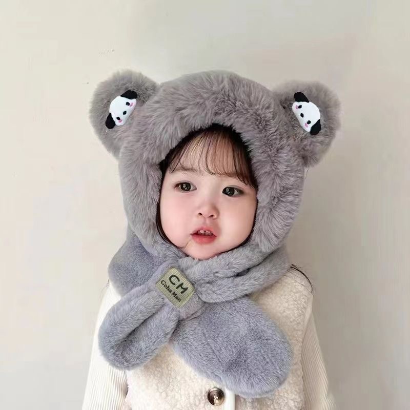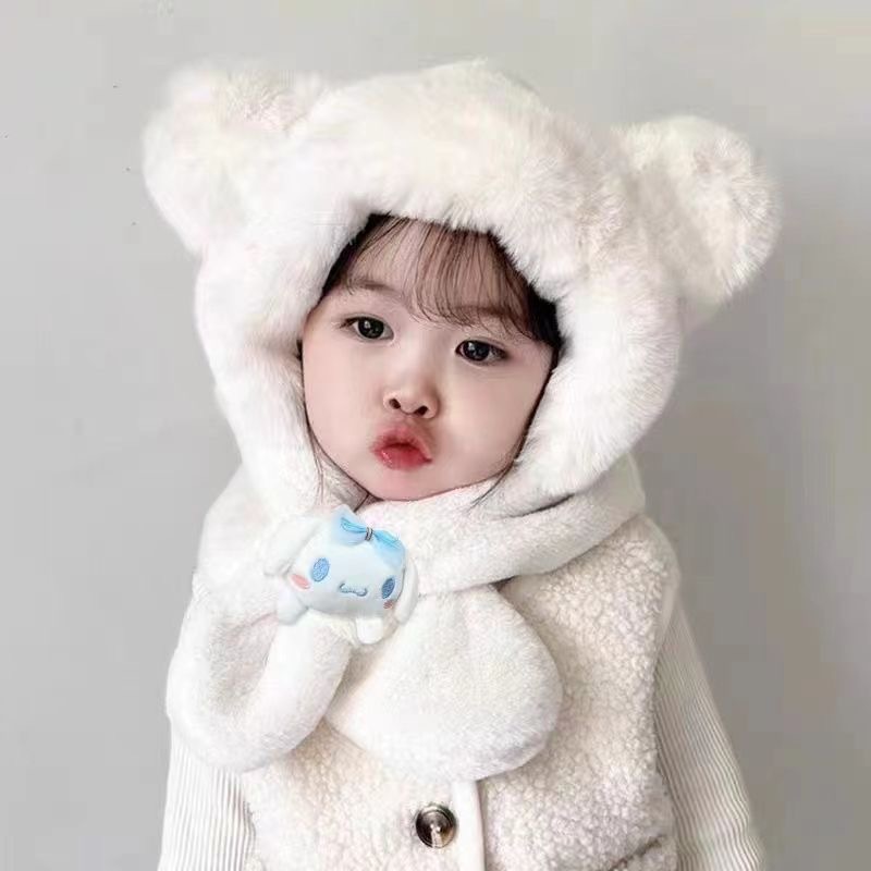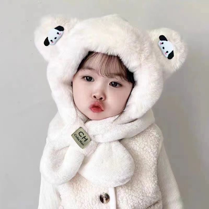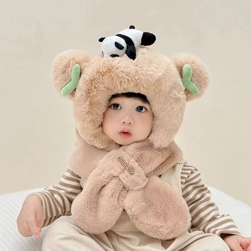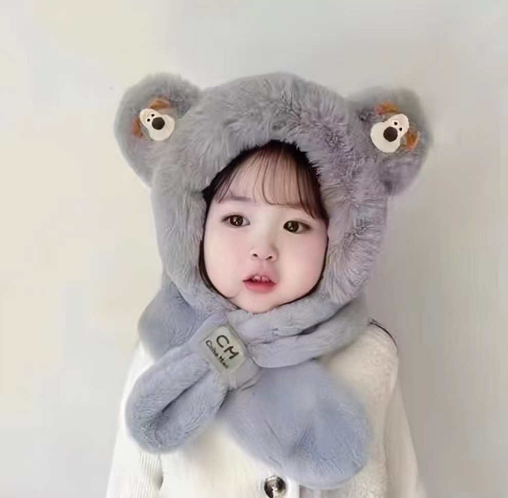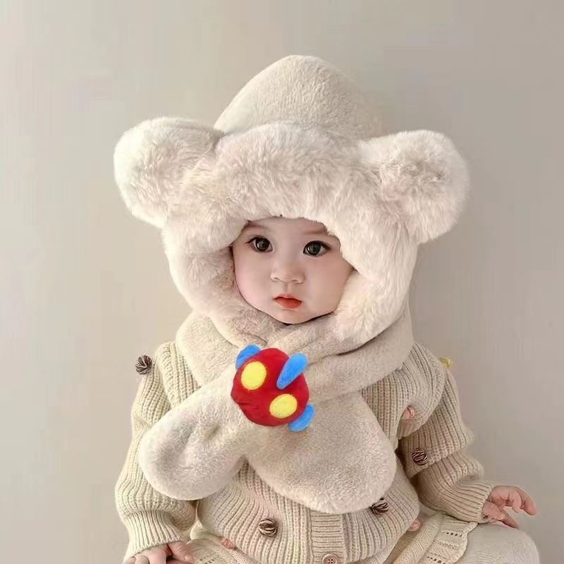 新款冬季小熊帽子围巾一体加绒保暖儿童防风护耳帽男女童毛绒加厚💕