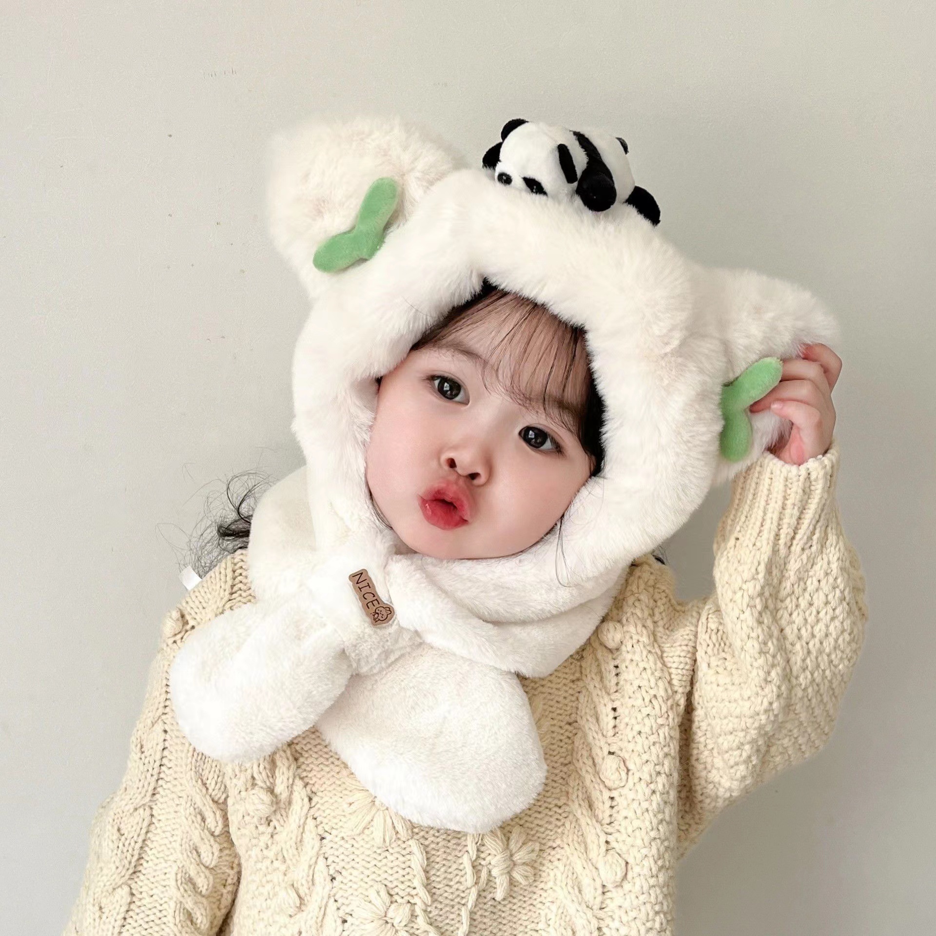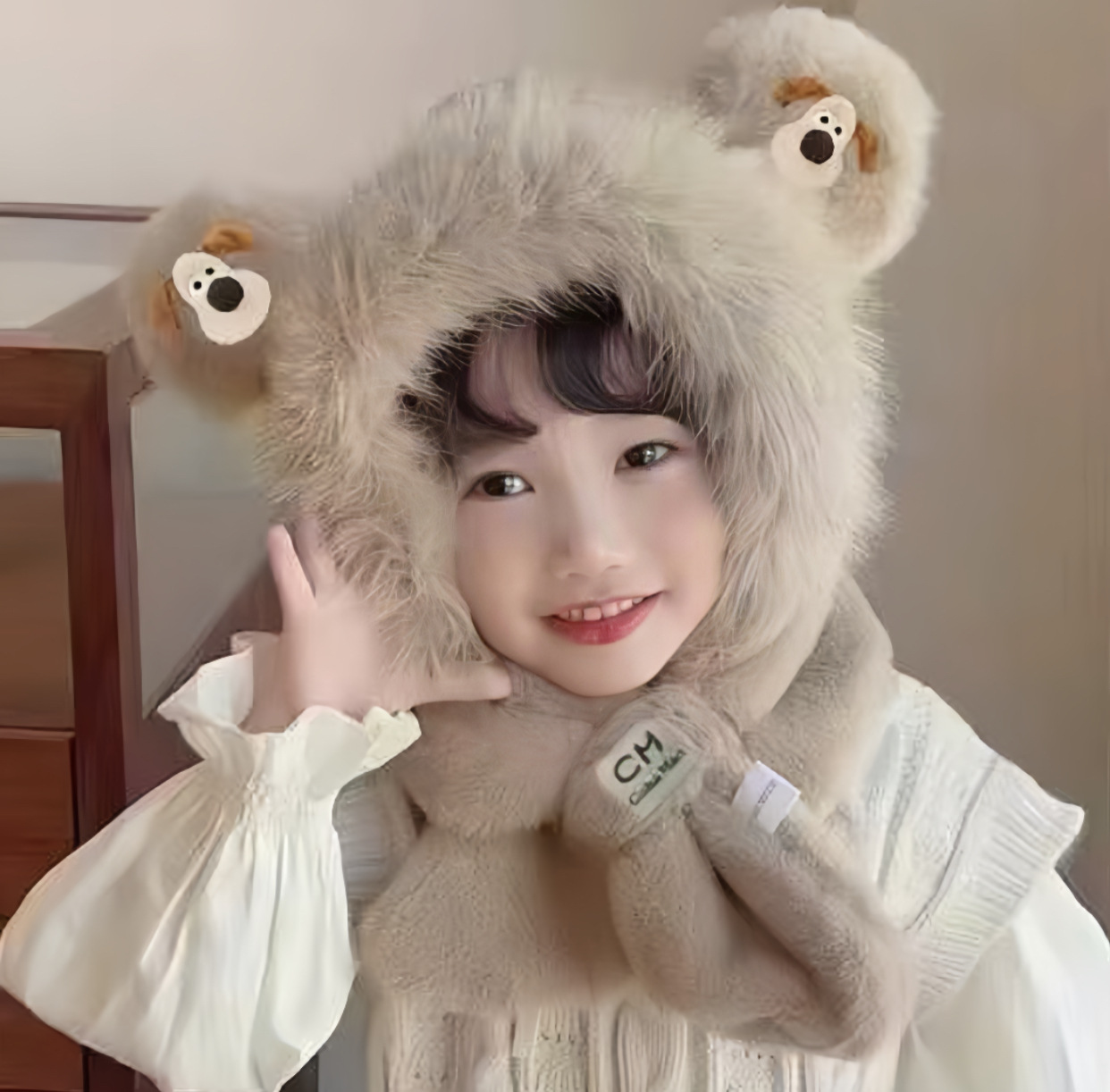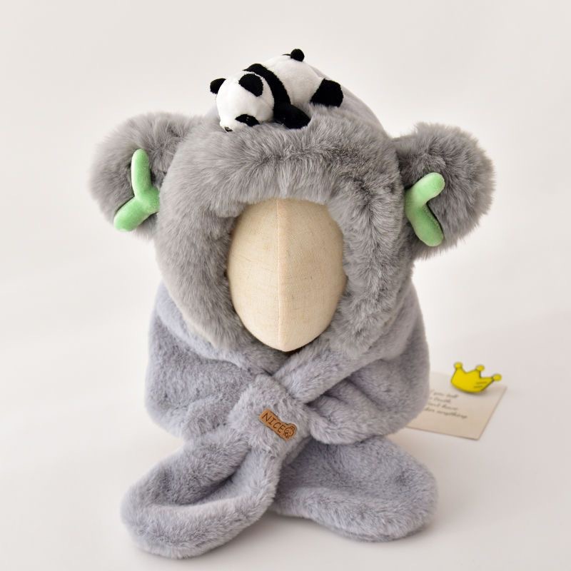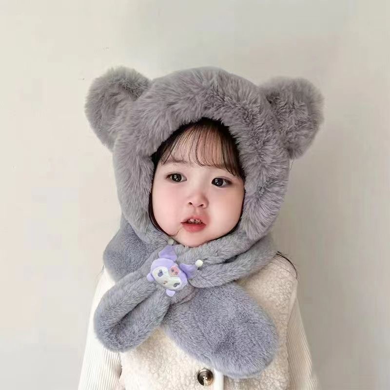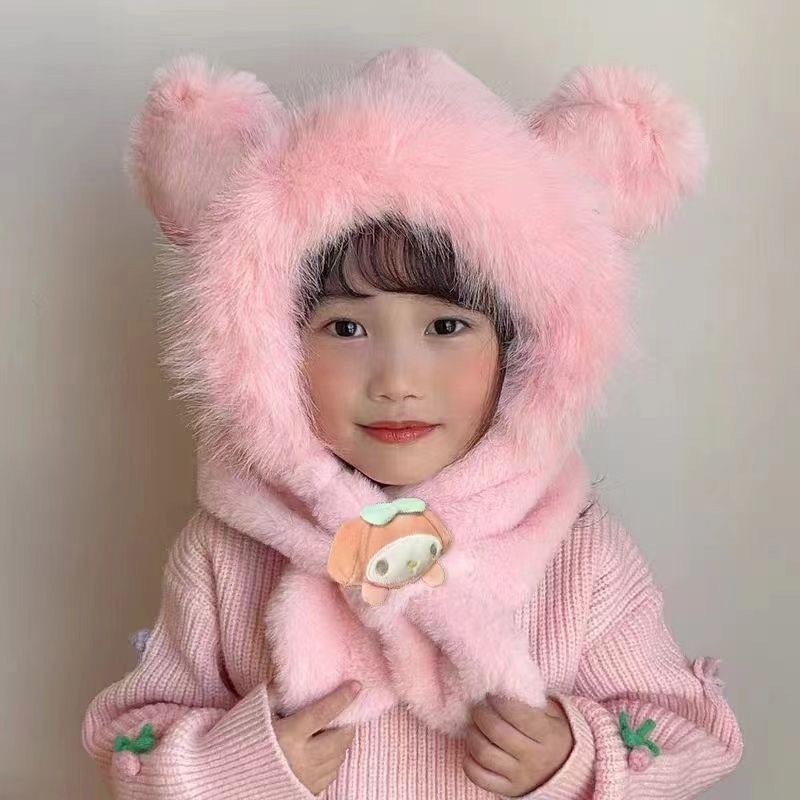 新款冬季小熊帽子围巾一体加绒保暖儿童防风护耳帽男女童毛绒加厚💕