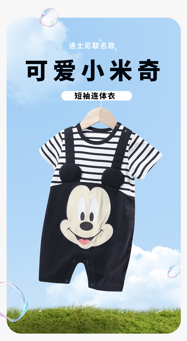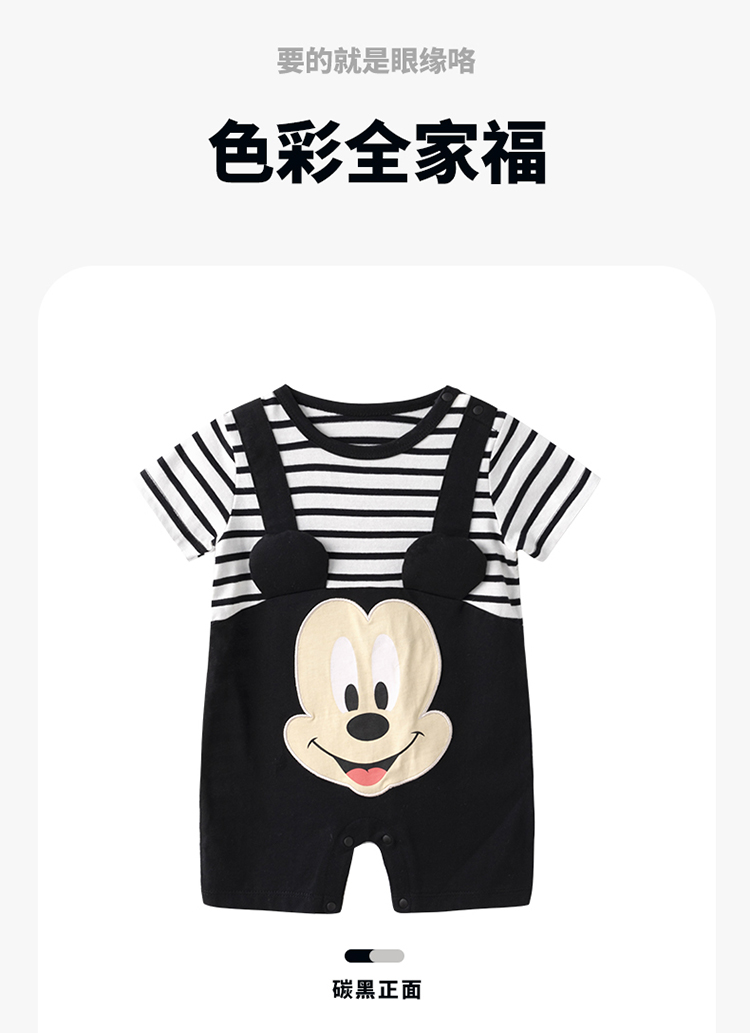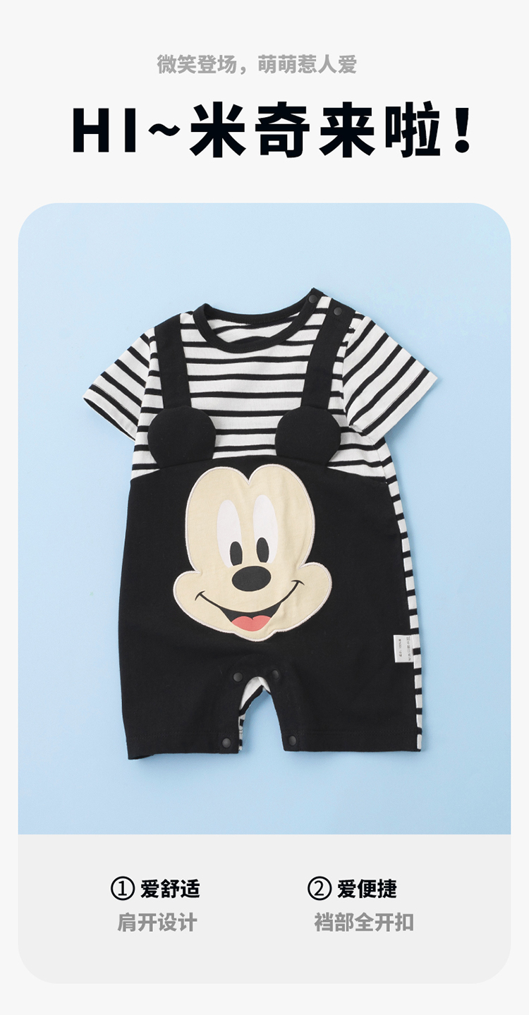 迪士尼贝贝怡联名款男宝宝肩开连体衣新生儿夏季短袖婴儿哈衣爬服232L2051