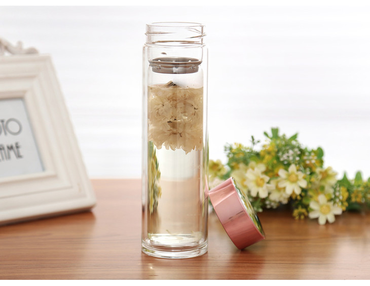 蒲公英玫瑰金玫瑰红双层女神杯高硼硅玻璃随手杯保温防烫水杯