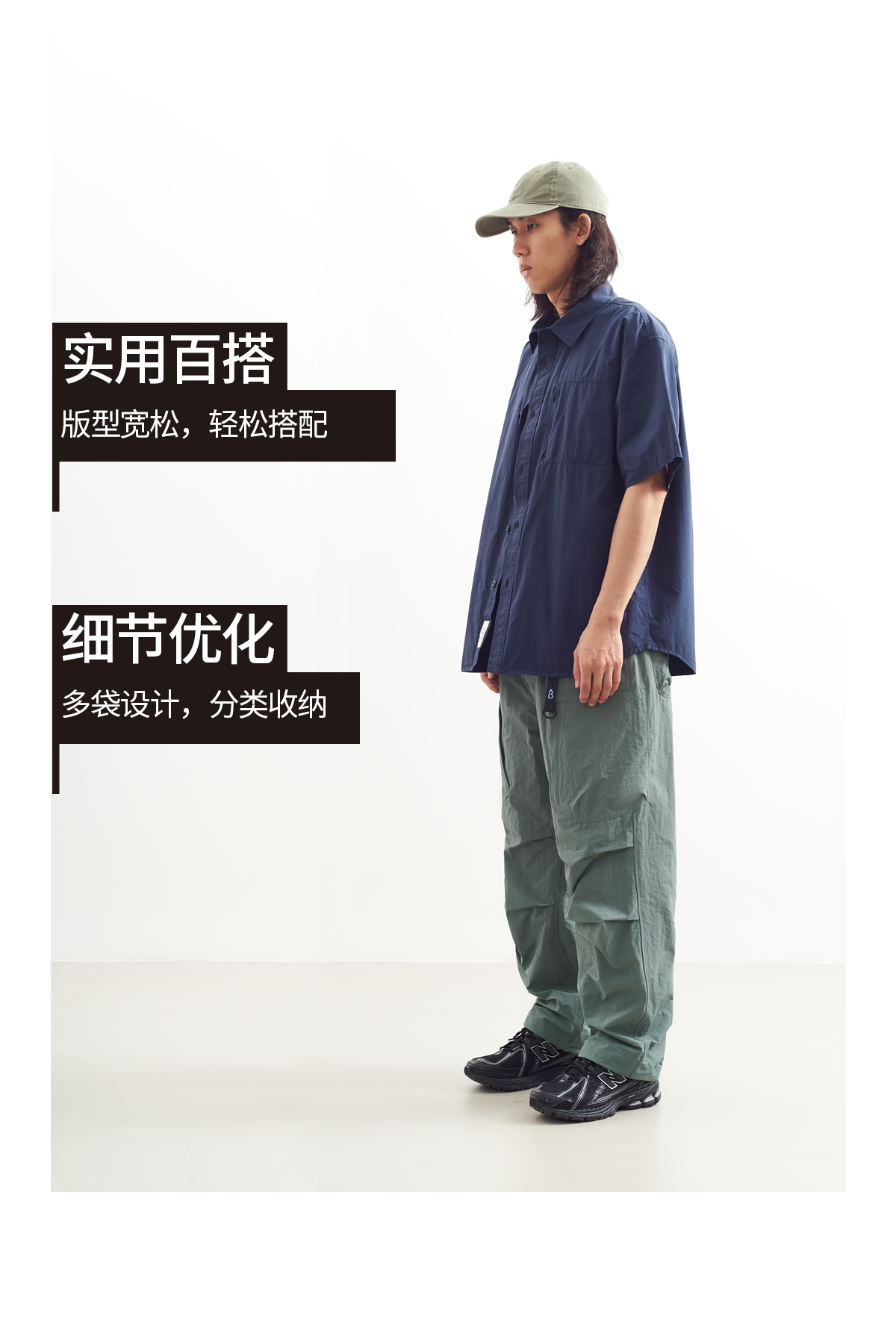 吃茶去chichaqu2024户外卡扣尼龙多袋裤轻薄复古宽松男女百搭