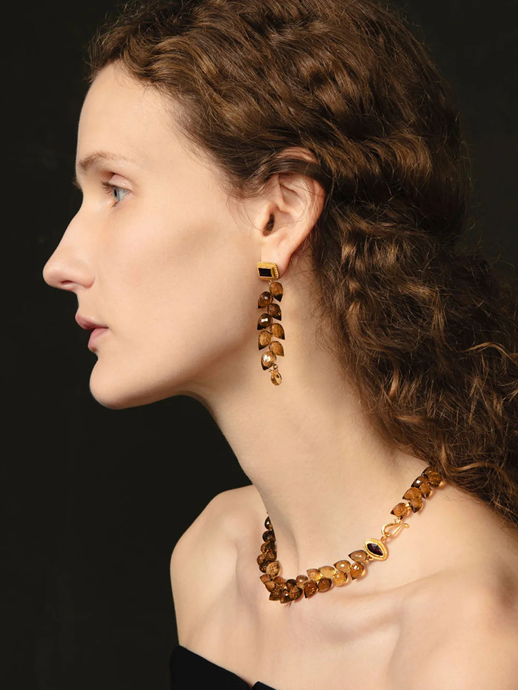 订购6周到|Chan Luu-ANGIE-威士忌石英 石榴石 黄水晶 耳环[美国设计师]