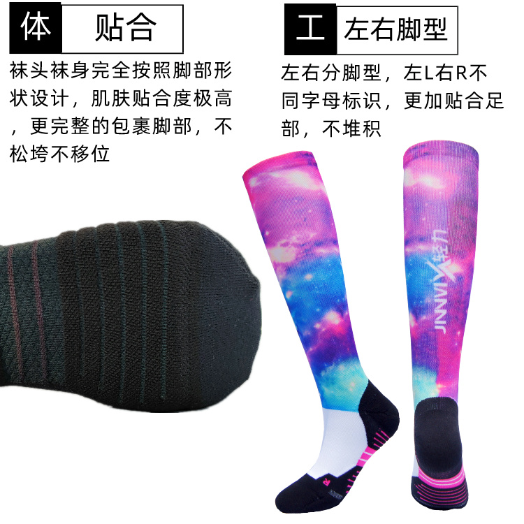 【核心级】JINNMIX轻力星空长筒梯度压缩跑步袜