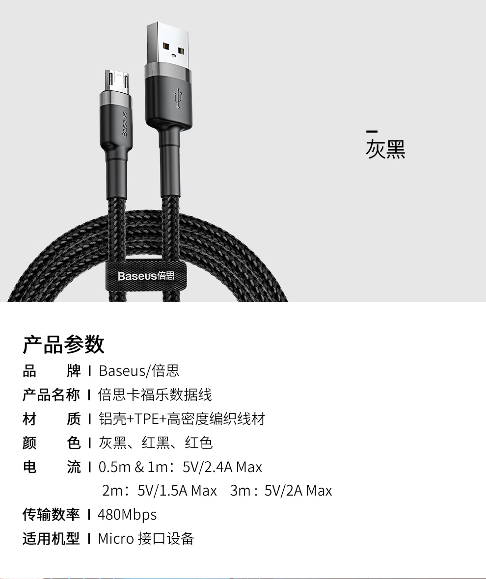 卡福乐数据线 USB For Micro双面盲插 1.5A 2M