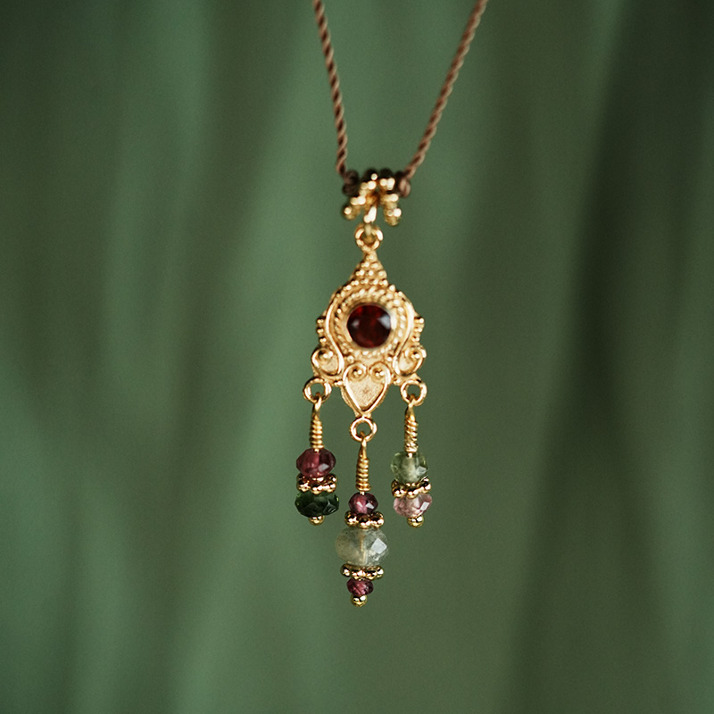 订购8周到|Tityaravy-Padma-莲花护身符 石榴石 拉长石 碧玺 项链[法国设计师]