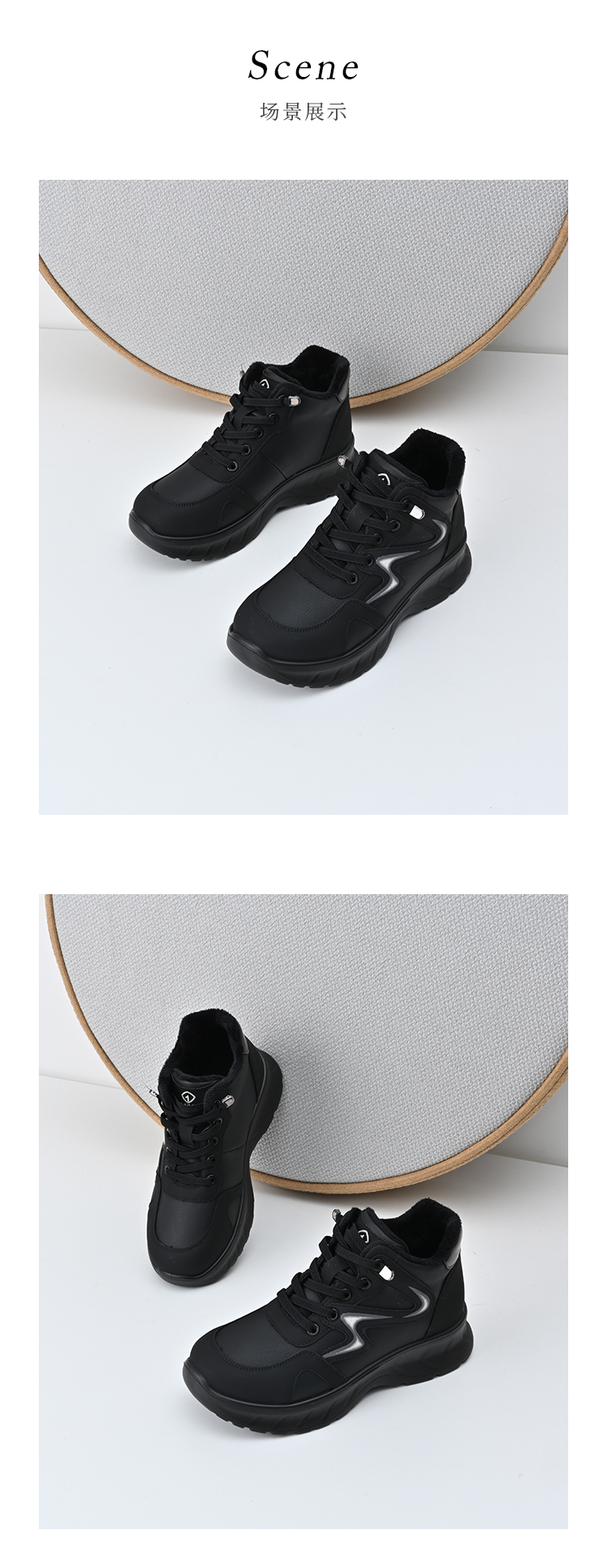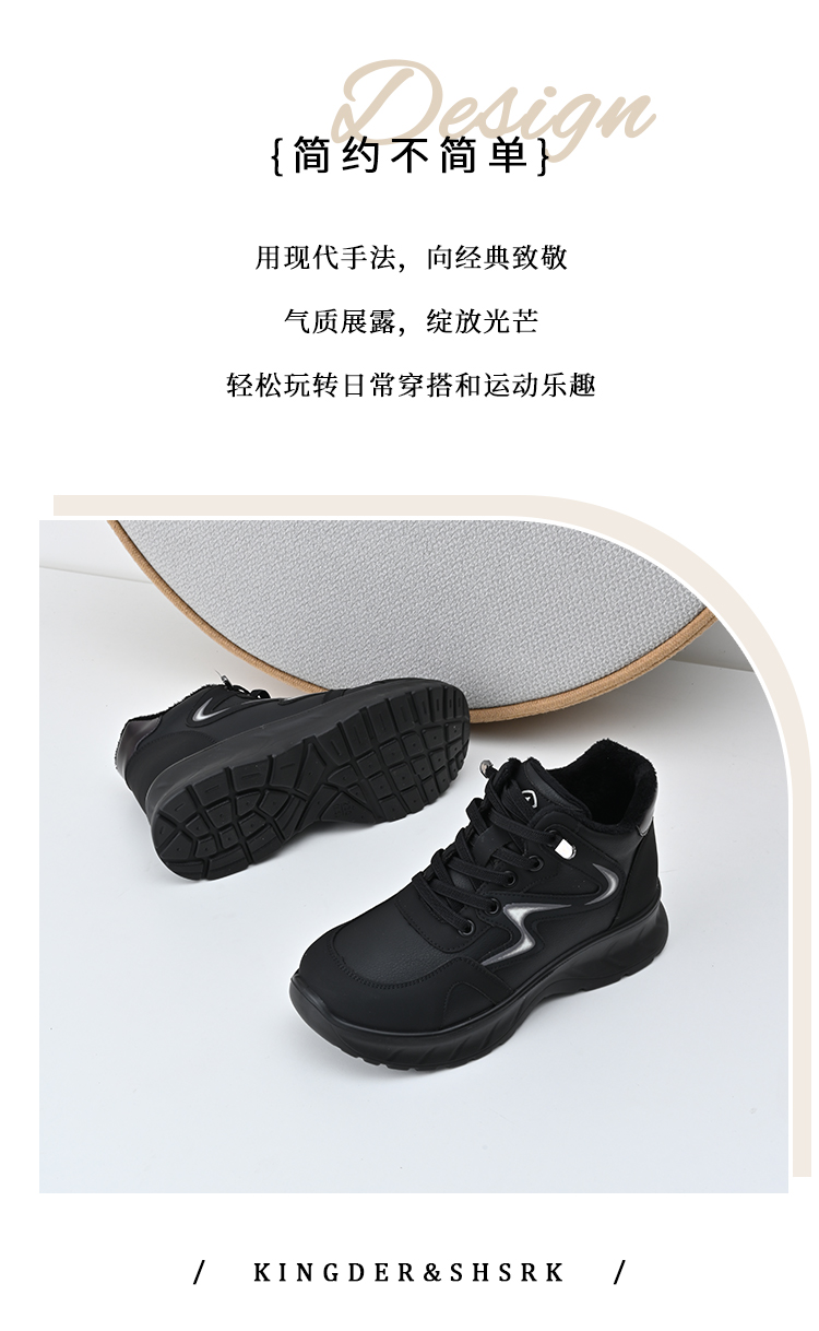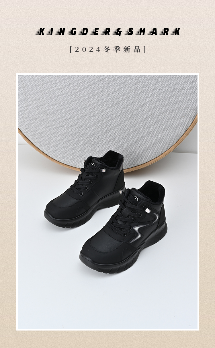 经典鲨2024年冬季新款黑色加绒加厚通勤妈妈款休闲鞋棉鞋女KW233-D58181