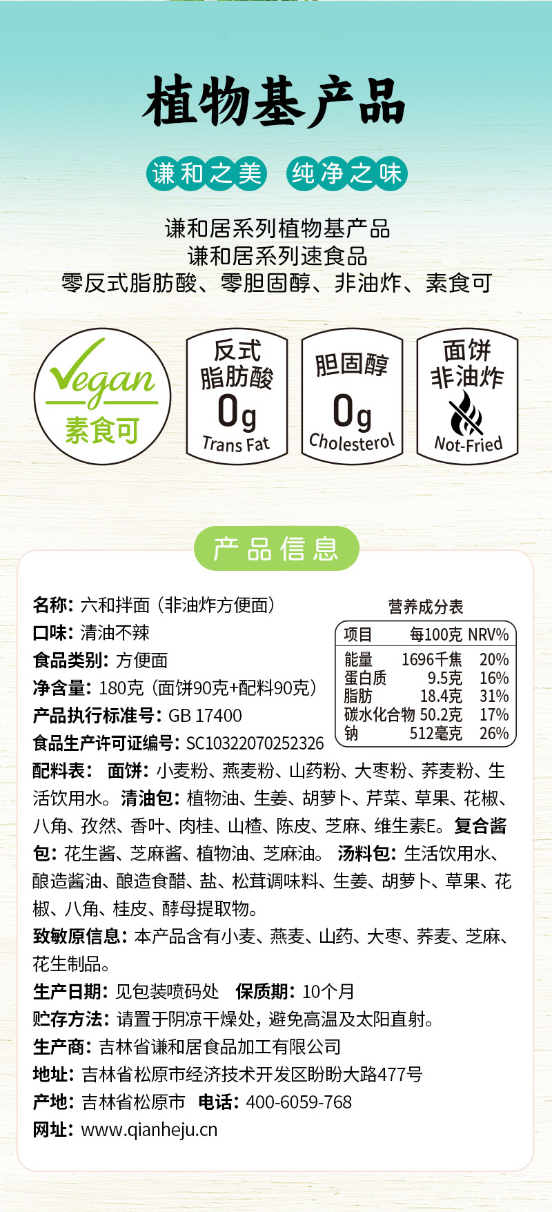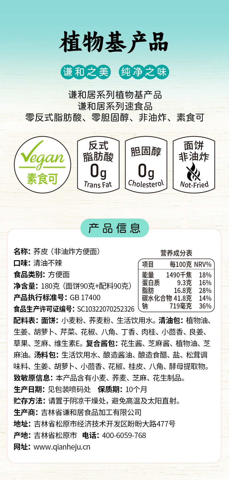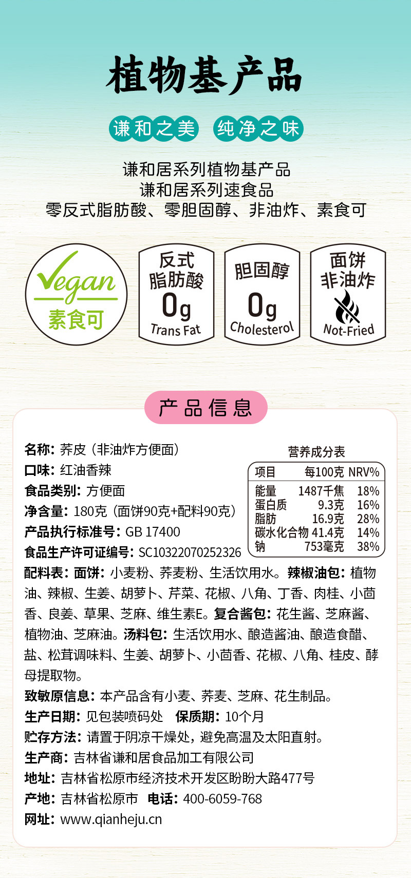 谦和居 非油炸植物基 香辣/不辣 凉皮/荞皮/小面 6桶装