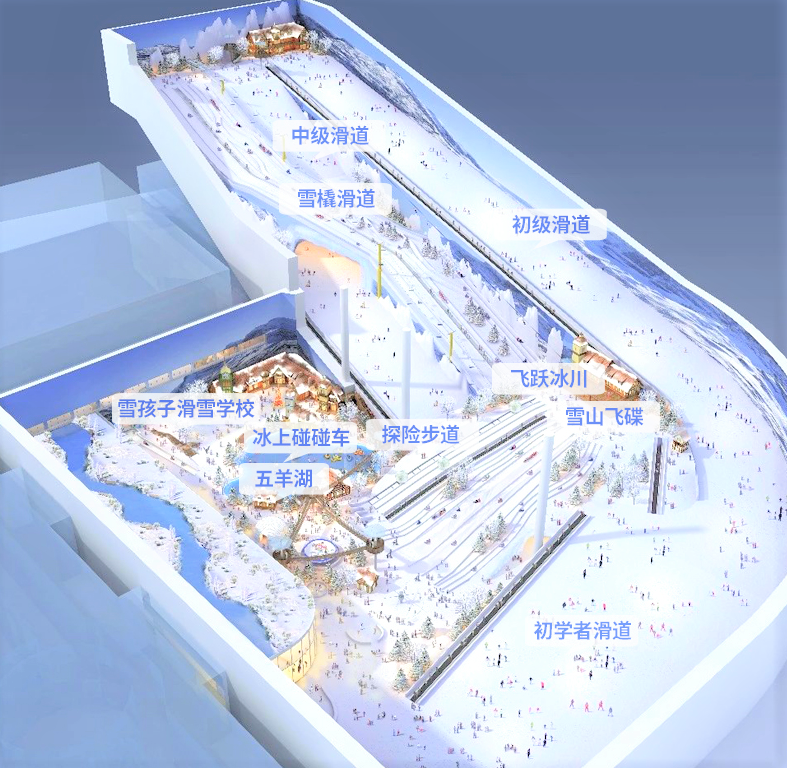 广州热雪奇迹建筑面积约75000平方米,世界领先的第4代室内滑雪场,可同时容纳约3000人娱雪。拥有世界超长室内初级滑道以及世界首创立体交叉滑道,还设有中级滑道、高级滑道。特别设有唯美下雪体验区,让宾客身在南国,无论是享受雪地里的亲子时光、狂欢式的雪上运动、还是专业滑雪的乐趣,广州融创雪世界都将以360度的清凉体验,全年365天为游客带来冰雪的盛大嘉年华!