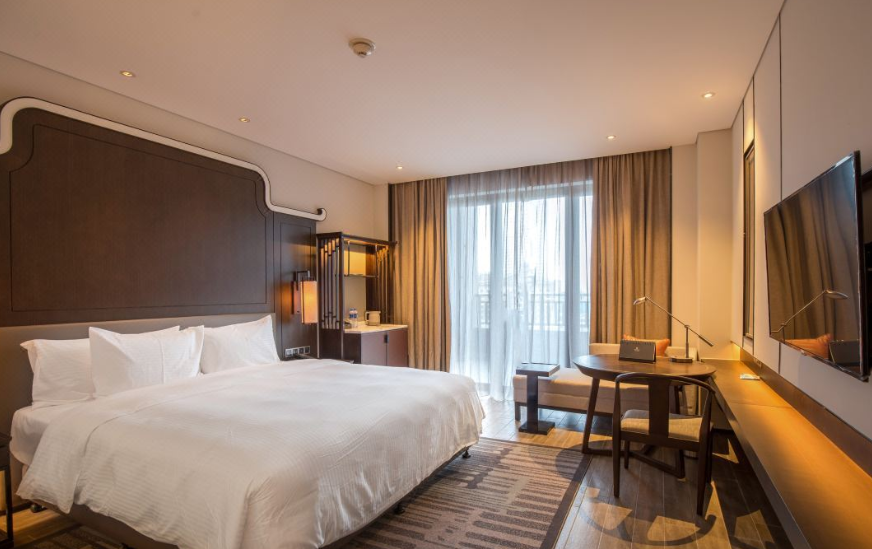 酒店设计风格以岭南民国时期的民居为基调,融合西方近代美学,目之所及皆可感受到深厚的文化底蕴;酒店拥有三百余间客房及套房,房间面积40平方米起,为到访的商务及休闲宾客缔造温馨惬意的居停之所。
