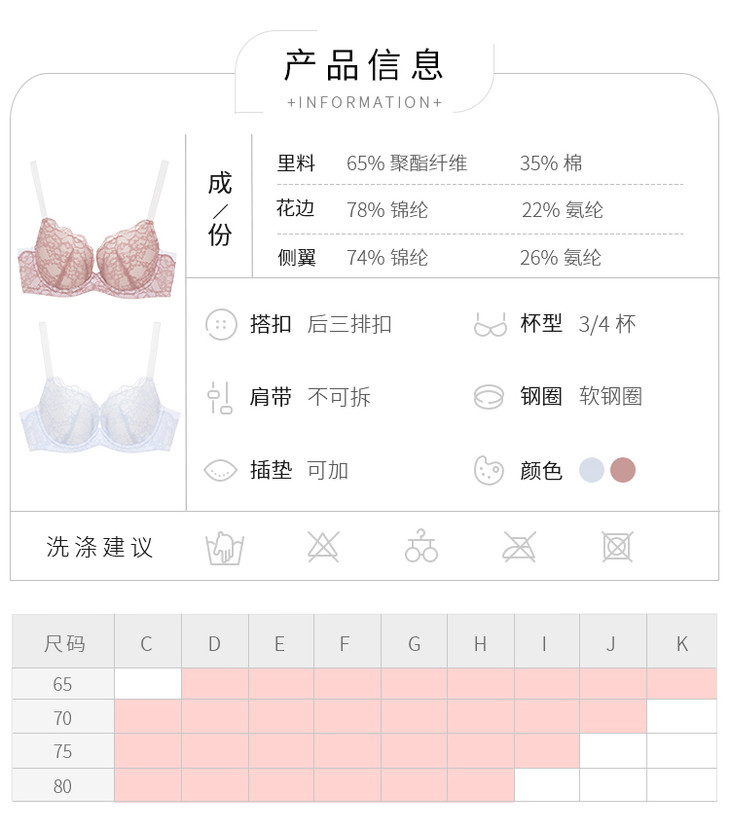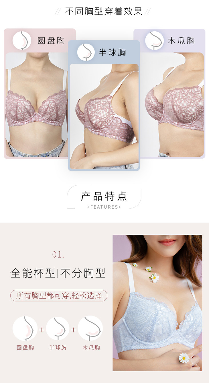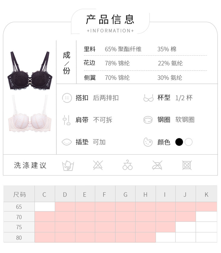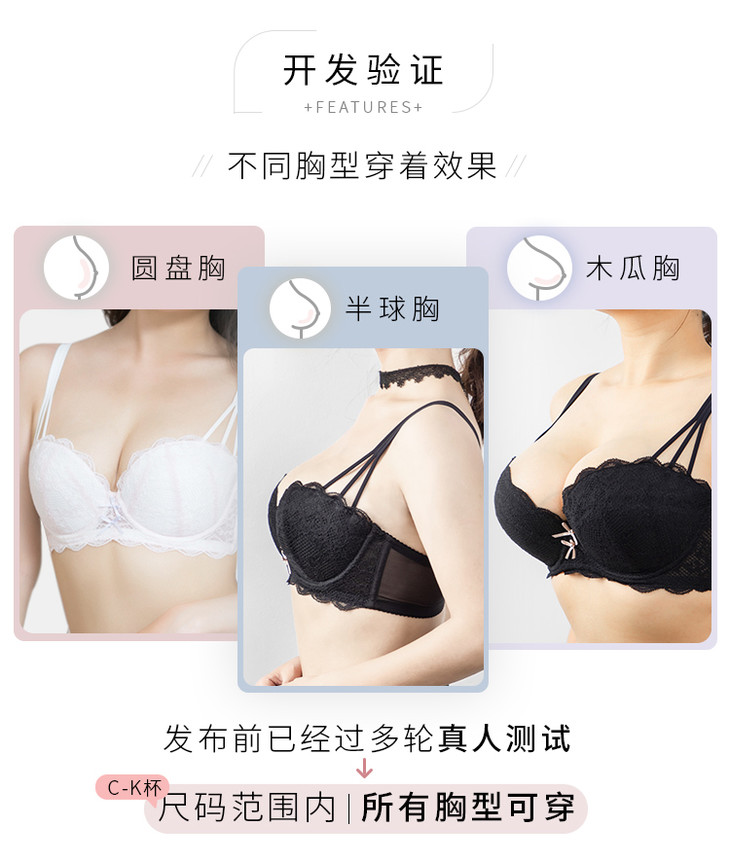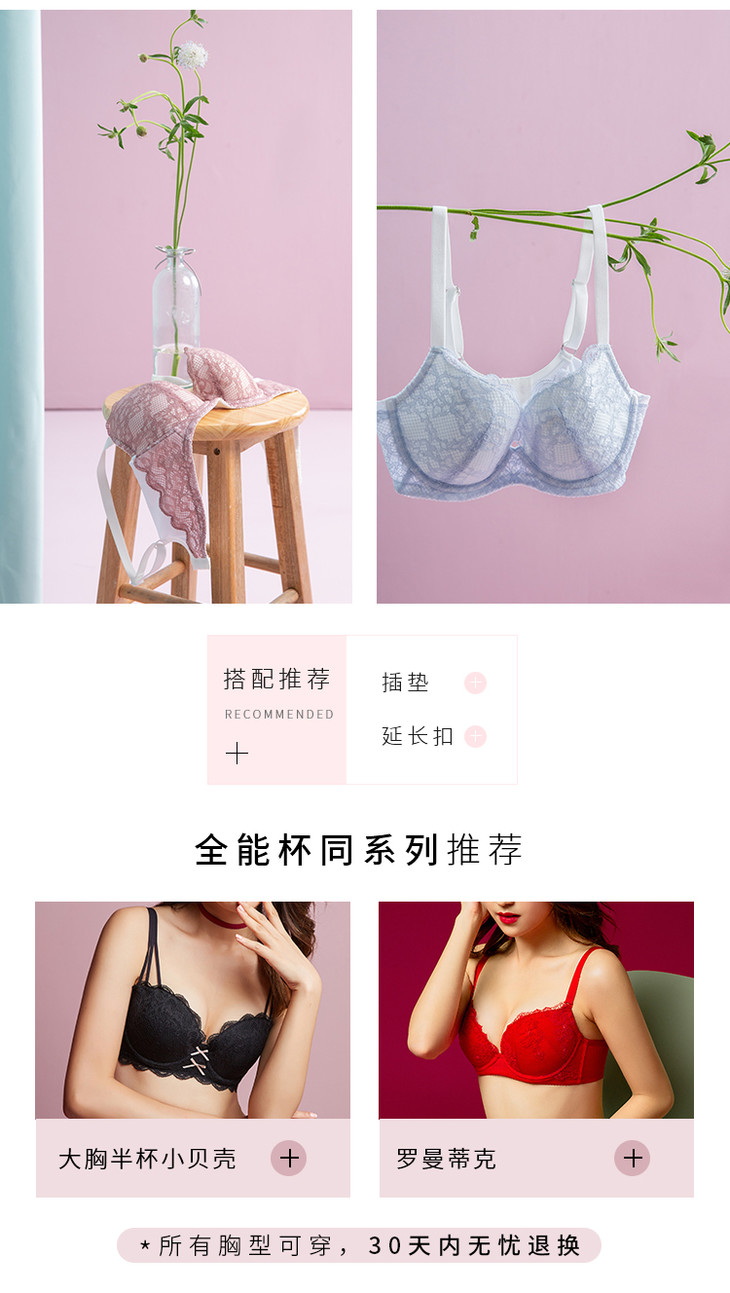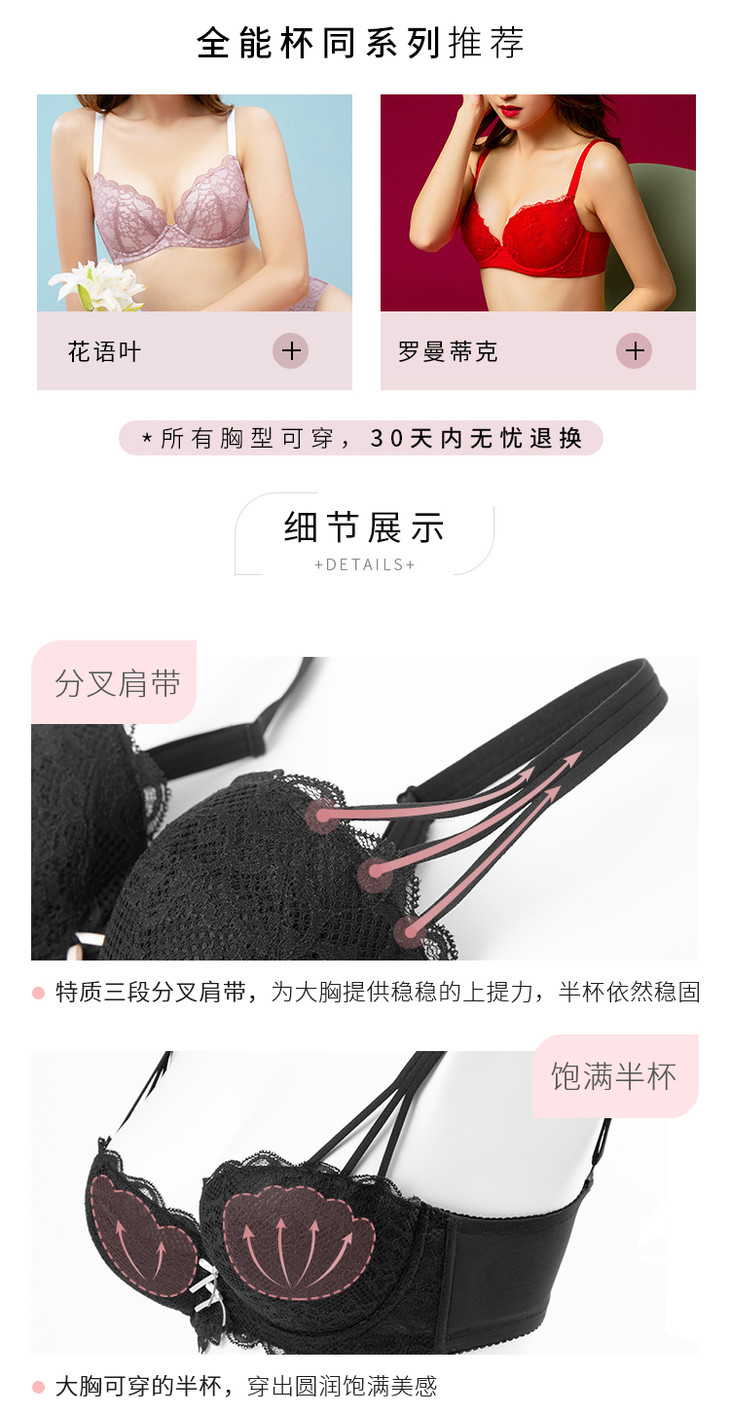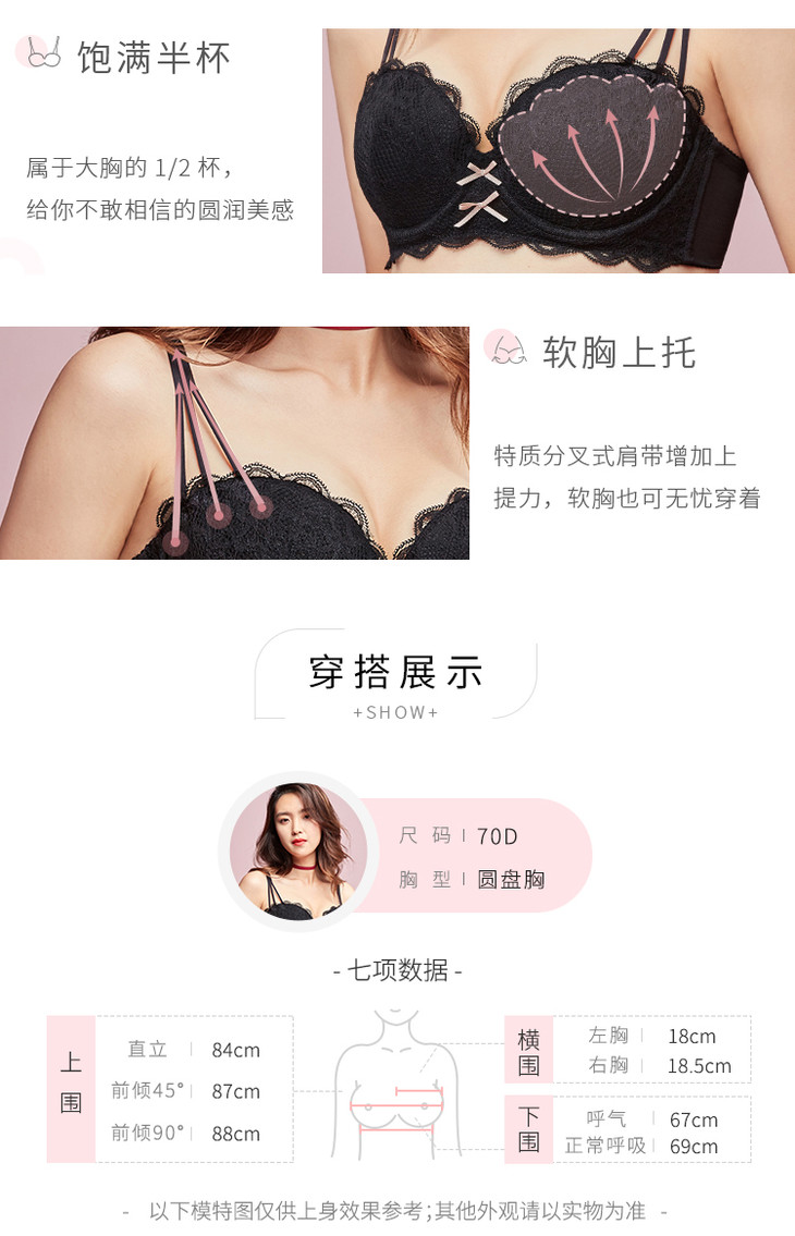 三段式肩带饱满半杯阳台杯小贝壳: