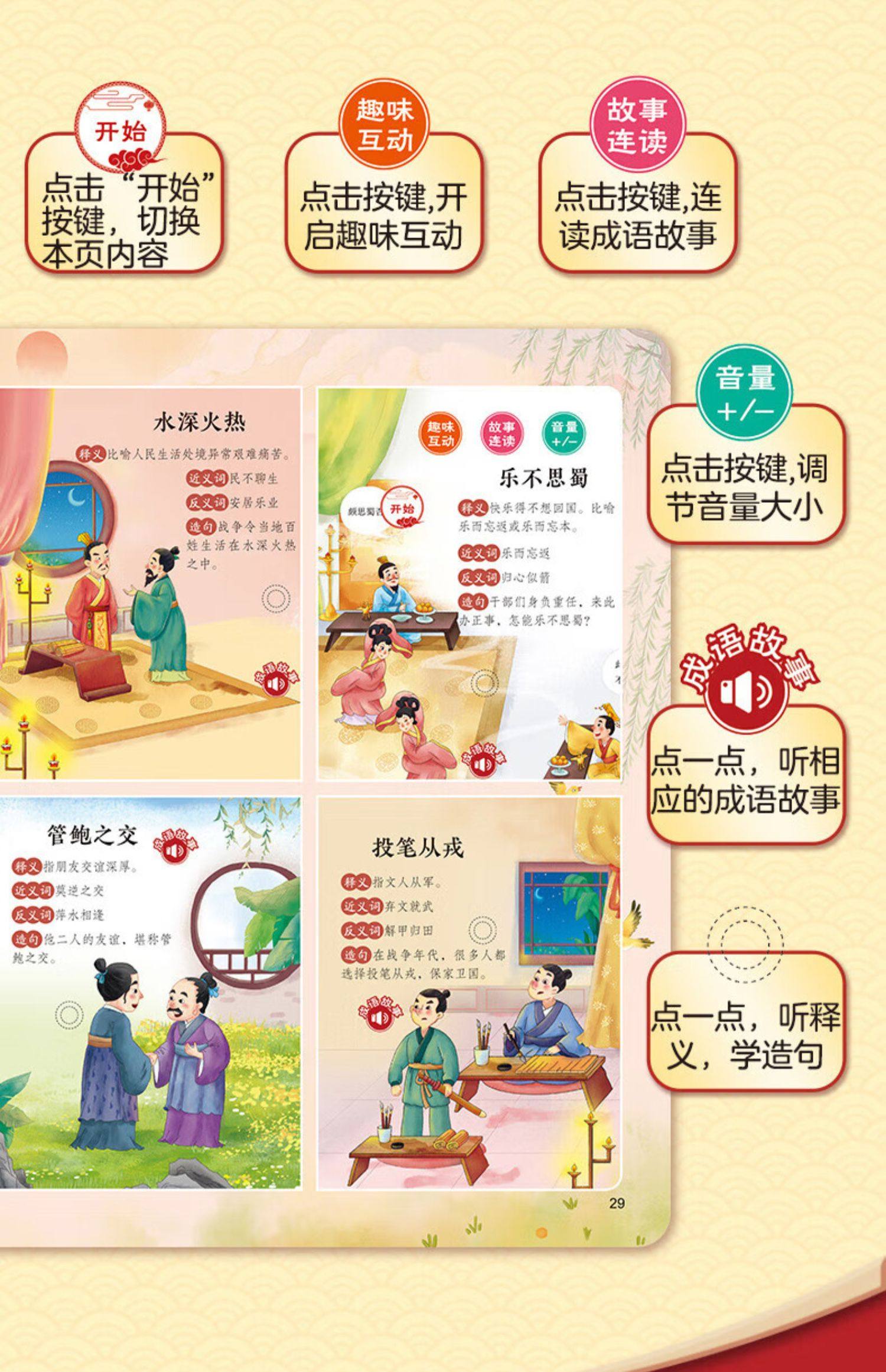 会说话的成语故事成语接龙点读发声书 会说话的有声书启蒙认知绘本幼儿童读物早教3-6岁手指点读一二三年级词语解释造句接龙近反义