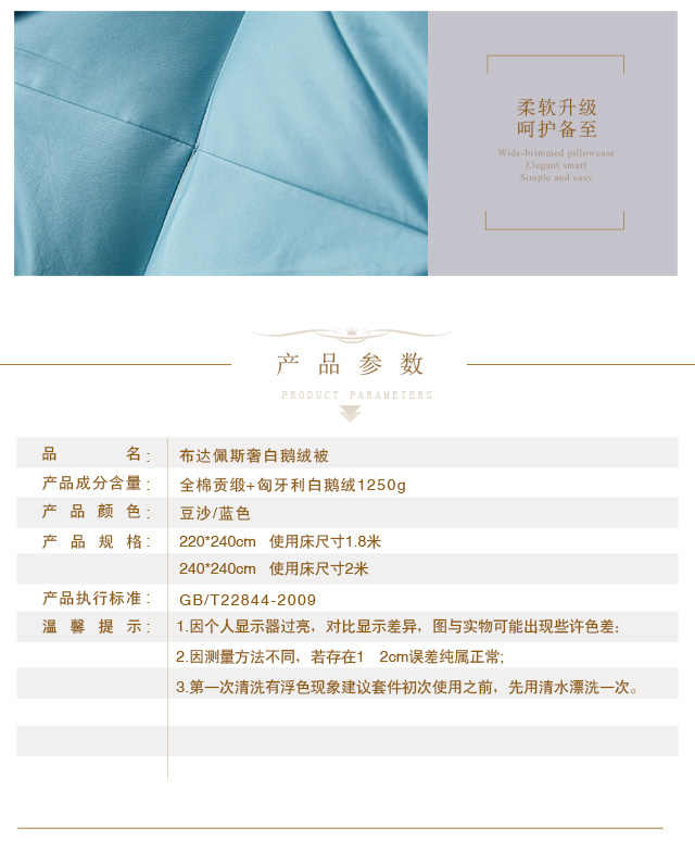 布达佩斯奢白鹅绒被(豆沙色/蓝色)220x240