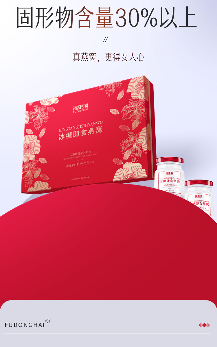 福东海 即食燕窝450g【75gx6瓶】冰糖燕窝礼盒装 节日高端送礼佳品 孕妇产妇滋补营养品 送长辈送女性礼物