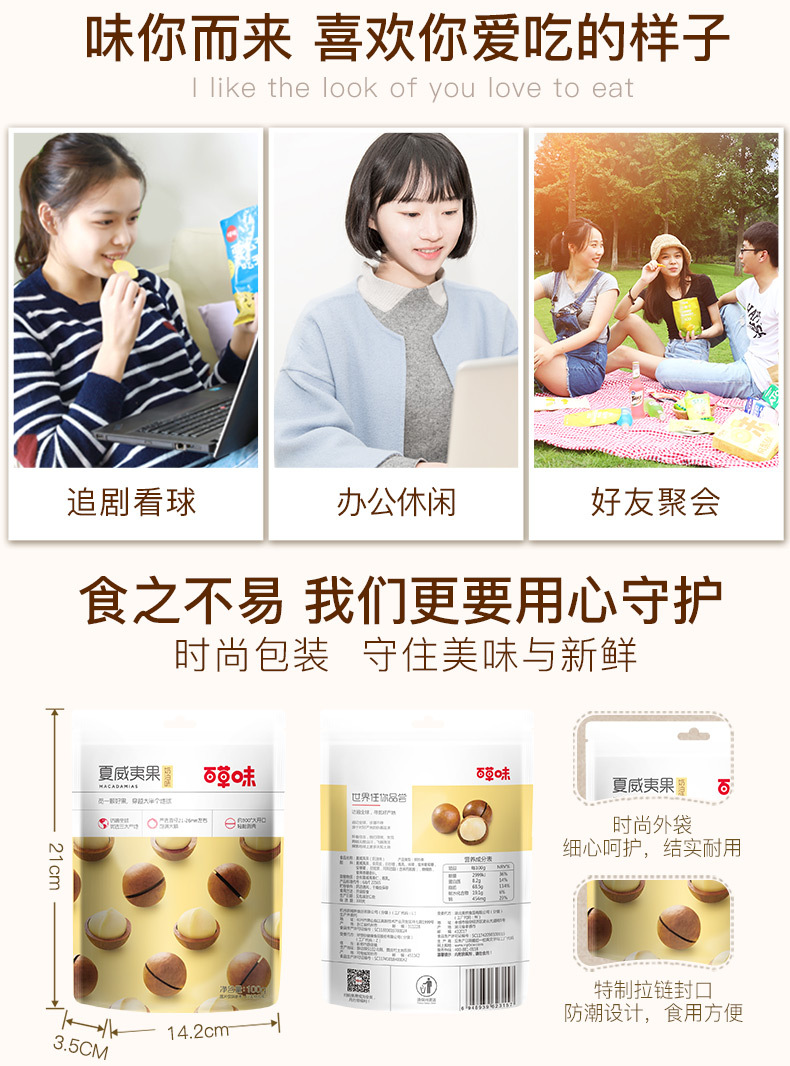 百草味夏威夷果100g奶油味坚果炒货小零食夏威夷果香脆