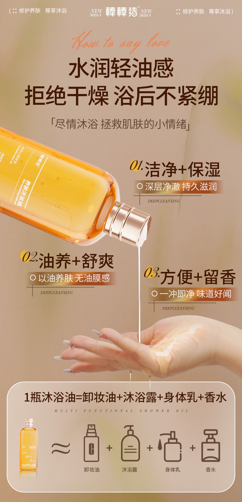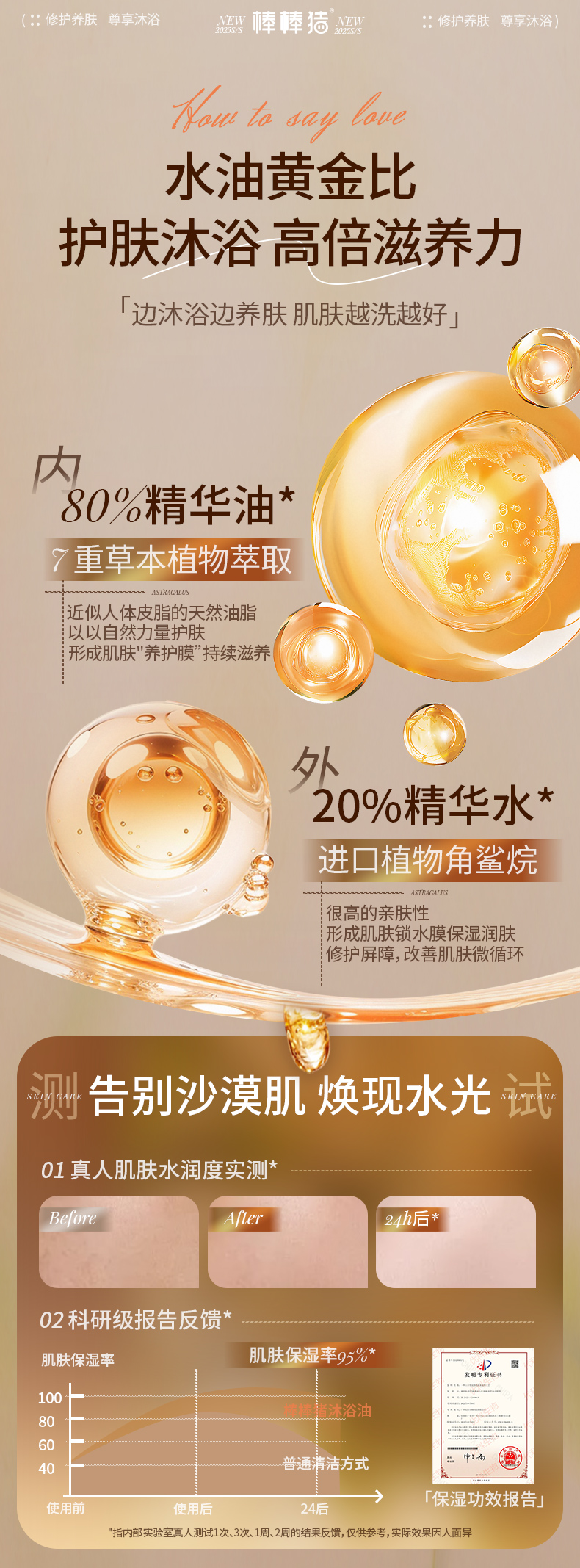 养肤沐浴油 10倍保湿 72H留香 以油养肤 植物精油 专利修护肌肤