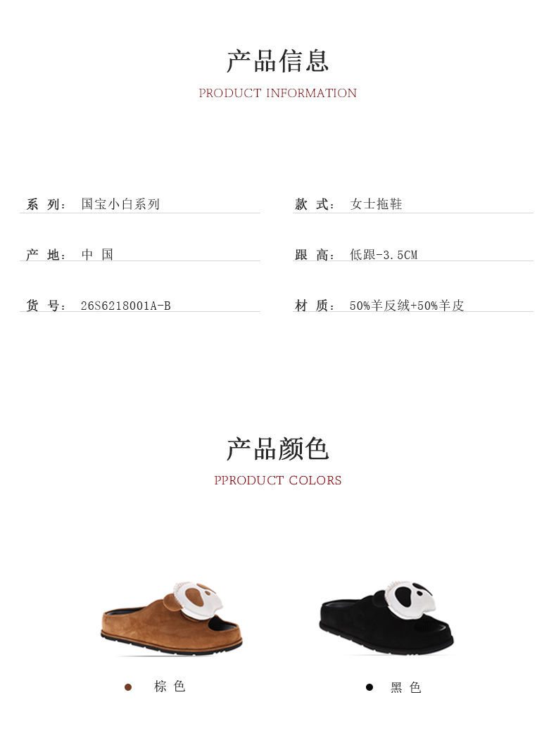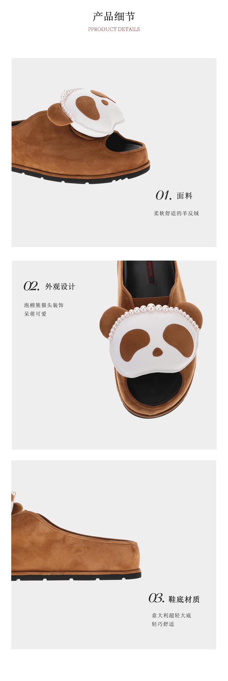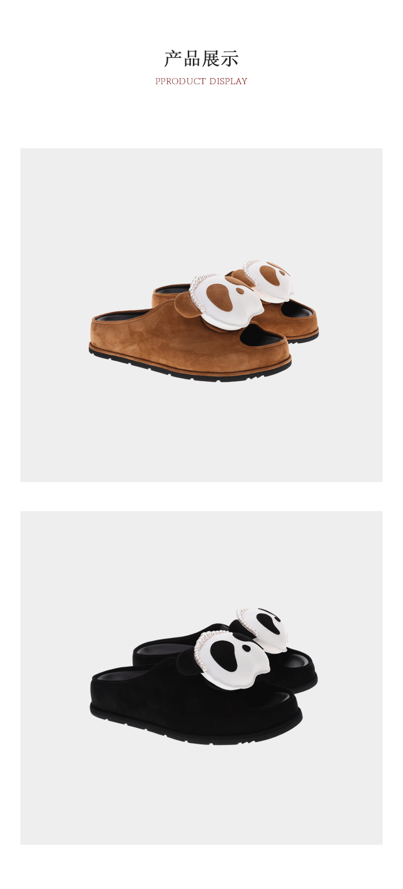 sheme国宝小白系列熊猫头串珠点缀可爱休闲女士厚底拖鞋可定制
