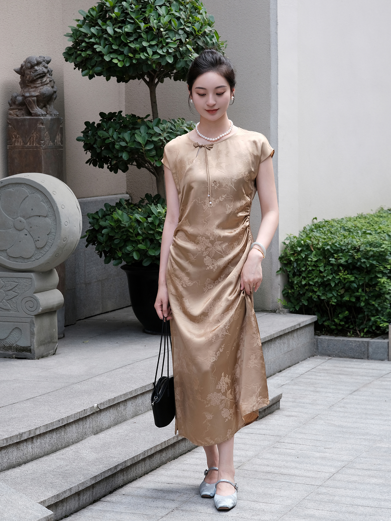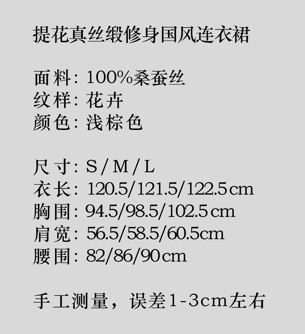 盛唐婧 |提花真丝缎修身国风连衣裙-浅棕色