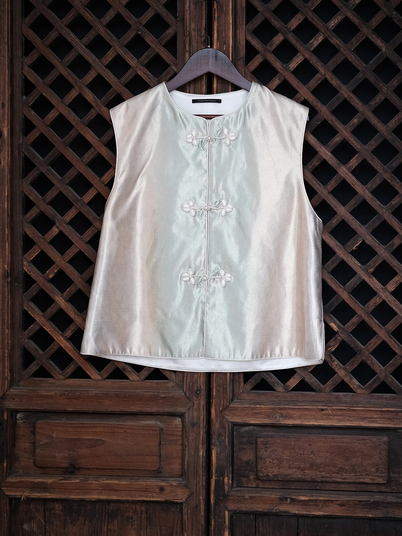 盛唐牡丹| 西阵织对襟马甲-青粉
