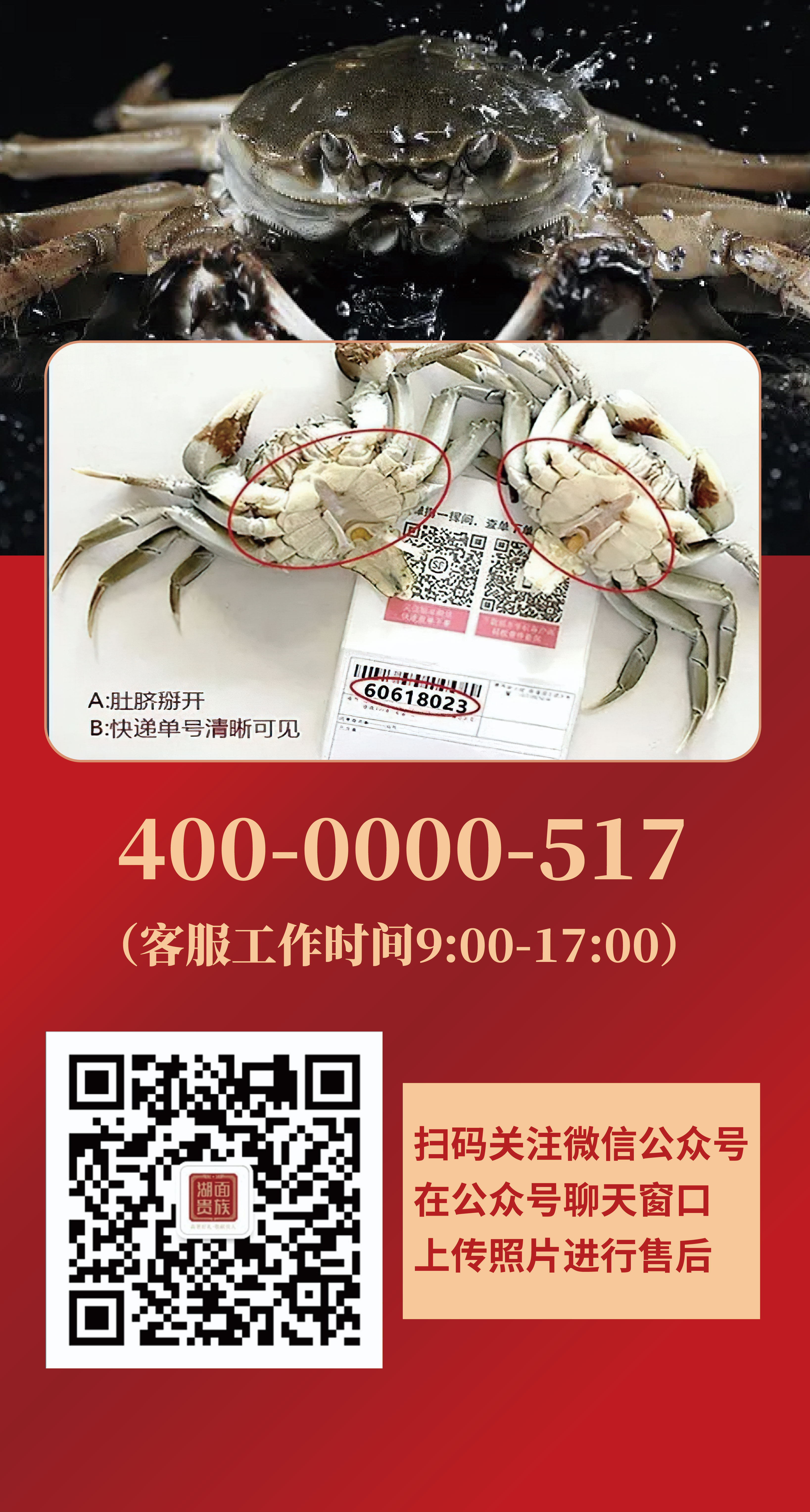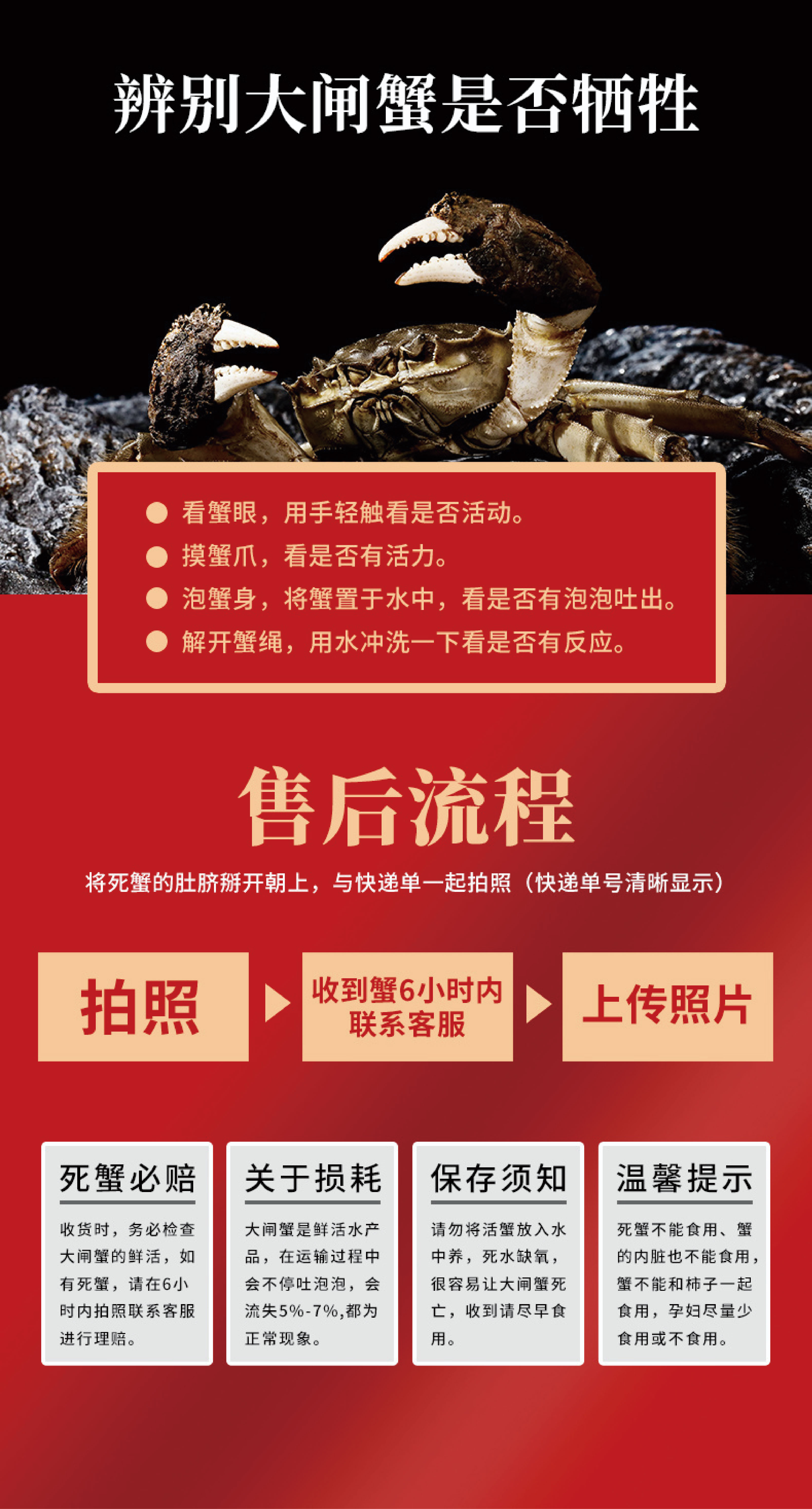 【品名】湖面贵族大闸蟹 【规格】规格重量都是去绳裸重 【产地】江苏苏州 【发货地】江苏苏州 【快递】 【不发货区域】新疆、西藏、港澳台不发货 【发货时效】48小时,节假日顺延 【提货日期】9月底~12月底 【卡券有效期】永久有效 【温馨提示】一经发出不支持拦截,请谨慎下单! |