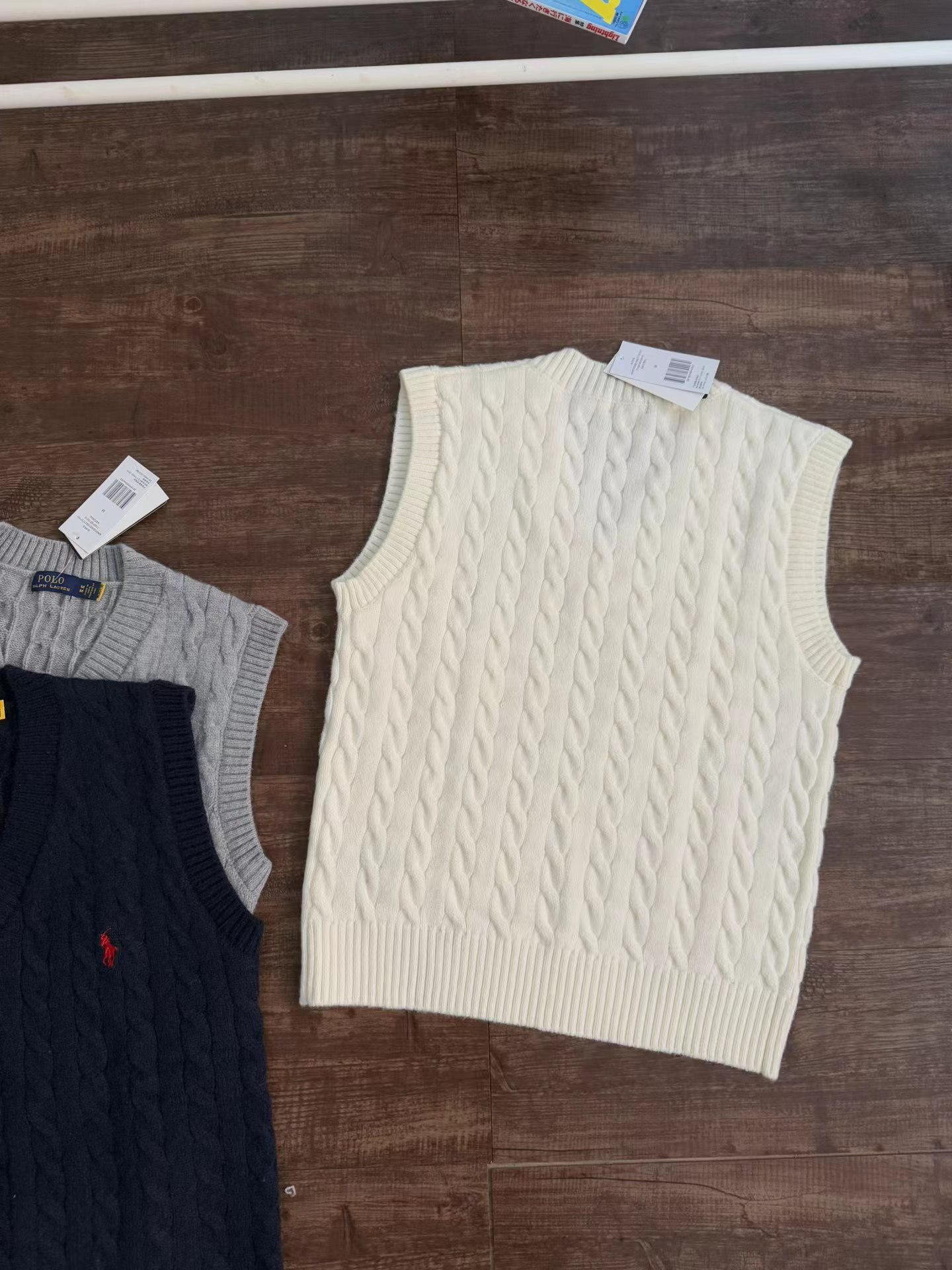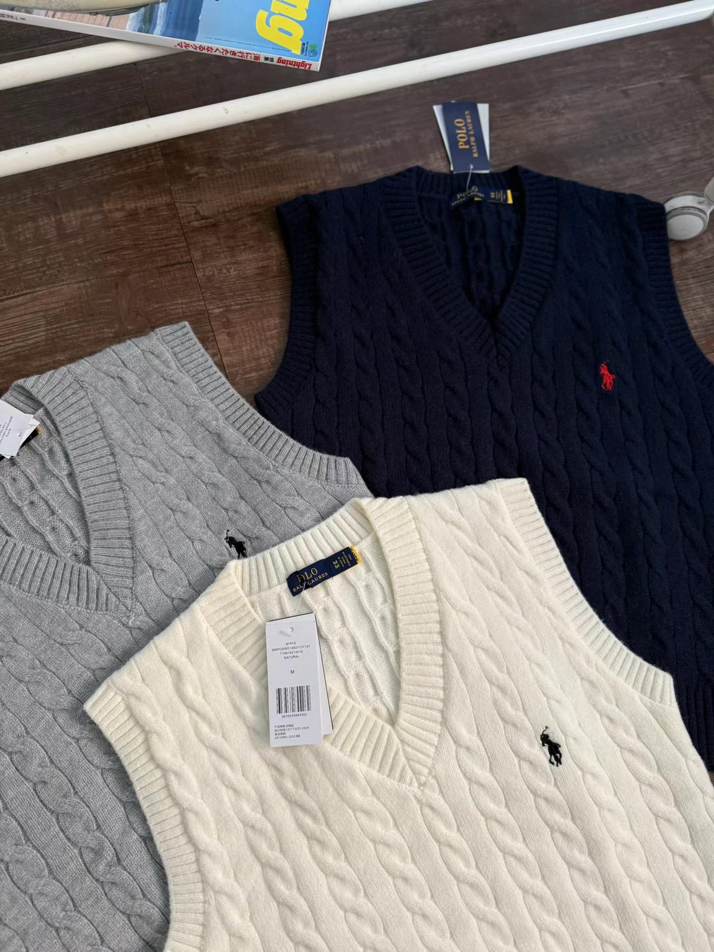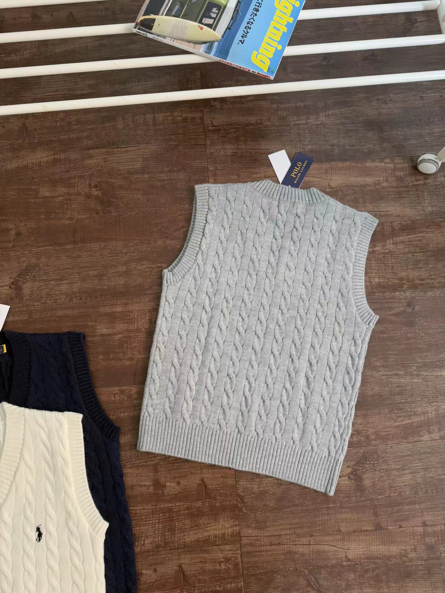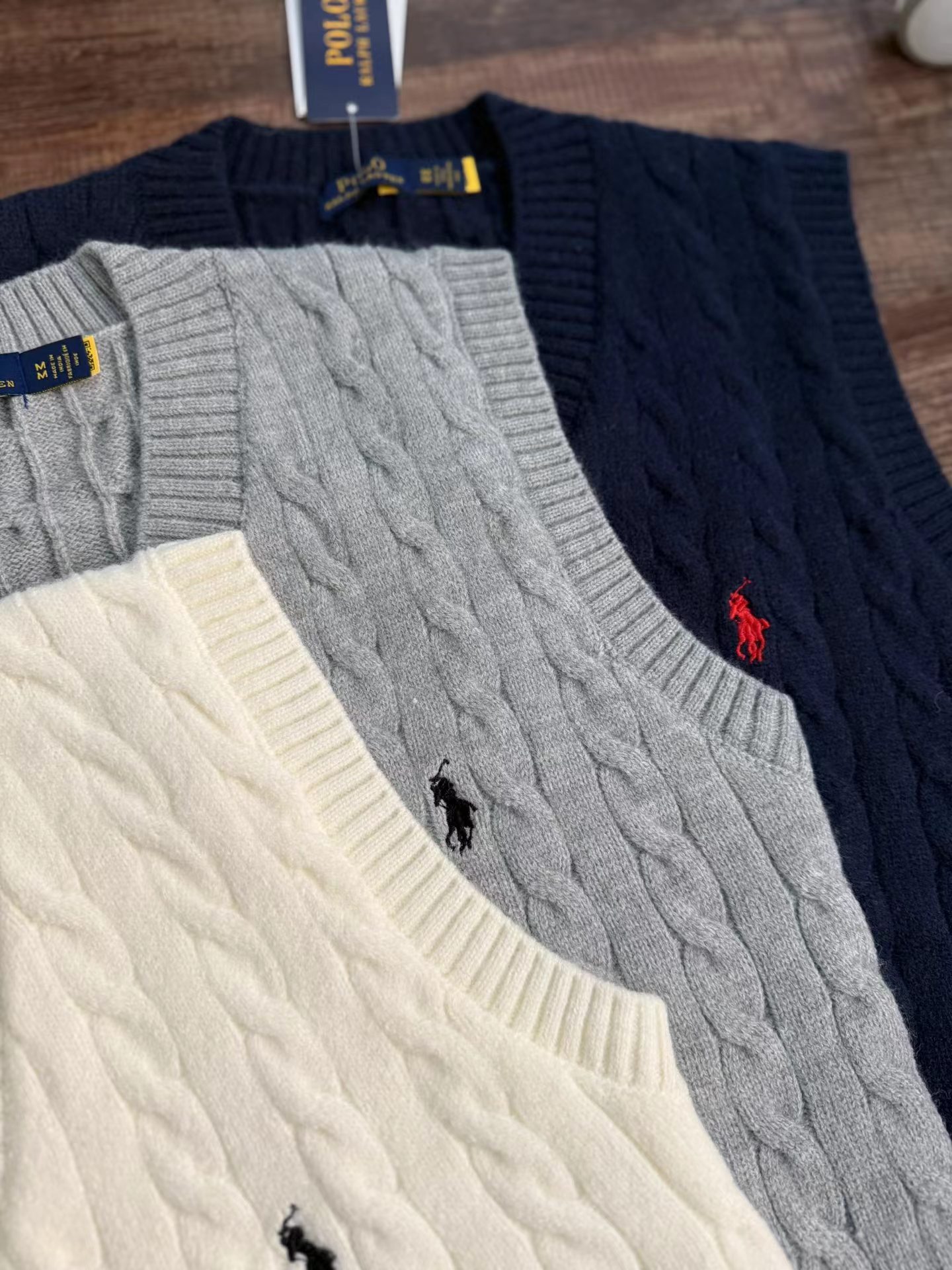 FW25新款绞花V领情侣针织复古毛衣马甲背心 男女同款,小马刺绣毛衣马甲,复古风穿搭,刚入秋这会单穿非常洋气!厚薄适中,棉质手感,亲肤舒适,不扎人!V领设计,内搭圆领,通勤百搭!妹子们闭眼冲!