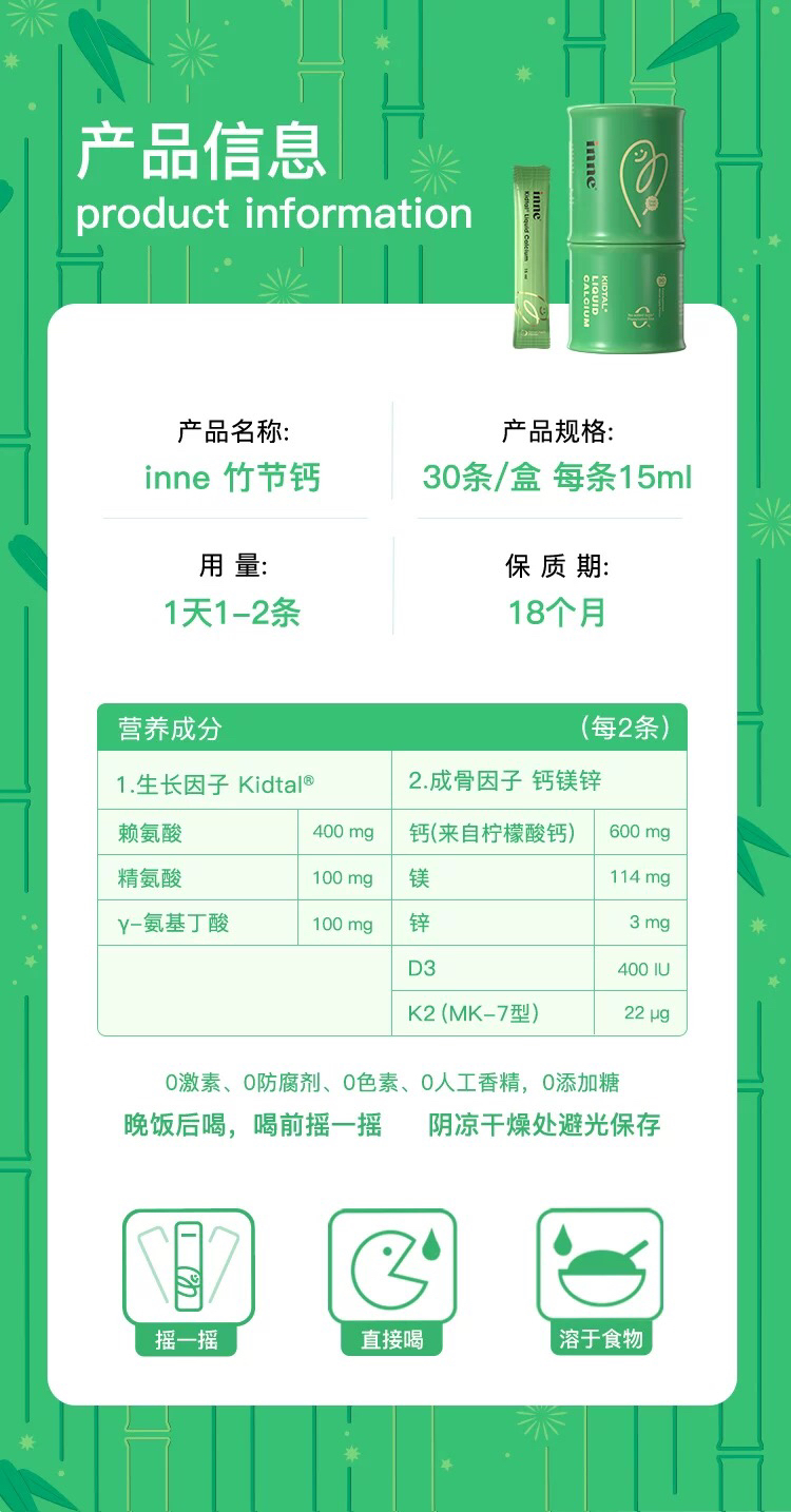 6~18岁儿童少年专研 · inne竹节钙 苹果味青少年钙赖氨酸钙|品牌直发