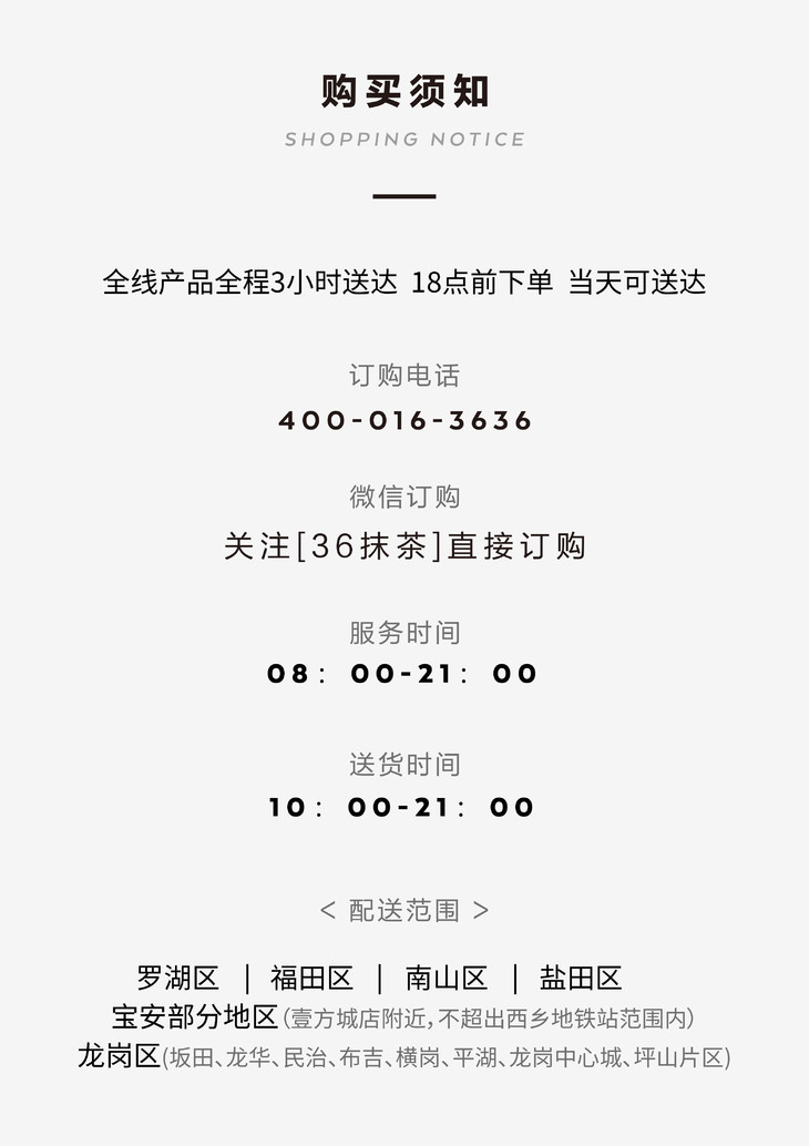 - 我们目前拥有36MATCHART和36cake两个品牌,主营抹茶甜品与新鲜蛋糕,深受数百万抹茶控和甜品控的拥趸。好吃安心,奶油只选法国铁塔。全城3小时免 费速达。客服热线400-016-3636