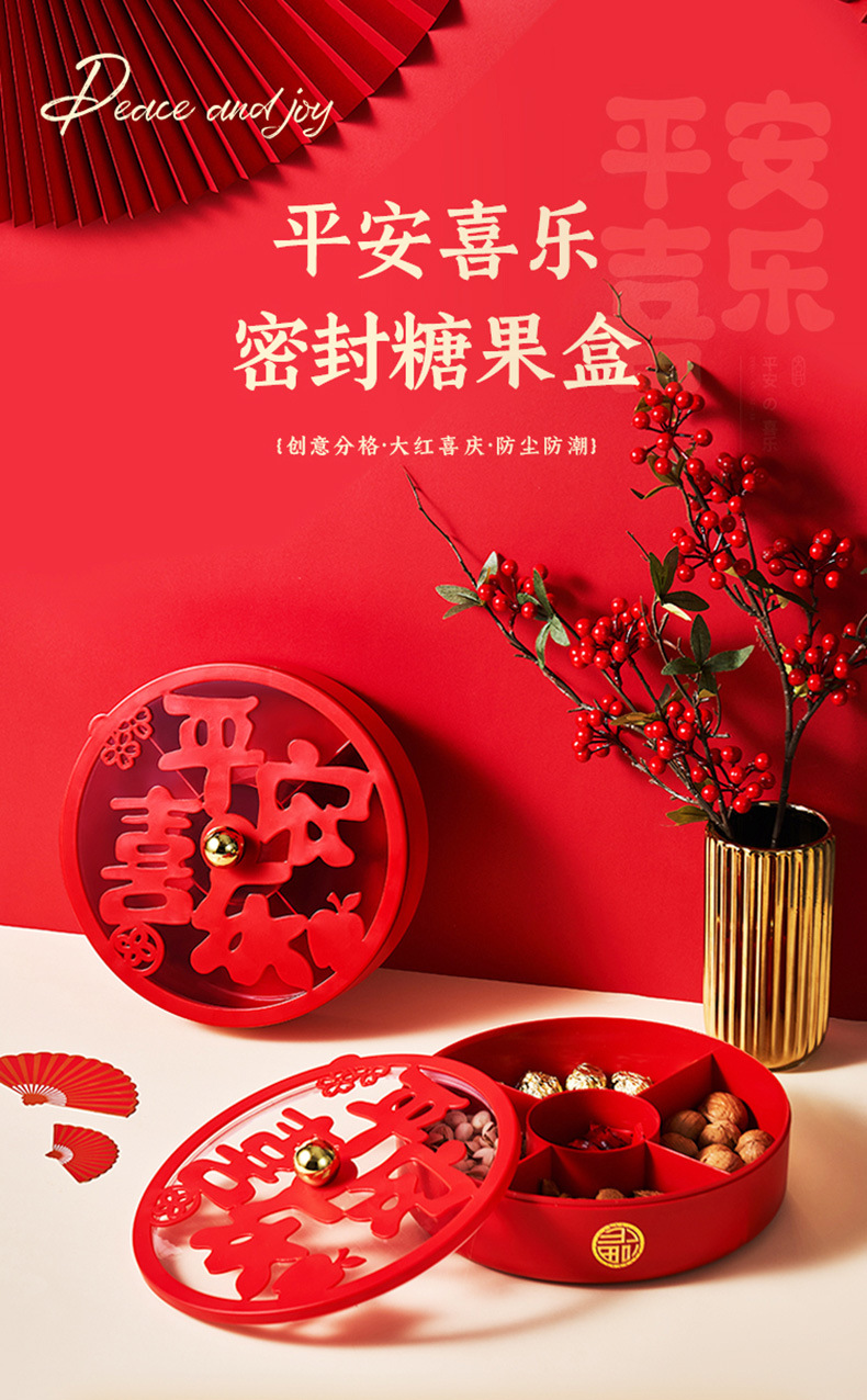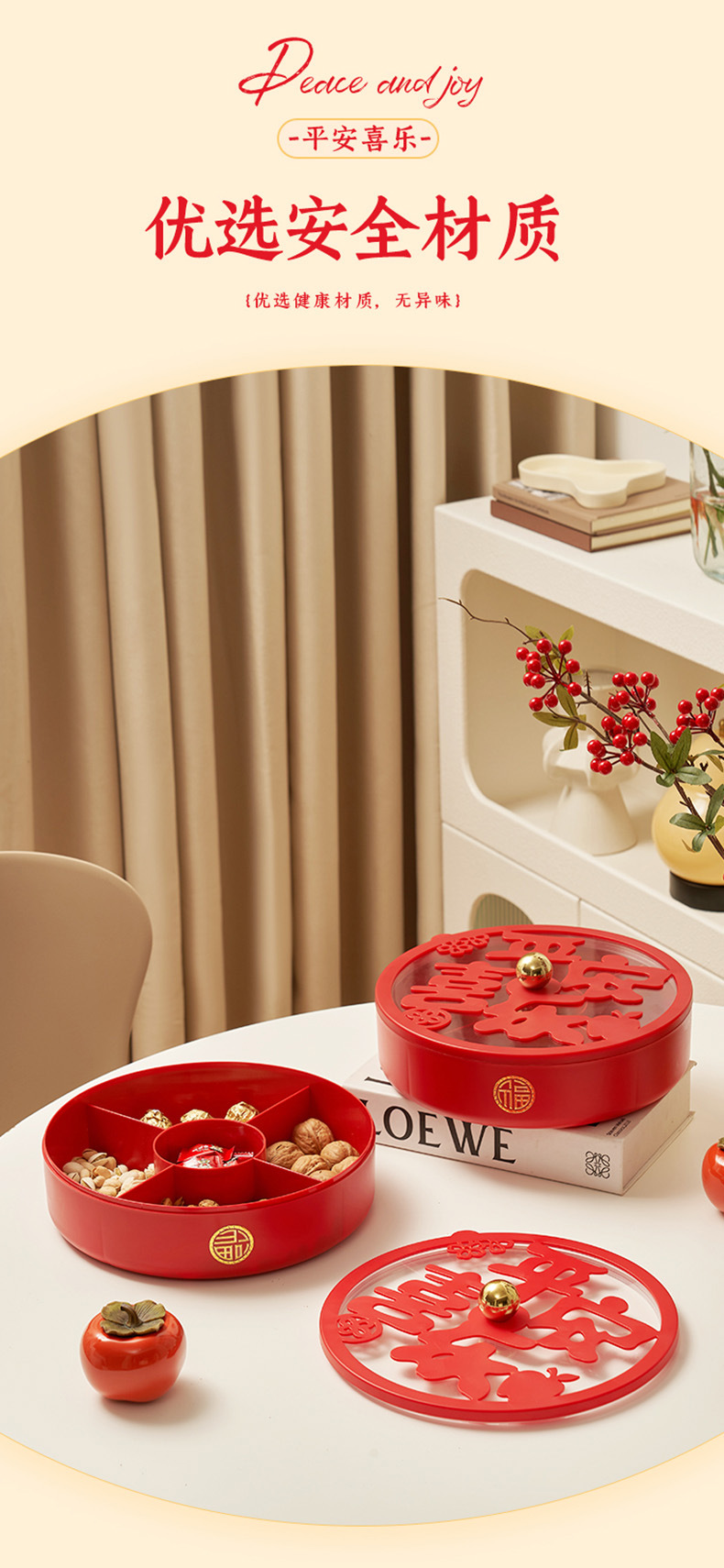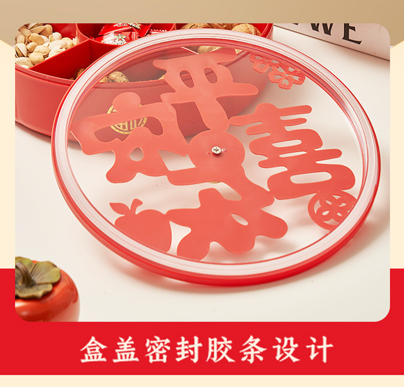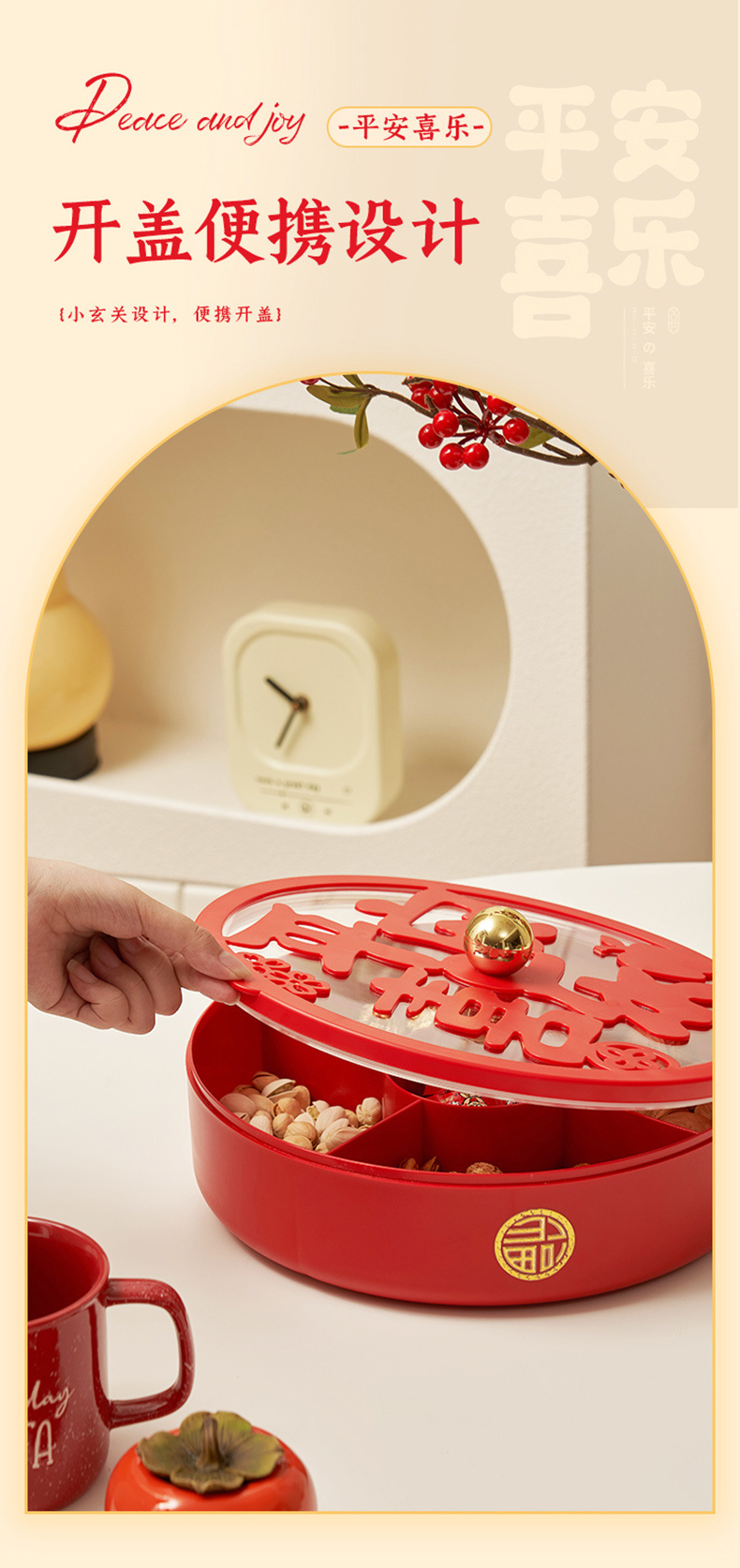 【新品!红色喜庆带密封圈果盒】一盒多用,盛装喜庆之心;防尘防潮,珍爱果干滋味;分格分类,收纳有序有心;中国红设计,沉淀文化美学;多功能便携开盖,入宅、新婚、过年家庭必备!