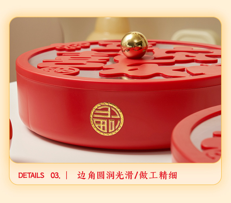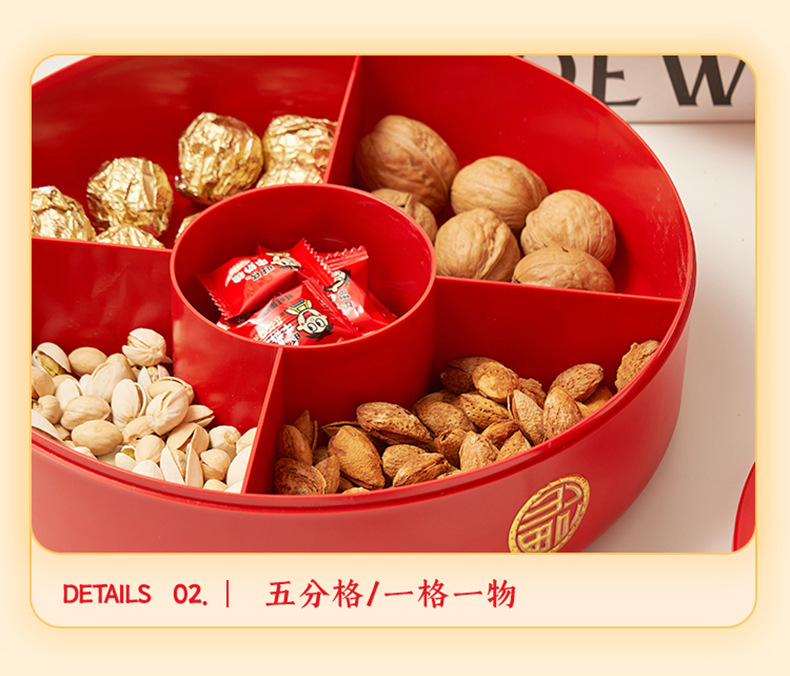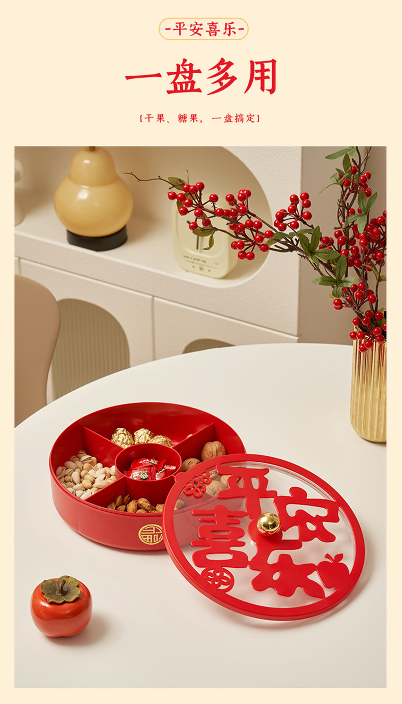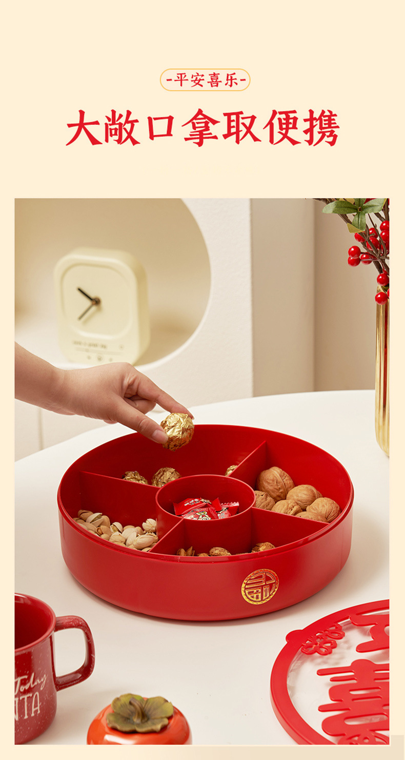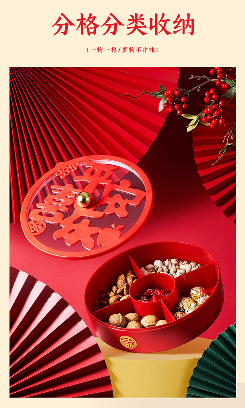 【新品!红色喜庆带密封圈果盒】一盒多用,盛装喜庆之心;防尘防潮,珍爱果干滋味;分格分类,收纳有序有心;中国红设计,沉淀文化美学;多功能便携开盖,入宅、新婚、过年家庭必备!
