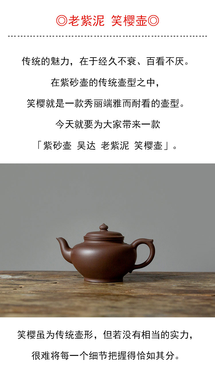 茶香记 紫砂壶老紫泥笑樱壶 传统壶形 优美端庄 九十年代原矿泥料