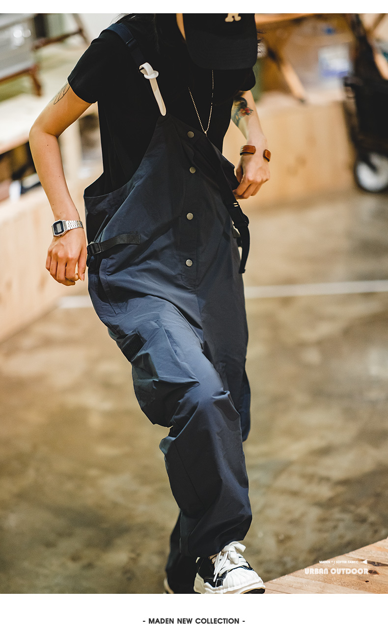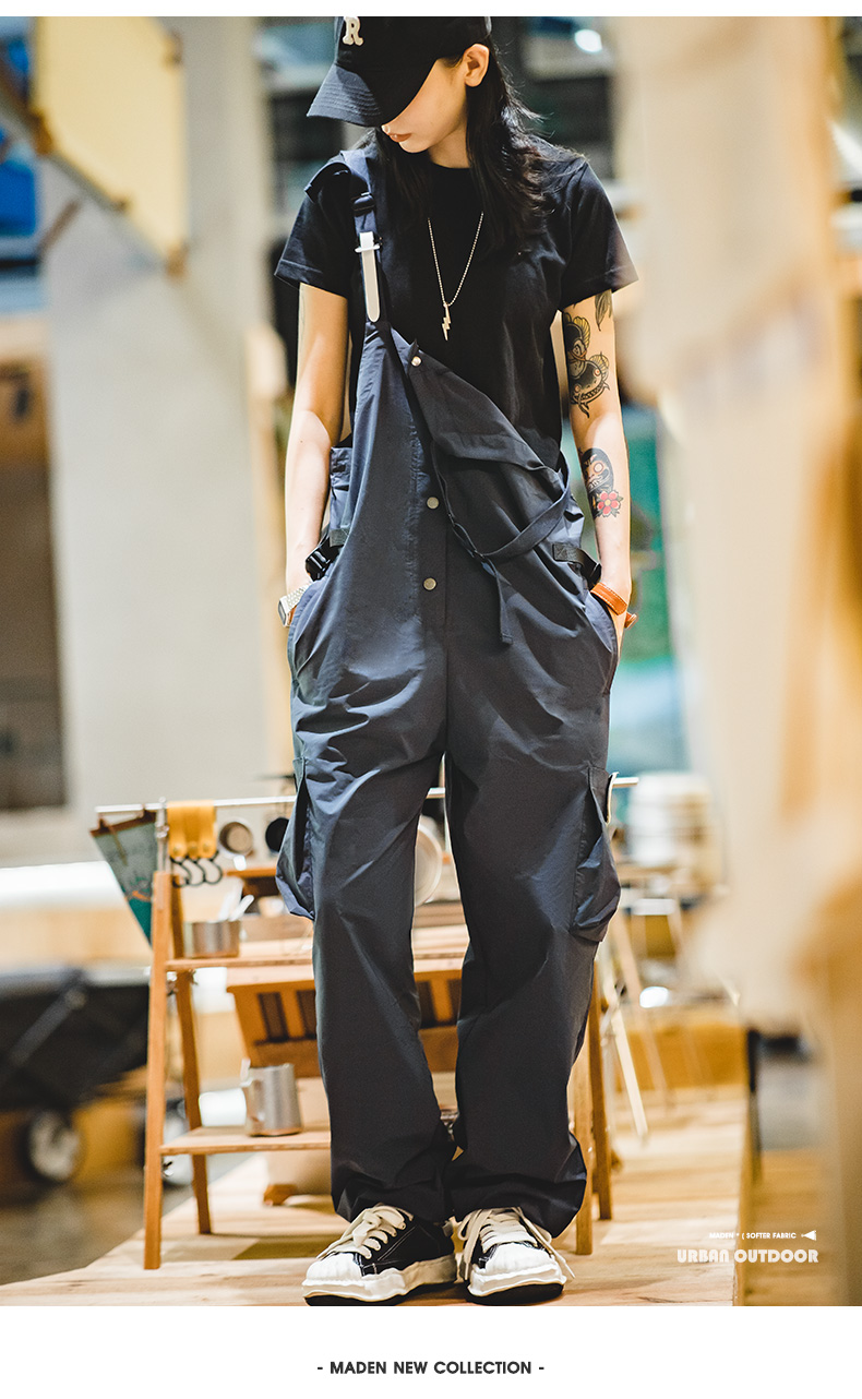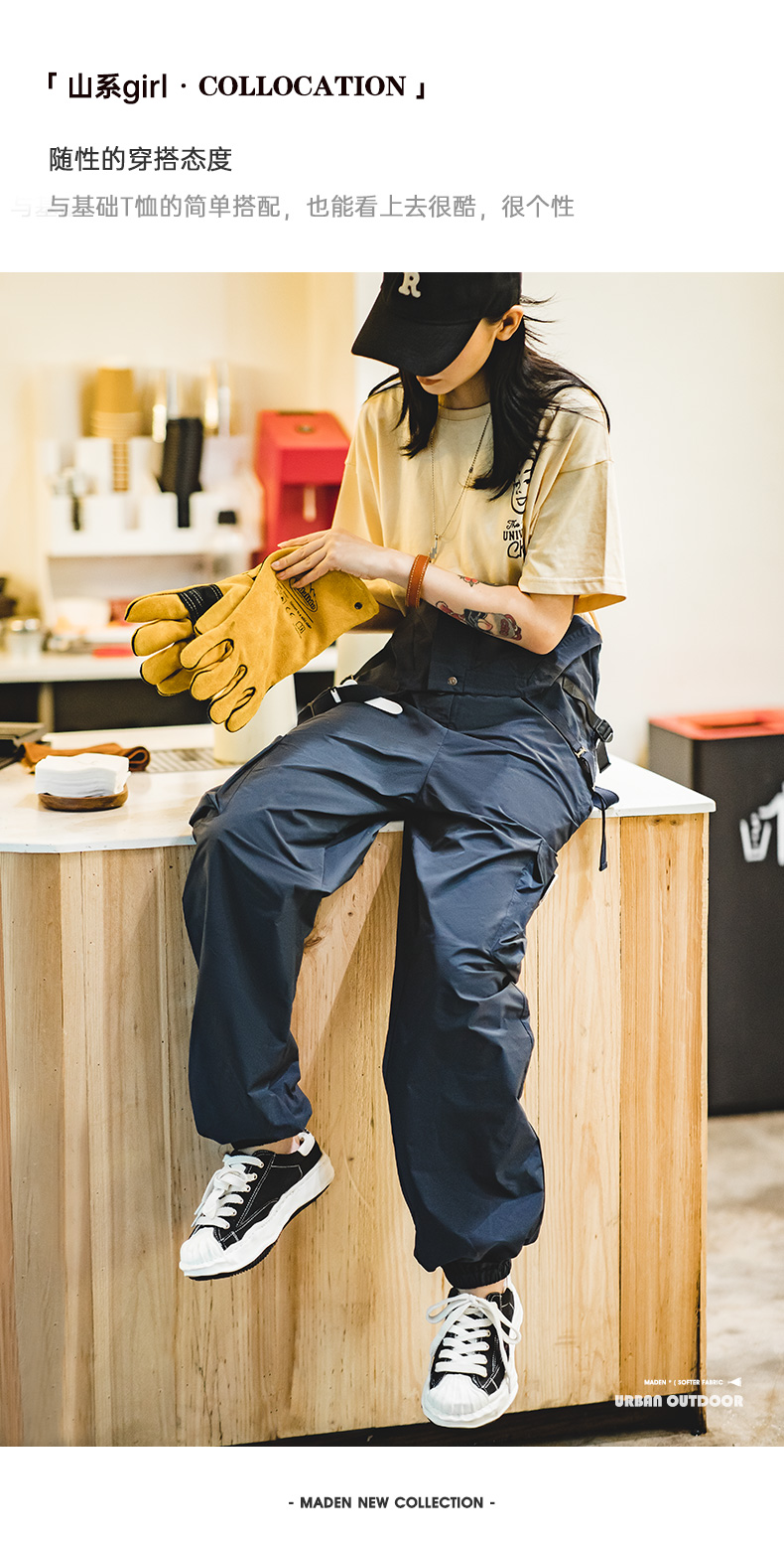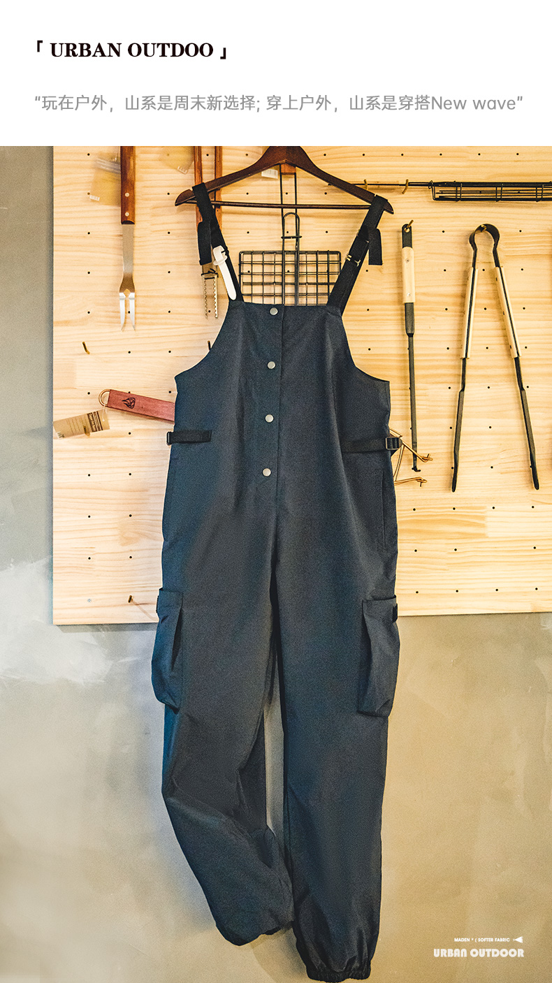 马登女装美式复古机能风工装背带裤山系大口袋防水宽松束脚阔腿裤