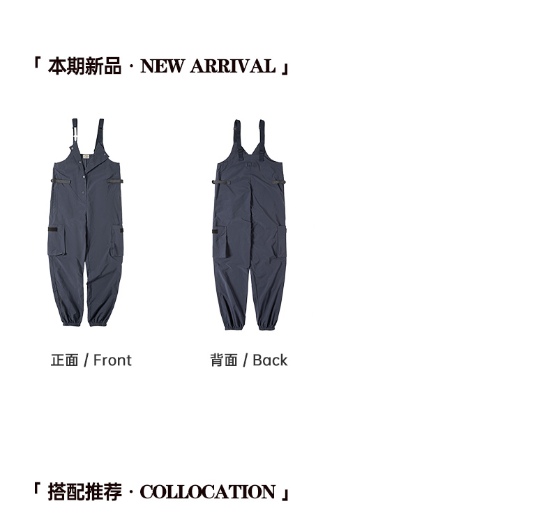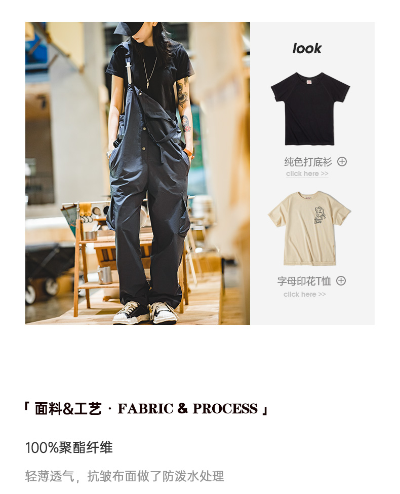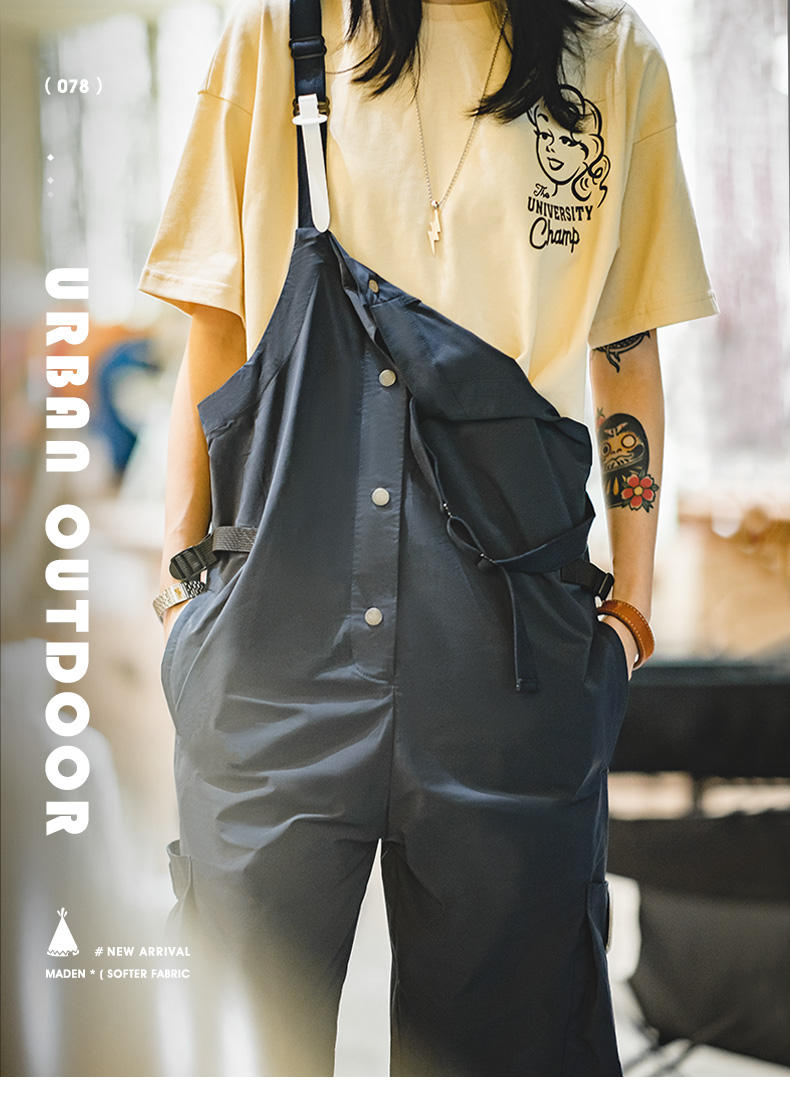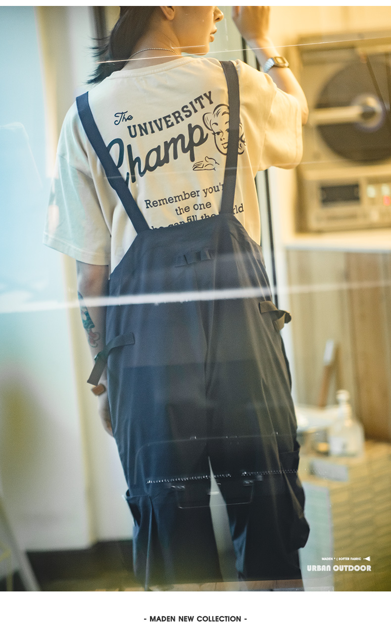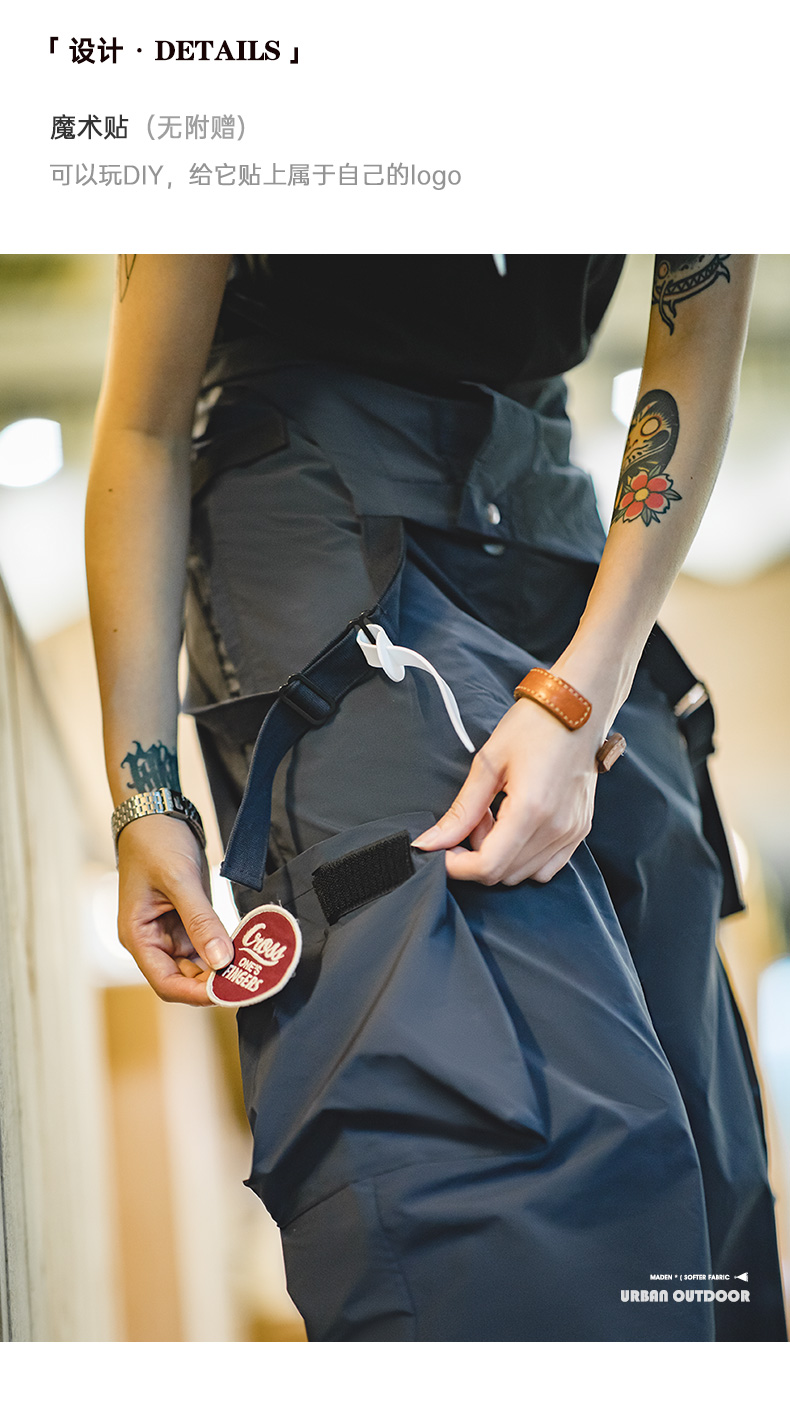 马登女装美式复古机能风工装背带裤山系大口袋防水宽松束脚阔腿裤
