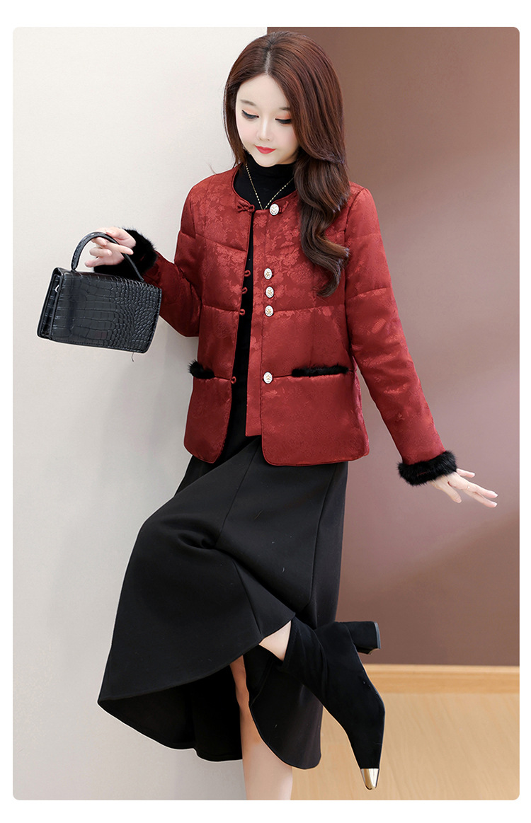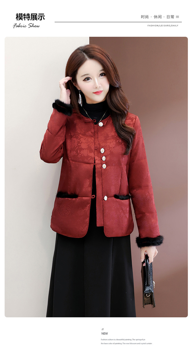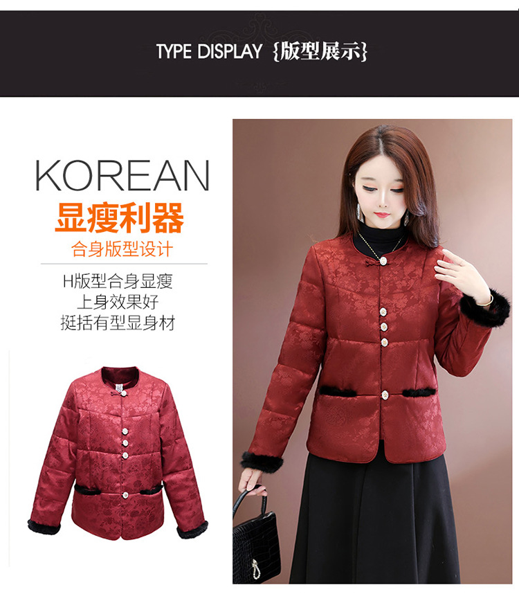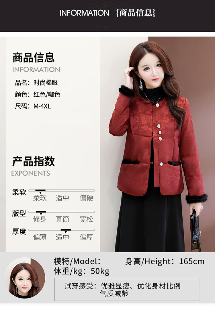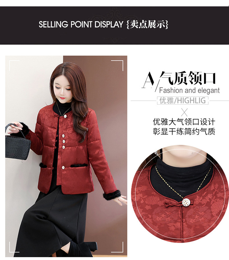 QYM 7259021-Y时尚棉服妈妈装印花复古国风棉衣厚款保暖棉袄 商品图4