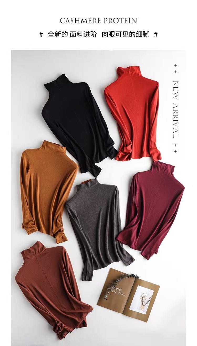 单拍一件不发!79元两件【喵小仟 多色羊毛美雅碧蛋白精华打底衫】圆领/半高领 秋季长袖打底衫 小众修身