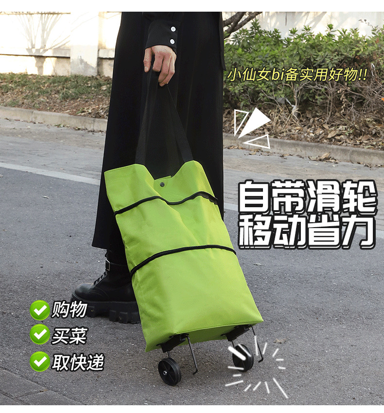 【可折叠!自带滑轮】便携买菜小拉车折叠购物车推车轻便带轮子家用取快递手拉车小拖车。xa