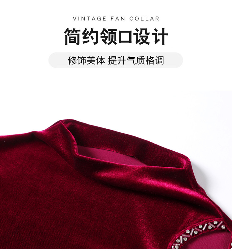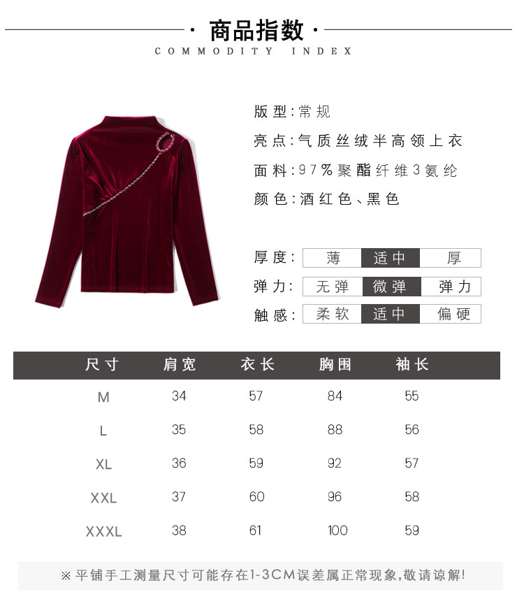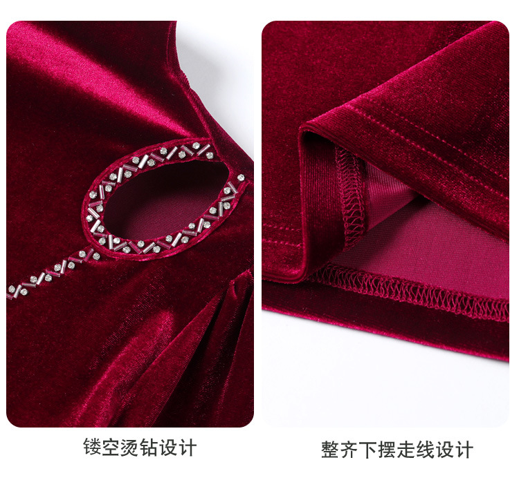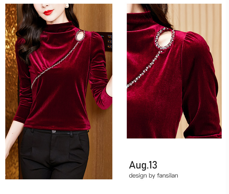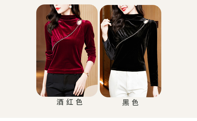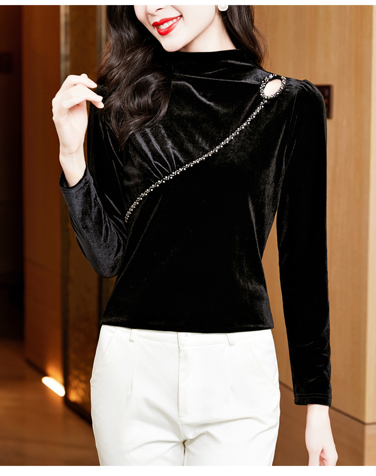 KQL-E37M2712气质百搭高领镂空钉珠丝绒长袖打底衫修身显瘦T恤女