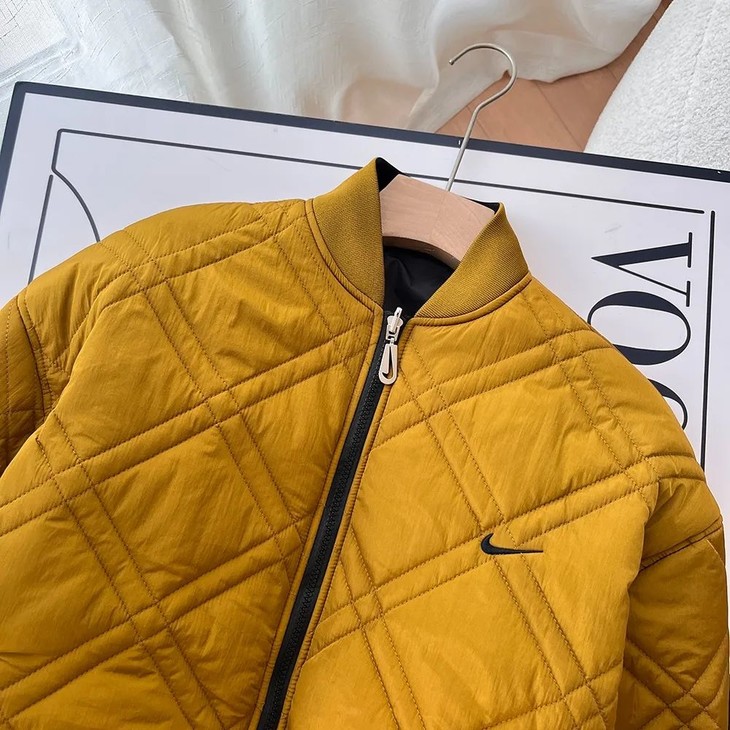 NK classic x sport nk复古正反双面穿菱格羽绒棉服 【ins小红书热门爆款|网红同款穿搭】 男女同款秋冬一款非常好看的一件棉服 出门必备神器 这款的重点是双面穿搭 保暖又防风 颜值超高 面料是特殊亮黄定制面料、搭配菱格行线、 使这件棉服显的更加时尚 后背Logo是贴布绣设计、 黑色的勾子显得更加抢眼 整件衣服做工复杂 总共5处口袋设计 螺纹也是定制的双面螺纹 比较厚实