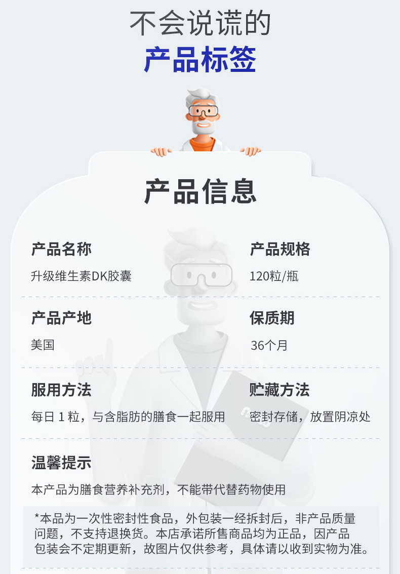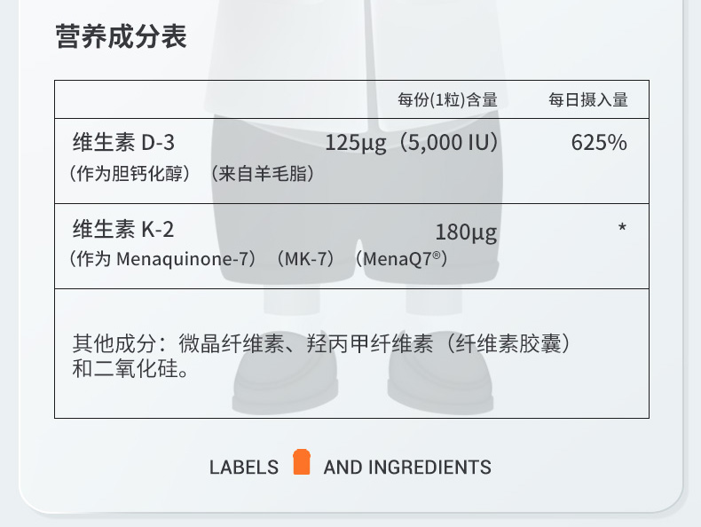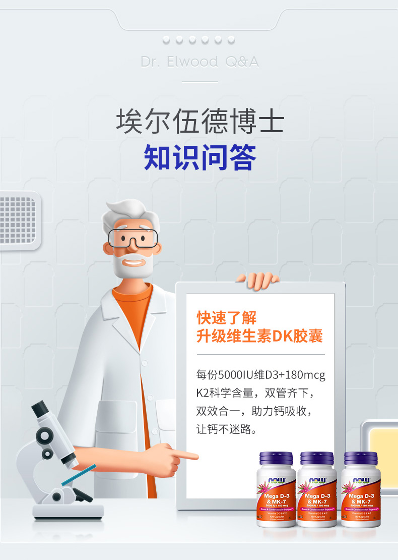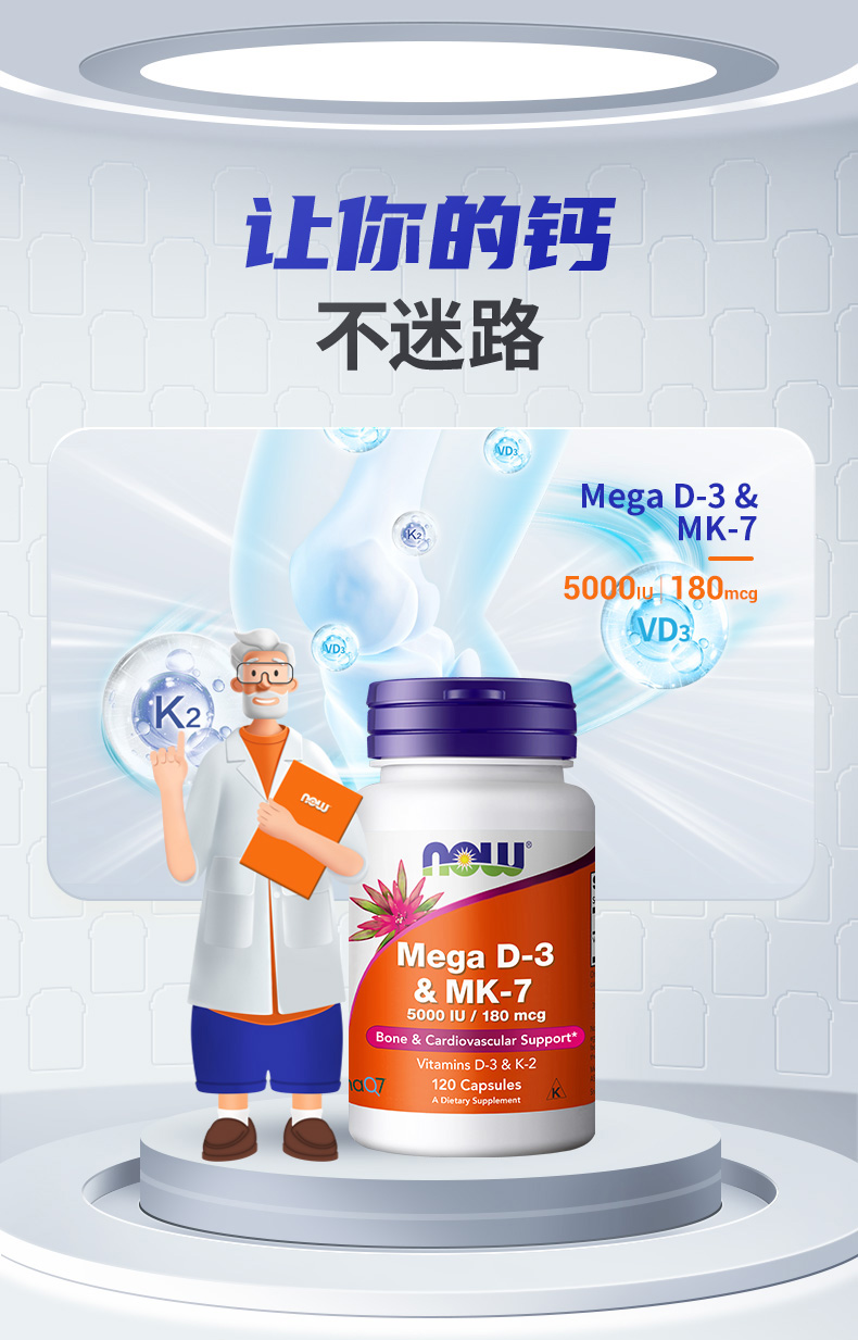 美国NOW超级维生素D3和MK-7胶囊120粒/瓶高含量dk胶囊