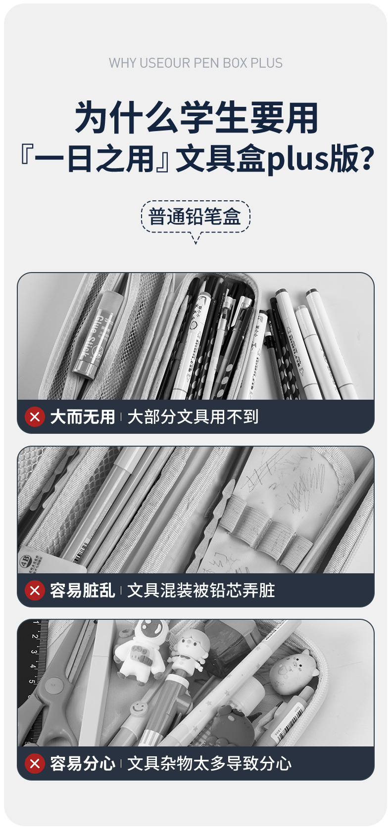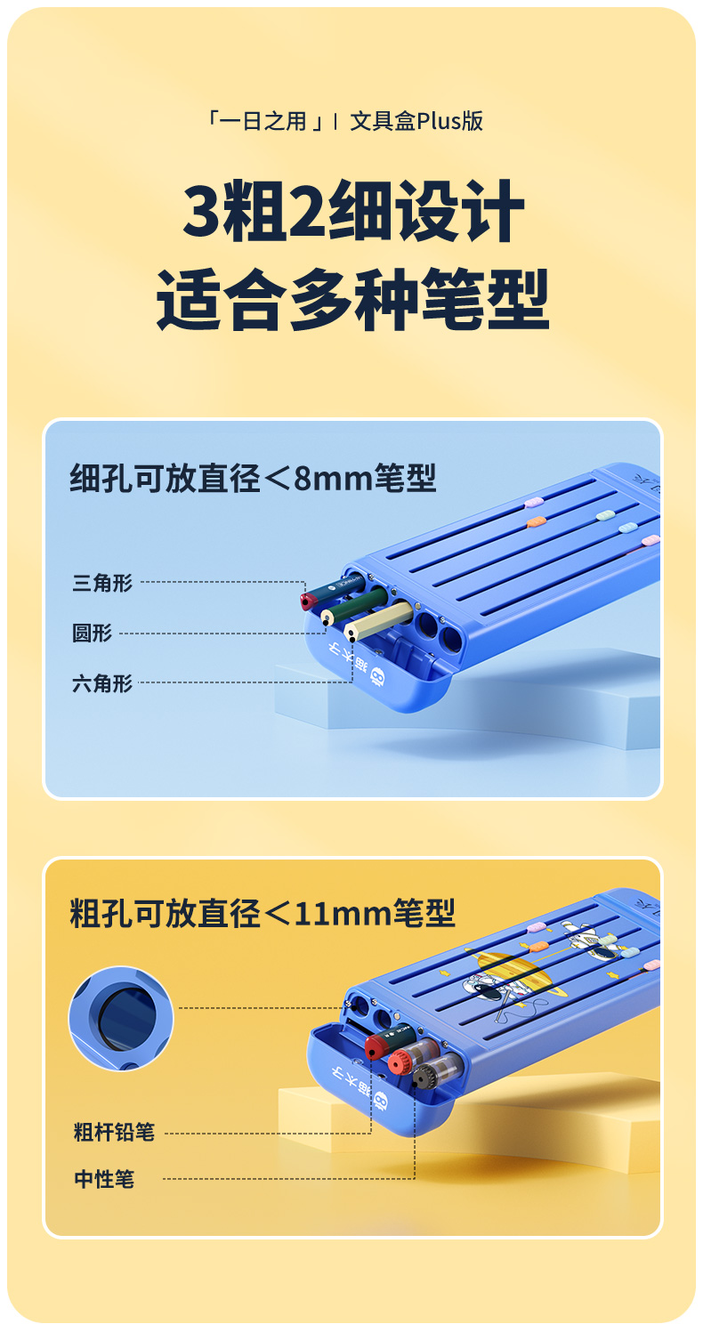 一日之用PLUS笔盒(2细+3粗铅笔)非定制款