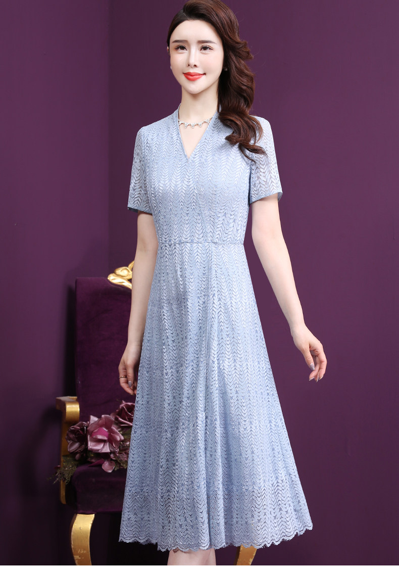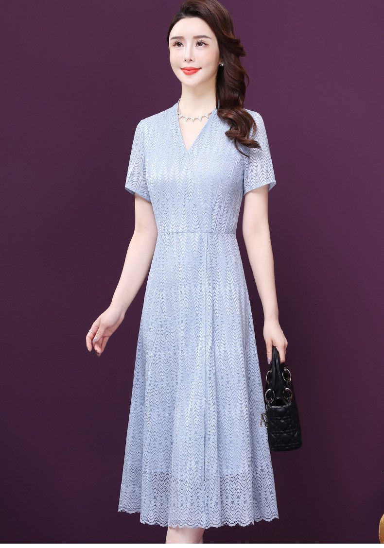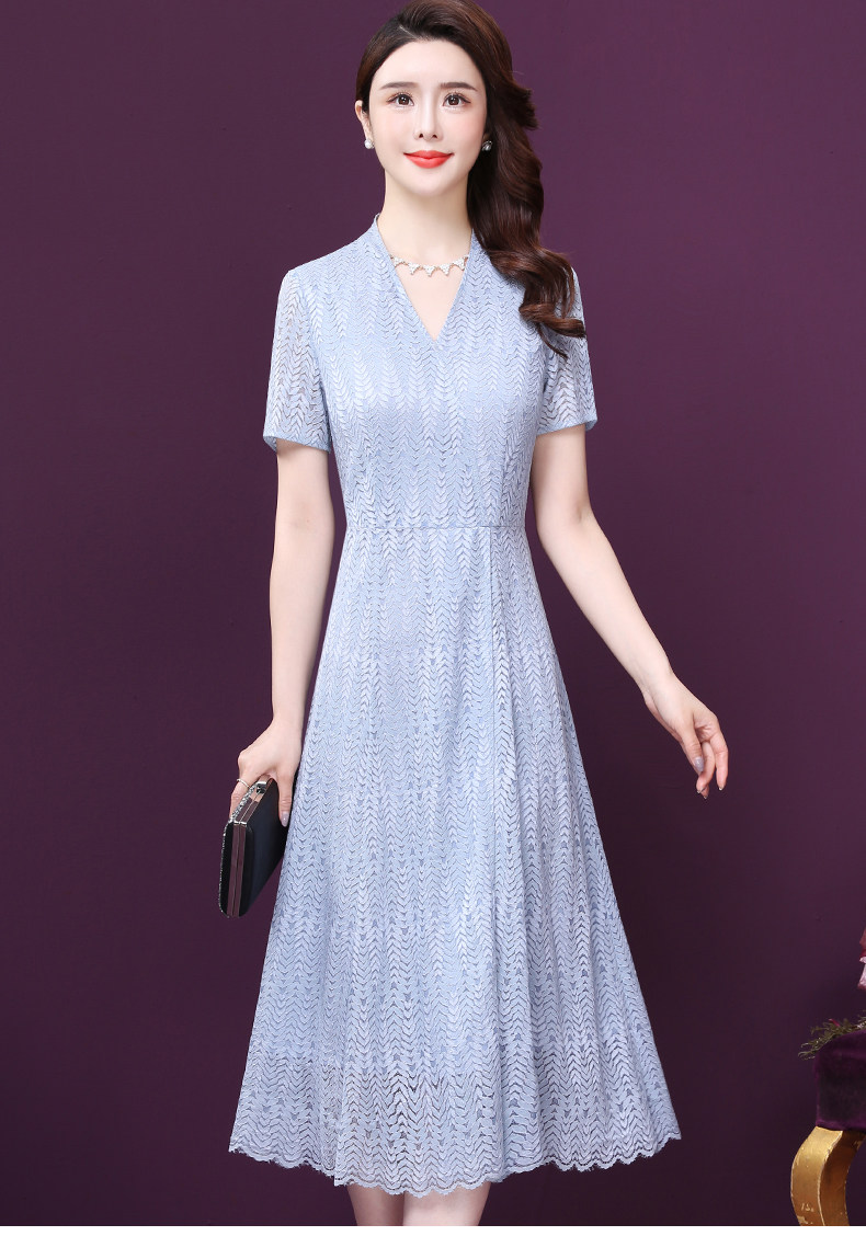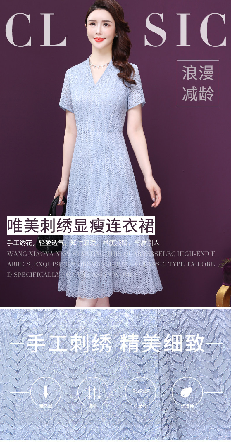 WXY-W-JR-5800新款V领显瘦气质超仙手工刺绣洋气A字裙