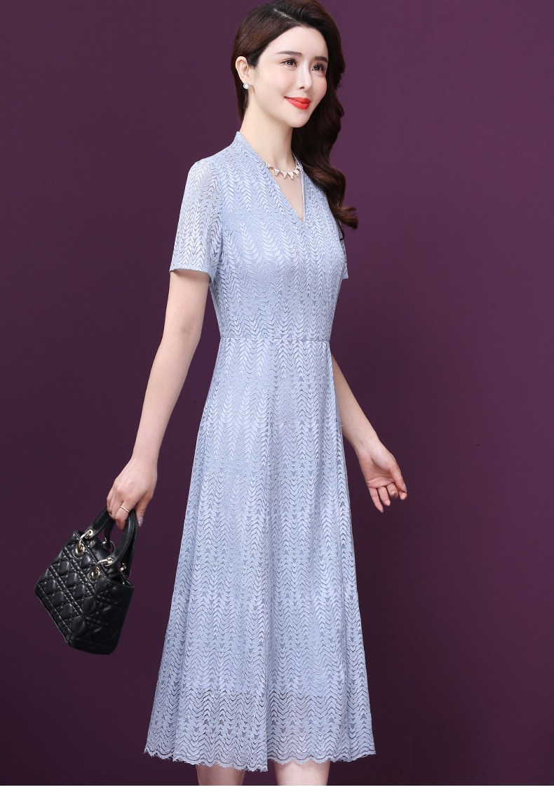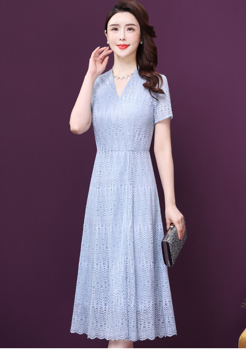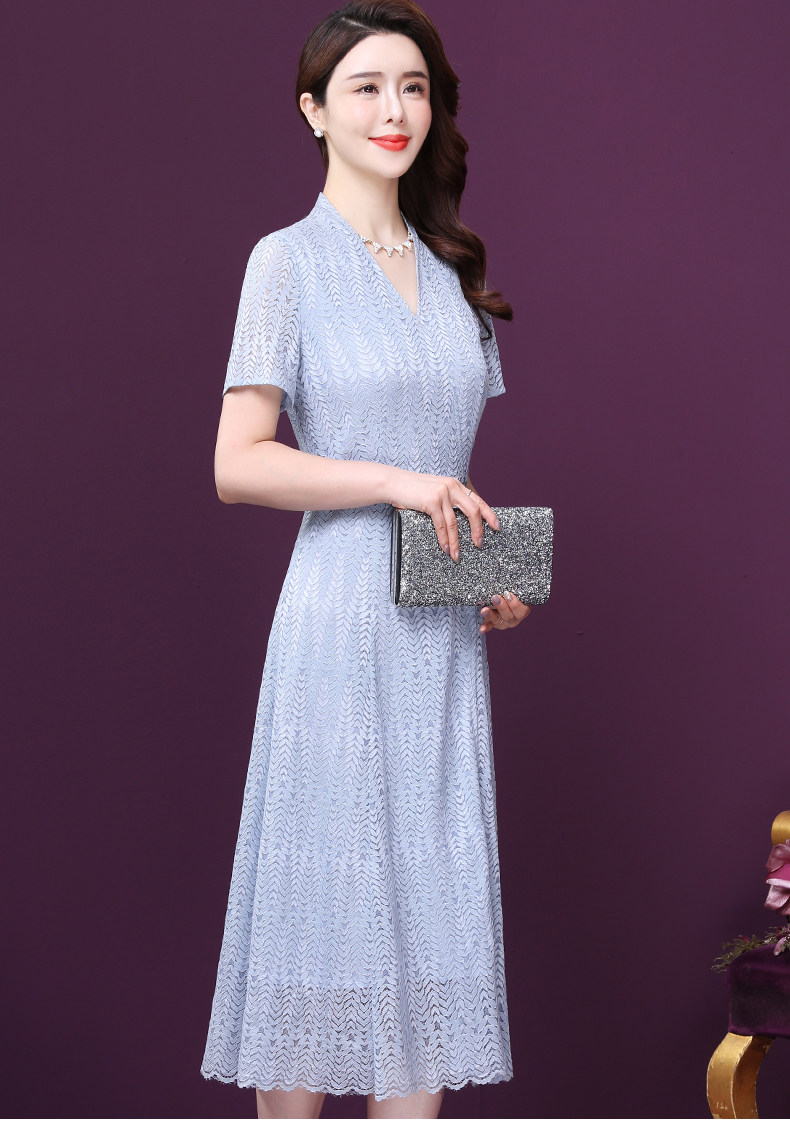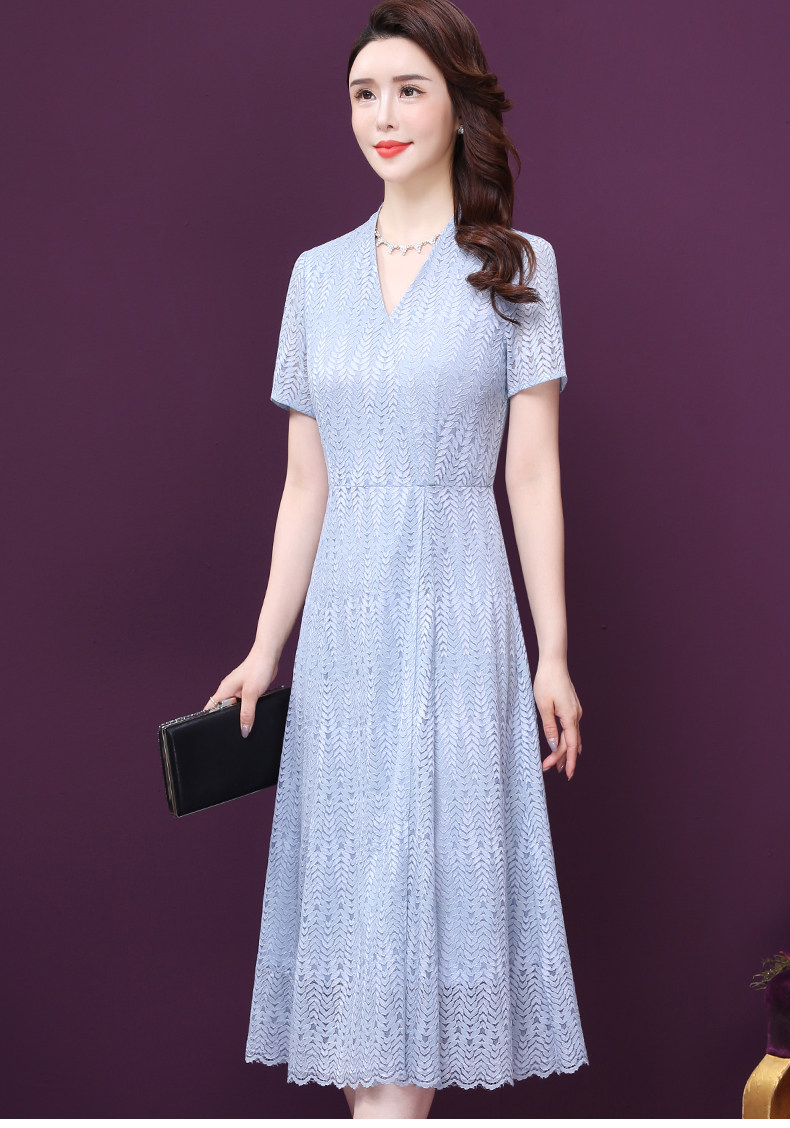 WXY-W-JR-5800新款V领显瘦气质超仙手工刺绣洋气A字裙