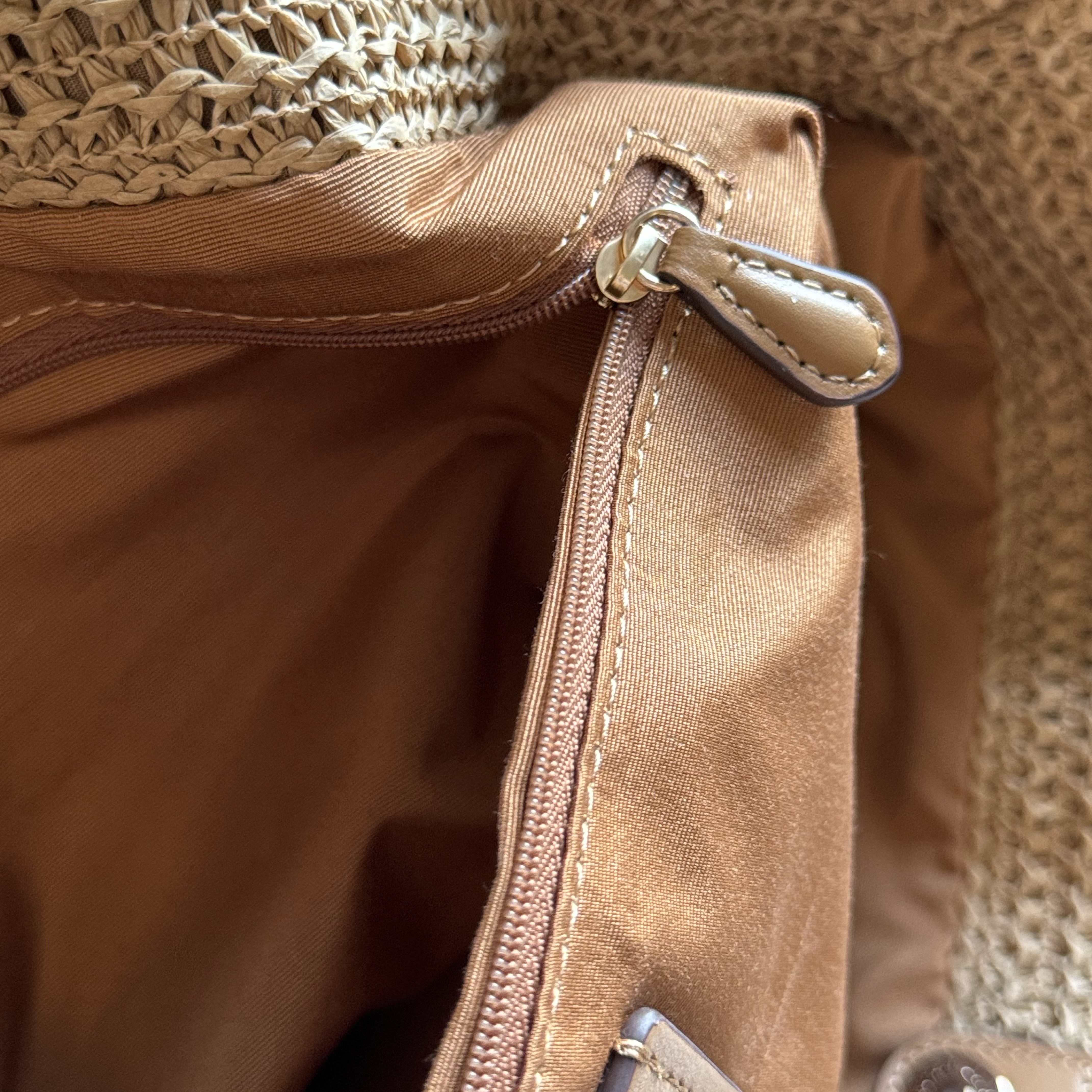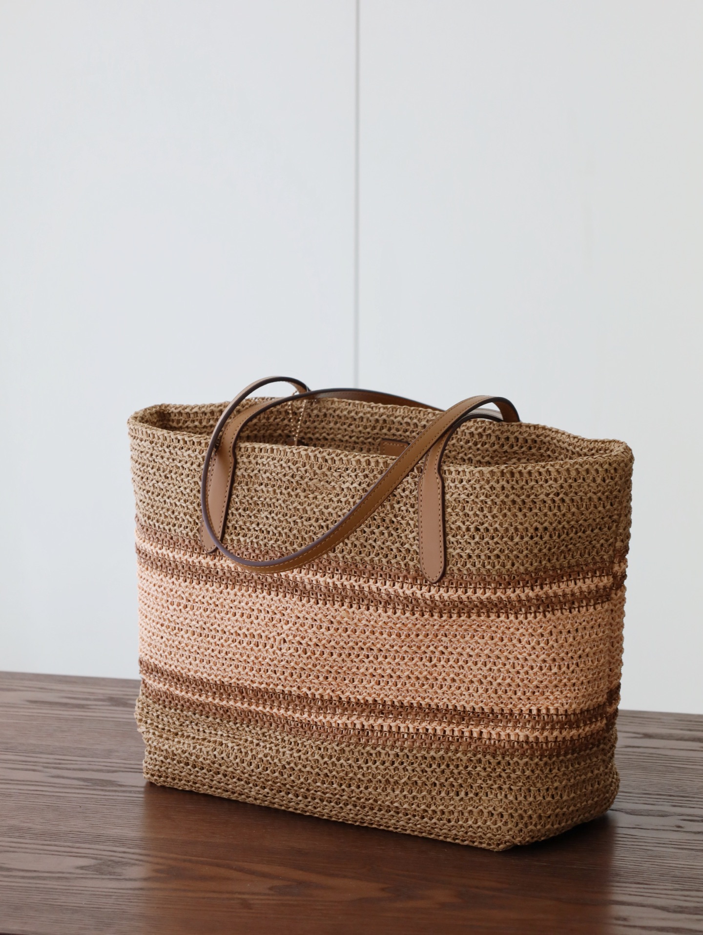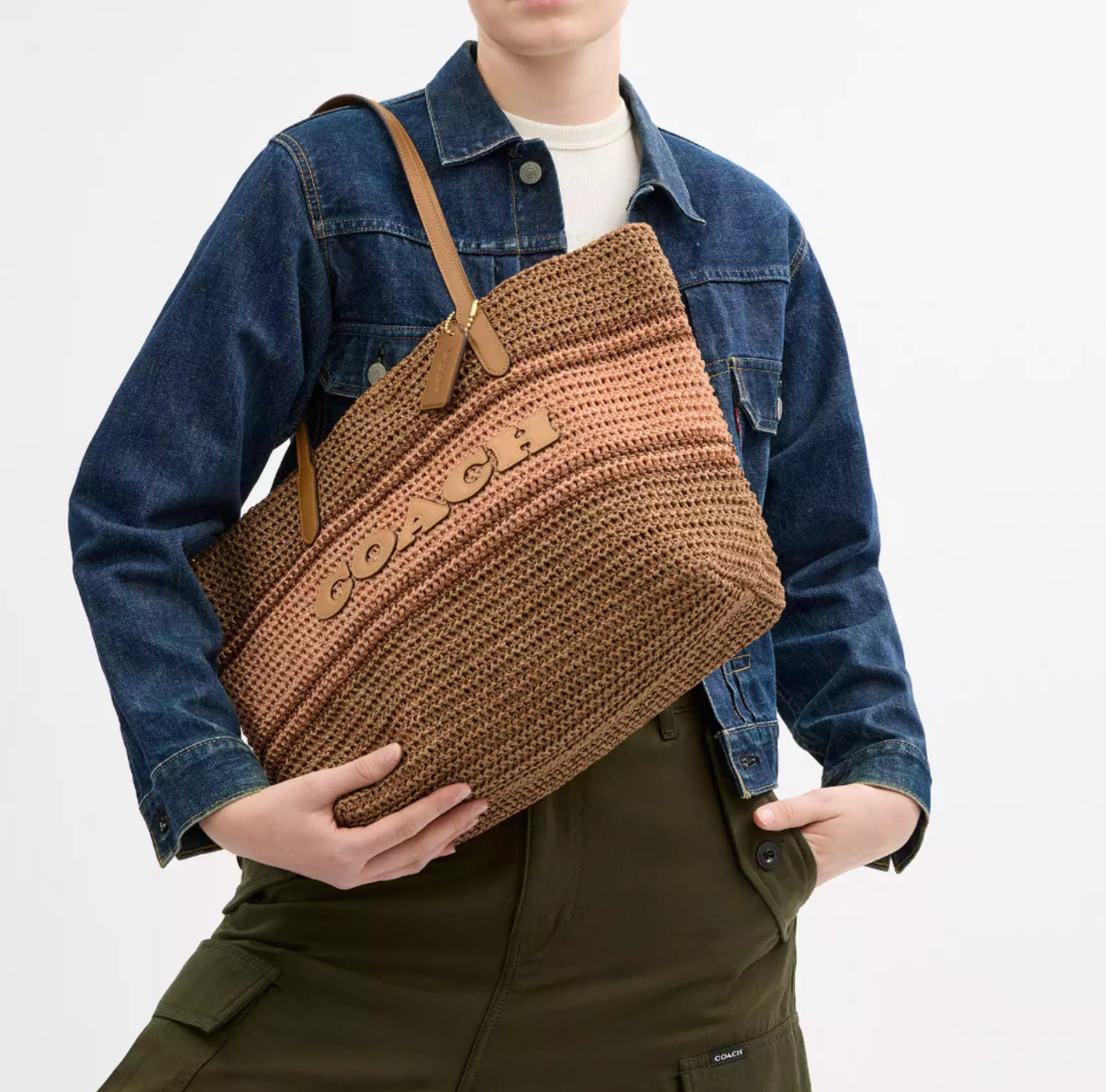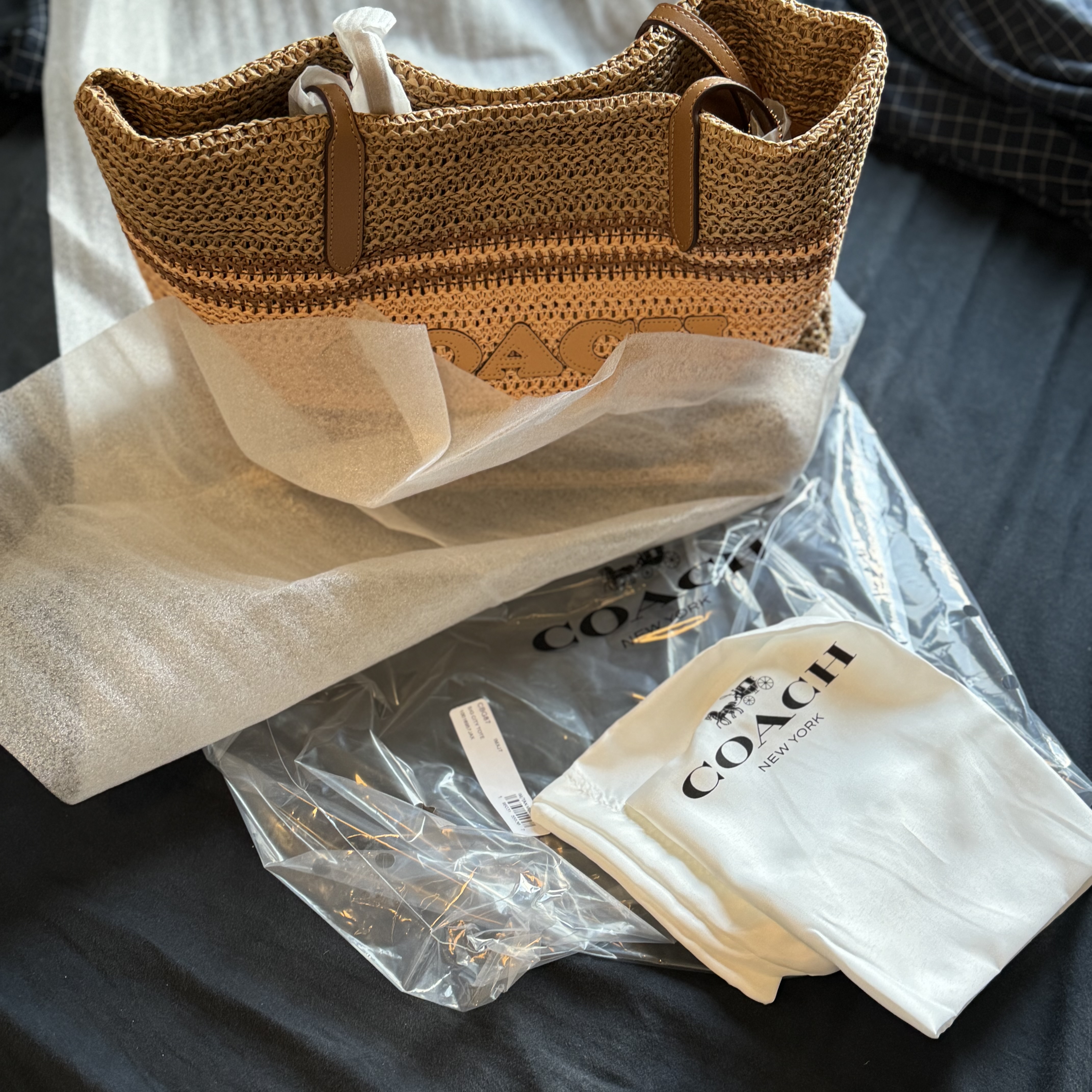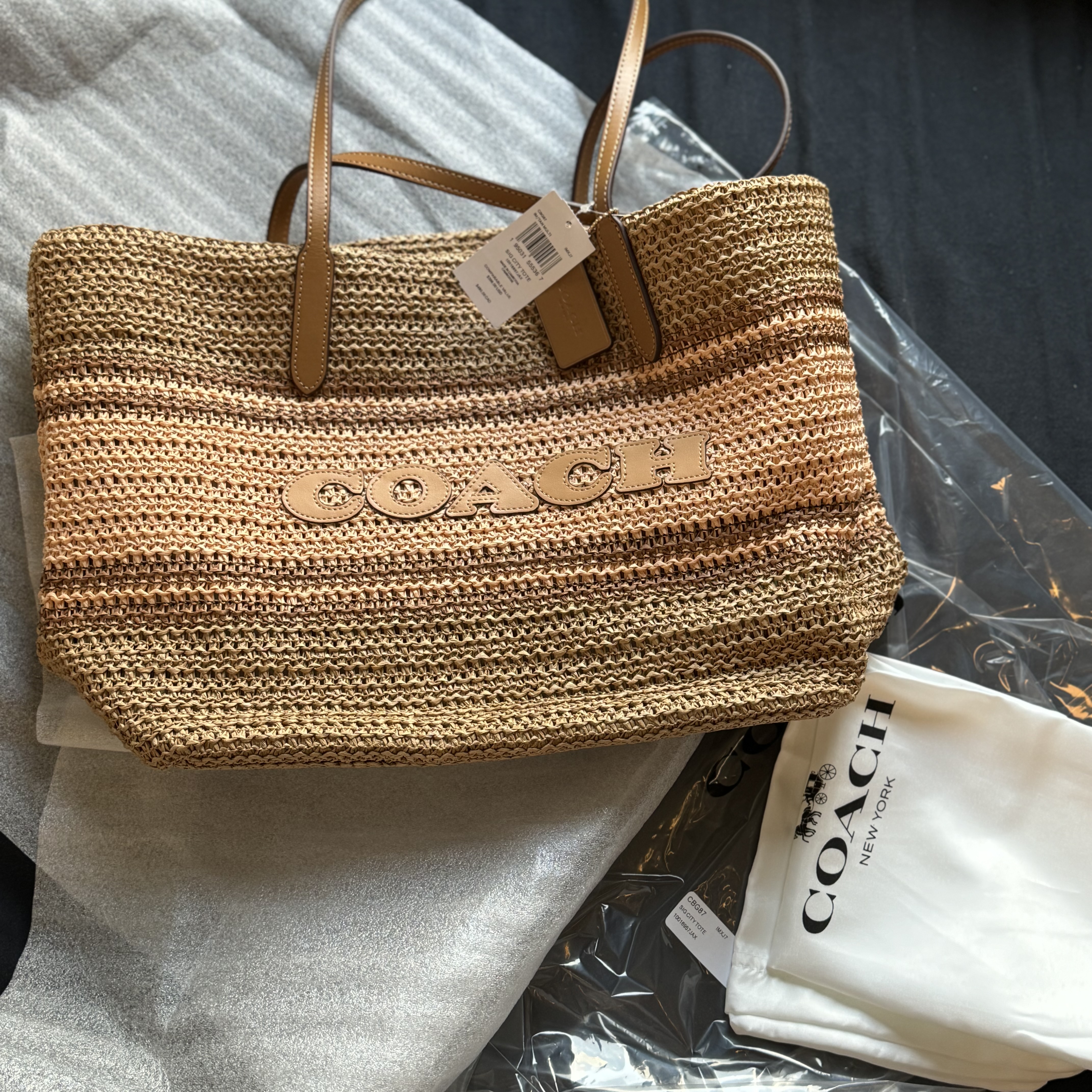 Coa&ch拉菲草编托特包,纯老鼠 保真‼️ 渠环保编织,精致机织一体成型多色拼接,大容量托特包,春夏必备的新款价格也非常友好!纯正的马达加斯加拉菲亚草➕纯手工传统打造】唯有最顶级的拉菲亚草才能在编艺师的手中成为一件完美的艺术品!(纯天然拉菲草➕纯手工传统缝纫缝合,每一只都是独一无二的存在! 其筛选过程很严格(拉菲亚树叶材质中,必须挑选最上乘的80%,确保材质颜色统一质感柔韧);其手工很繁复(编织一个,拉菲亚包包需要一位纯熟手工制包师48小时的宝贵时光)它将传统手工艺和前卫摩登的时尚元素解构重组,不亚于制作一件精美的珠宝!!!所以,它呈现的是返璞归真的自然之美:肉眼感受这回归我们小时候最初本心的自然之作!看到这样的美物,如何能让人不心生欢喜?