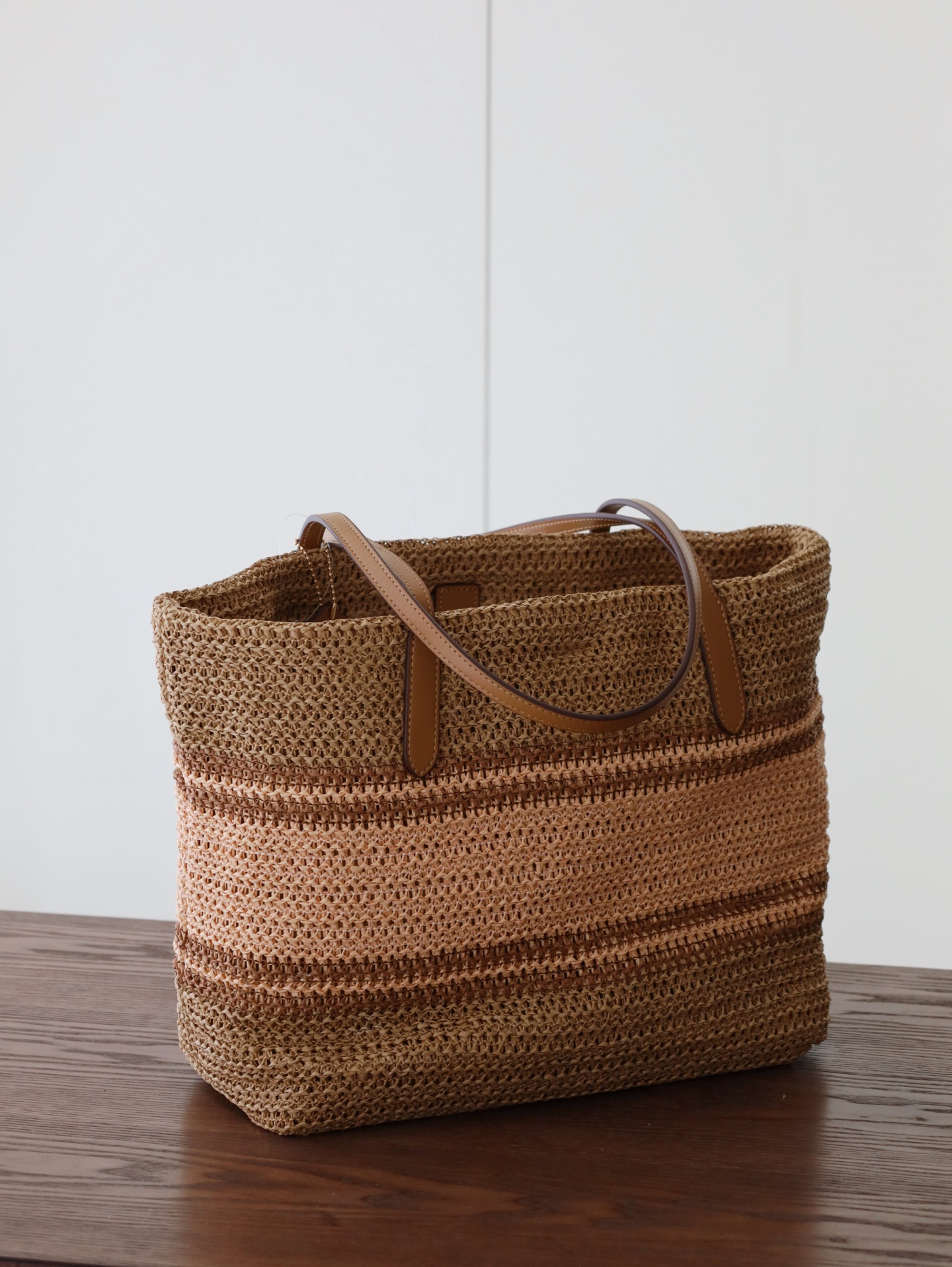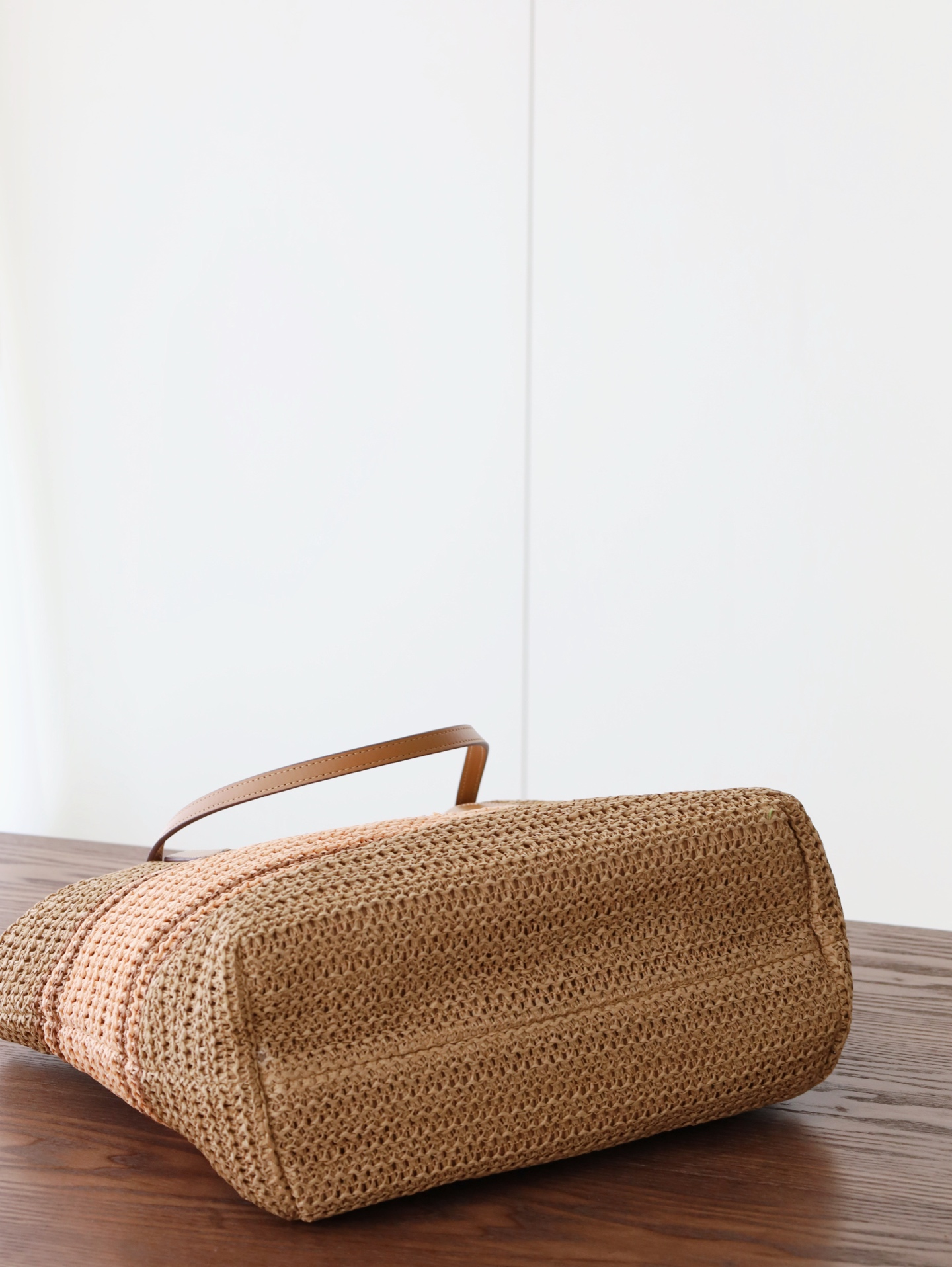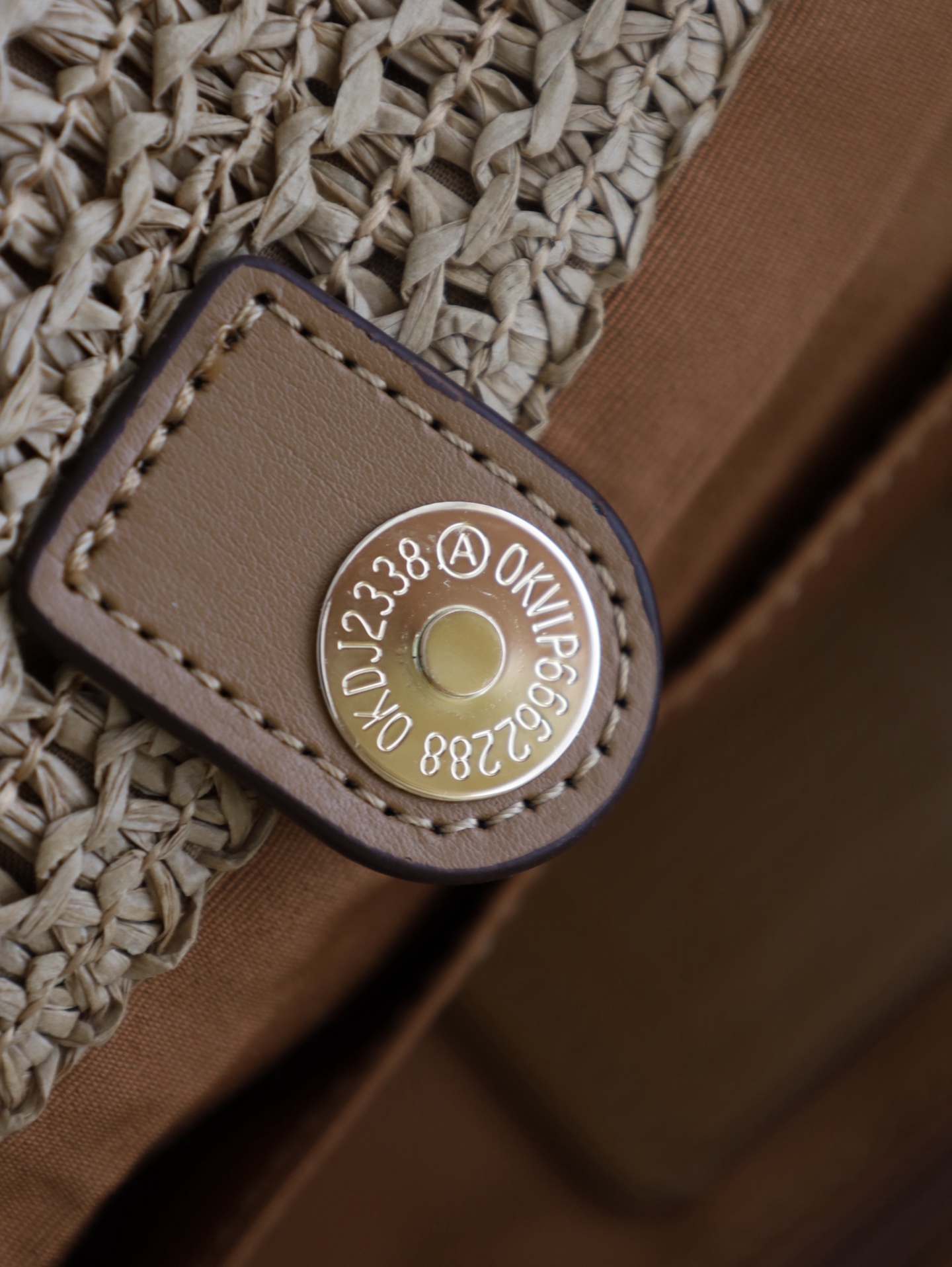 【小牛皮包带材质/侧边油边工艺】作为一条卖上四位数的包包,它的油边一共使用了7道打磨晾晒工序,反复涂抹打磨,不仅韧性十足,更是陪伴多年依旧质感在线!全部细节展示 6月了!度假️凹造型神器!很能装!!!尺寸33/17/30 开口45cm 配防尘袋 纯正的马达加斯加拉菲亚草➕纯手工传统打造】唯有最顶级的拉菲亚草才能在编艺师的手中成为一件完美的艺术品!(纯天然拉菲草➕纯手工传统缝纫缝合,每一只都是独一无二的存在!其筛选过程很严格(拉菲亚树叶材质中,必须挑选最上乘的80%,确保材质颜色统一质感柔韧);其手工很繁复(编织一个,拉菲亚包包需要一位纯熟手工制包师48小时的宝贵时光)它将传统手工艺和前卫摩登的时尚元素解构重组,不亚于制作一件精美的珠宝!!!所以,它呈现的是返璞归真的自然之美:肉眼感受这回归我们小时候最初本心的自然之作!看到这样的美物,如何能让人不心生欢喜?