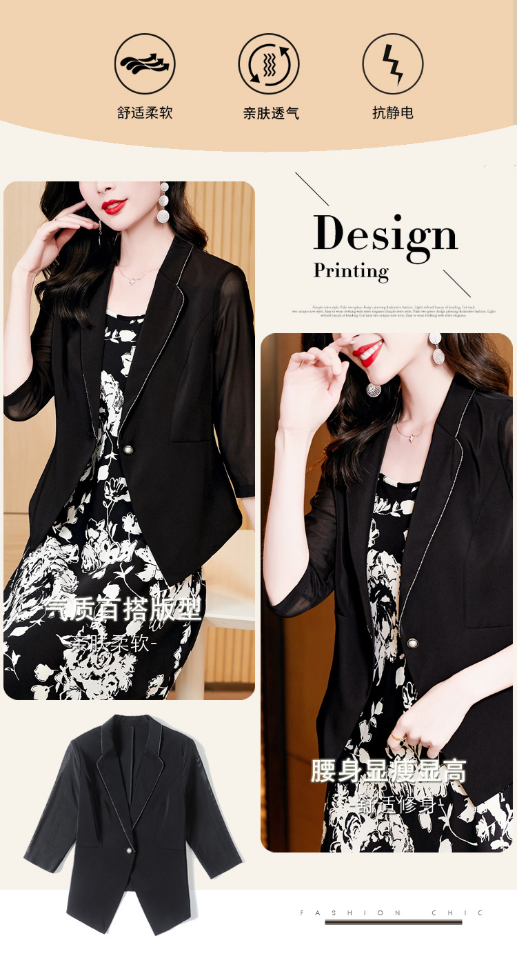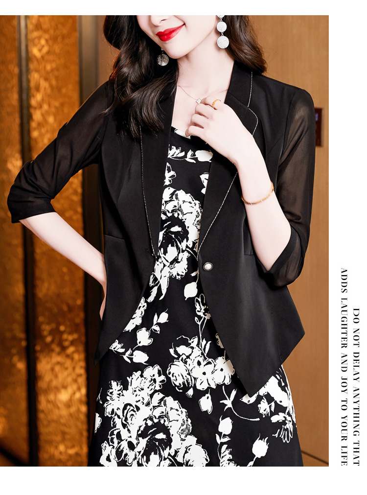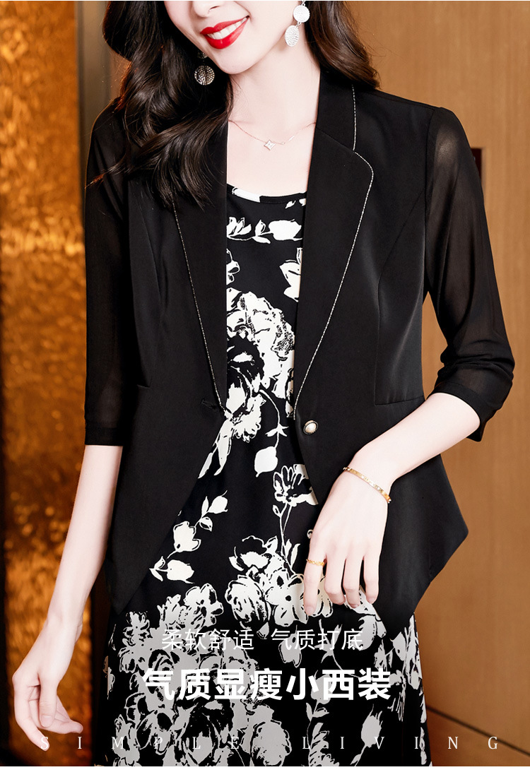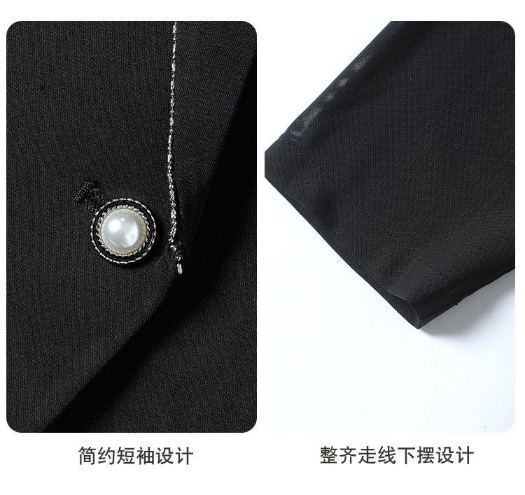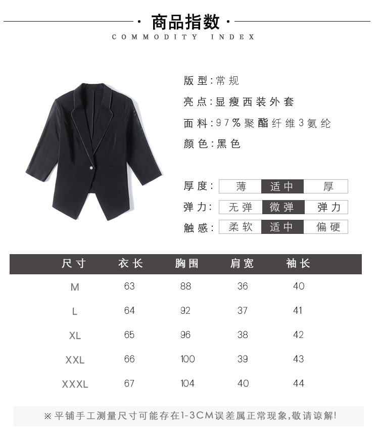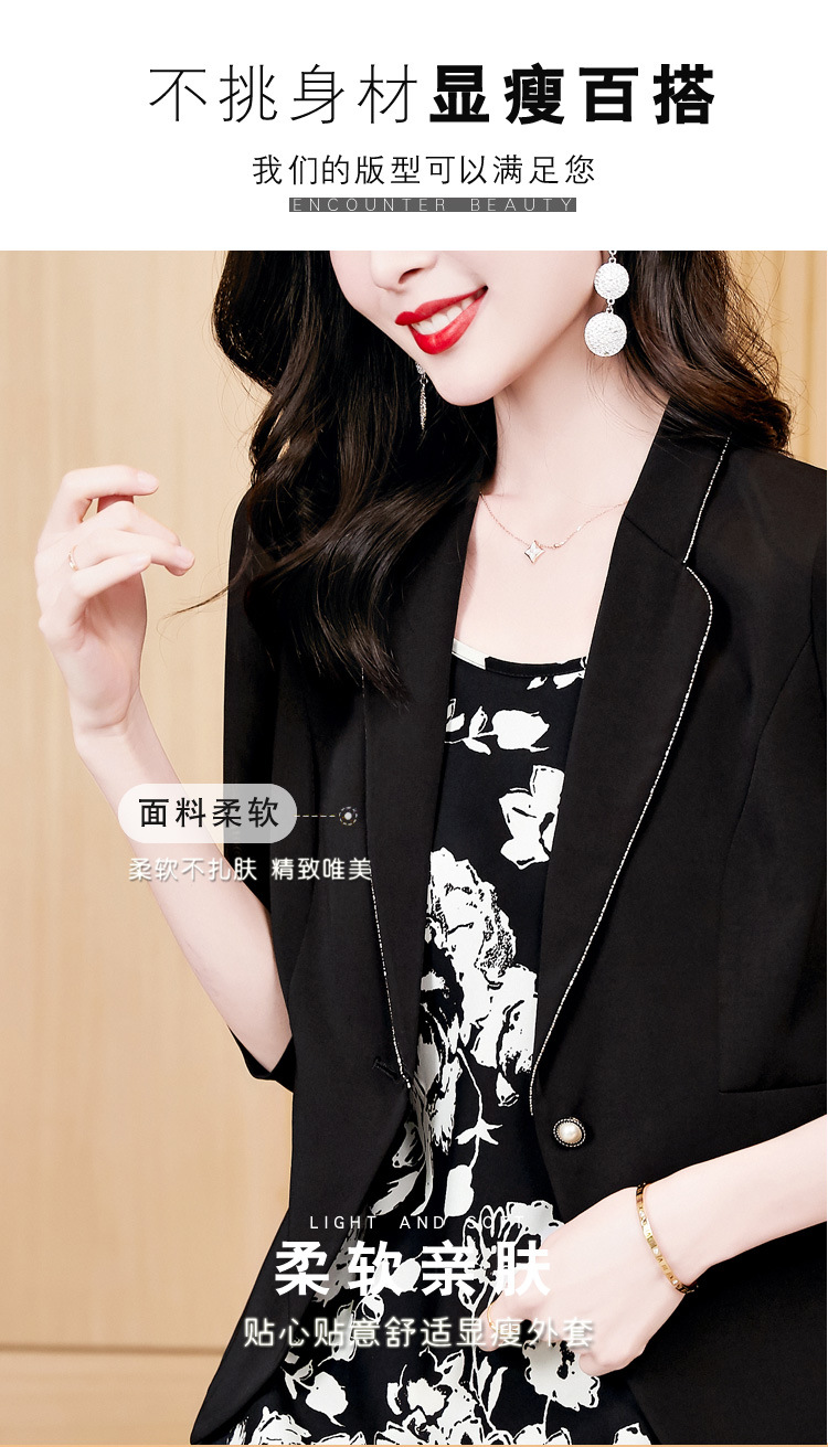 时尚洋气百搭修身黑色纽扣七分袖西装外套K-E37M2556