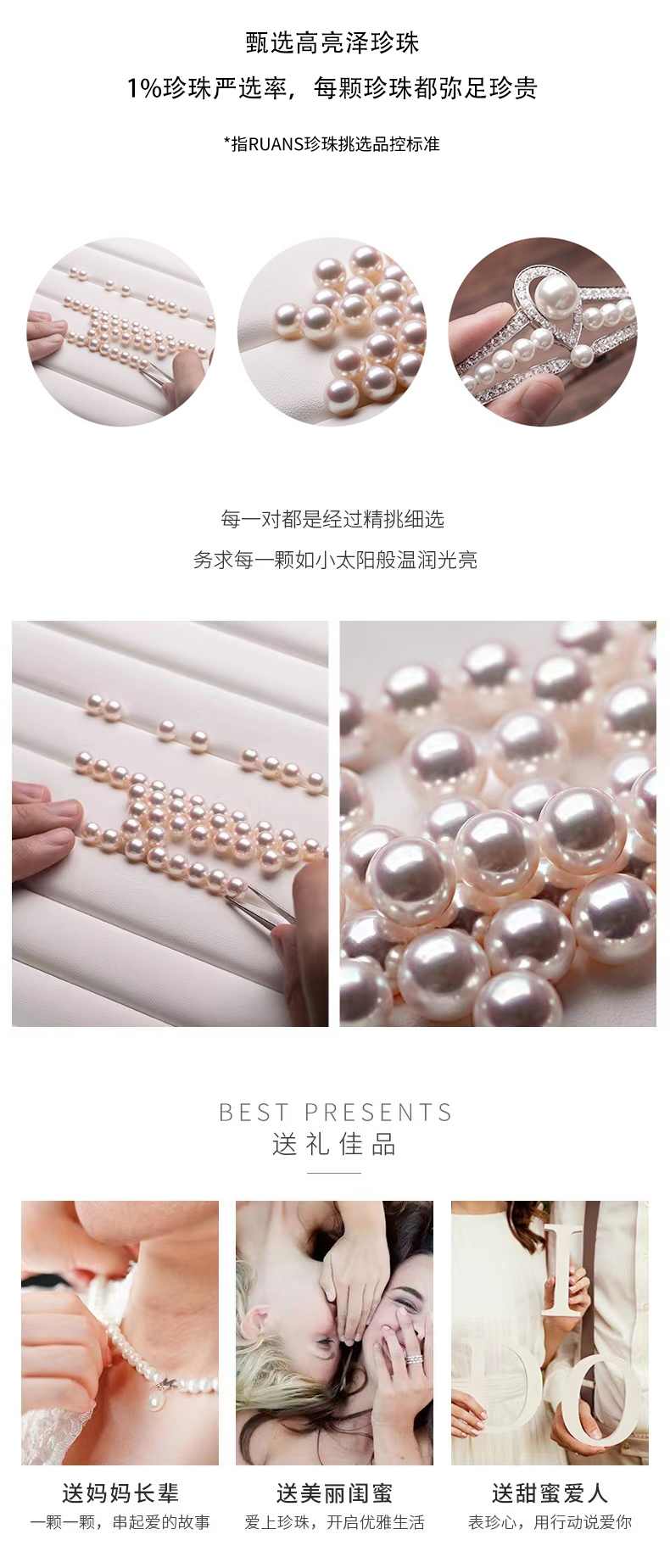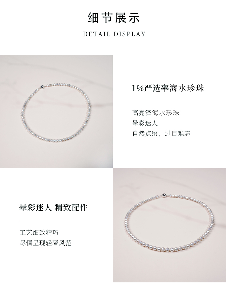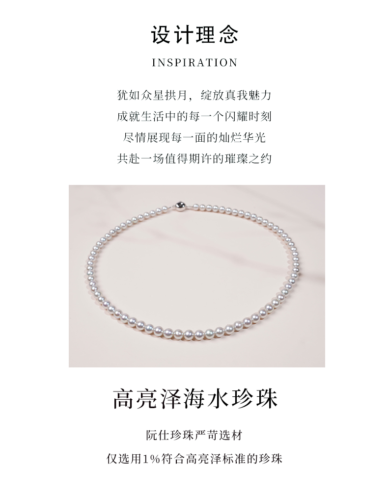 阮仕珍珠 银河系列S925银日本akoya珍珠项链 5.5-6mm 圆 微瑕 强光(预售3天)
