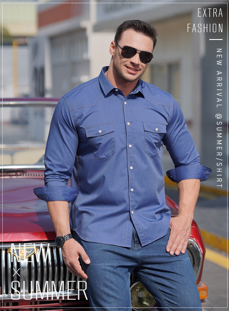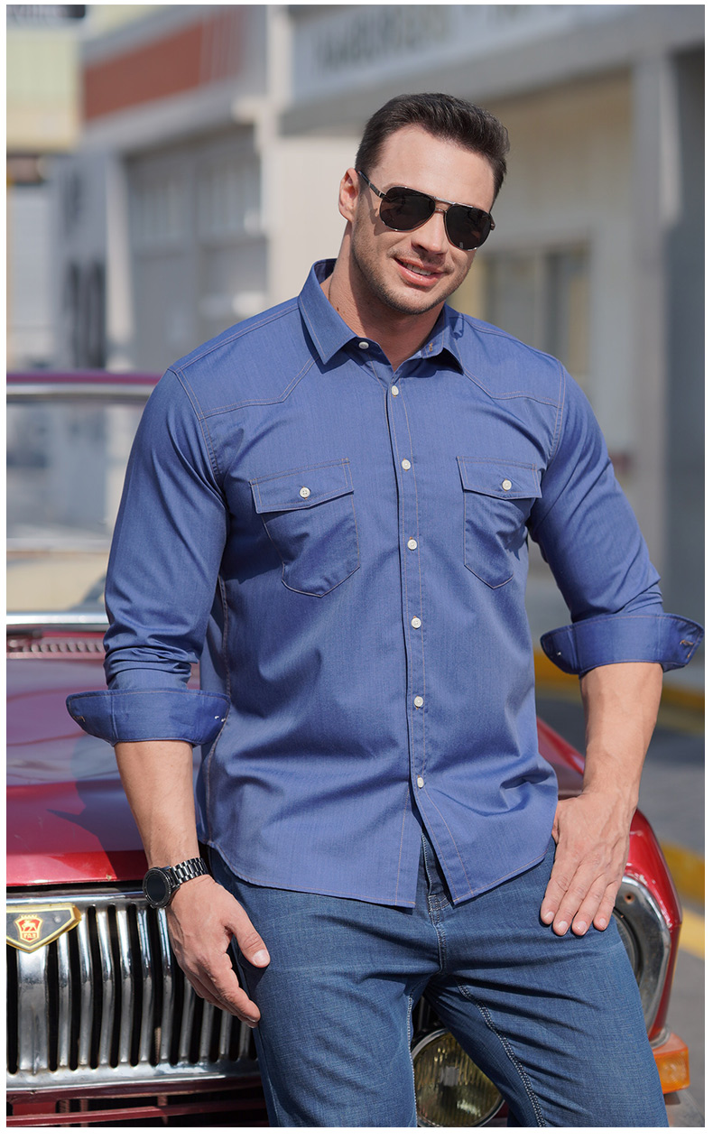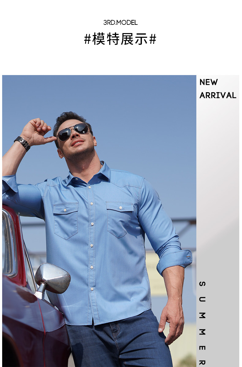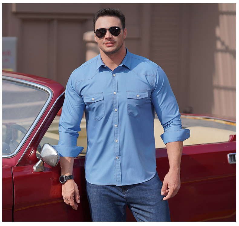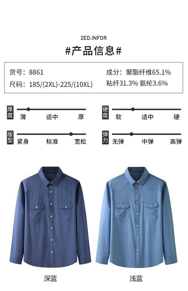 【一口价】【新款DM】 新款大依优型大码长袖衬衫弹力免烫大号牛仔衬衣加肥加大男装