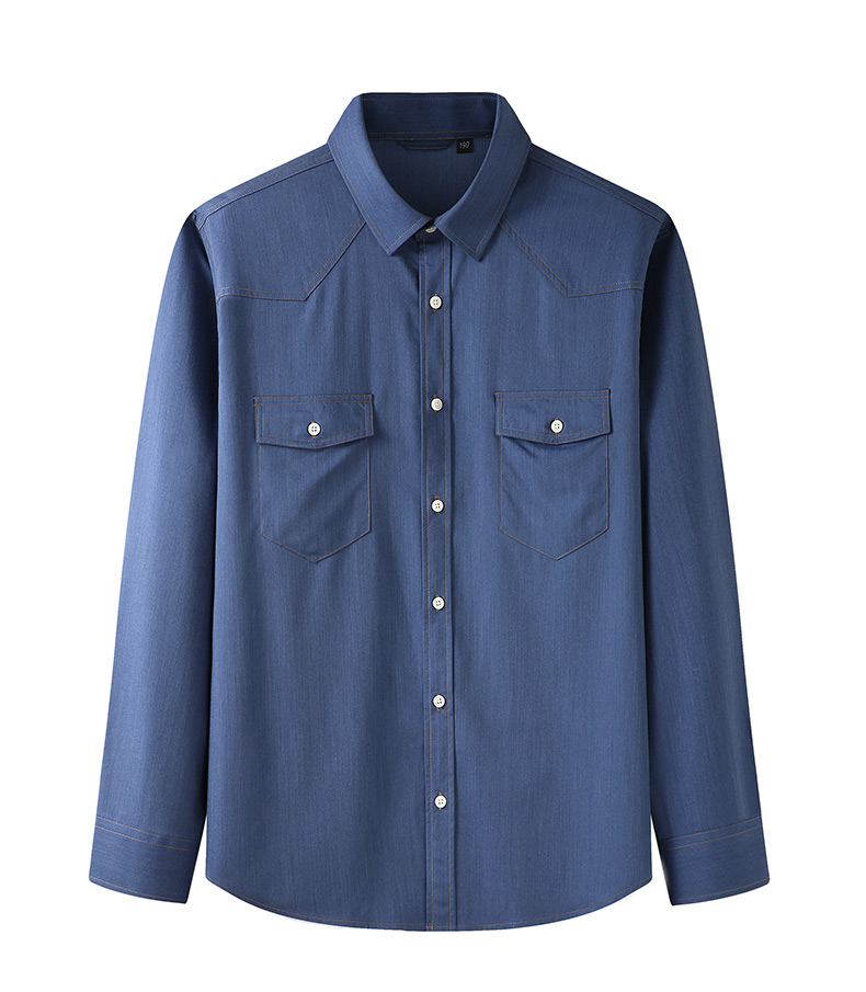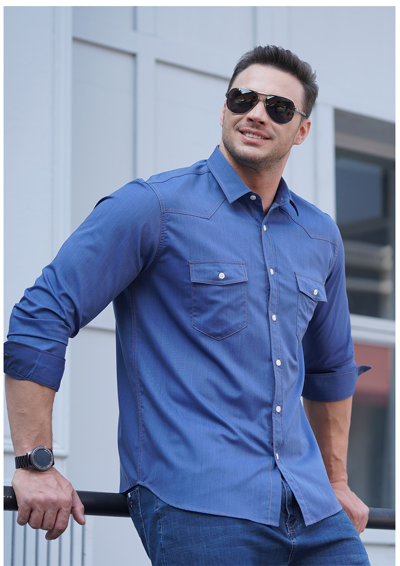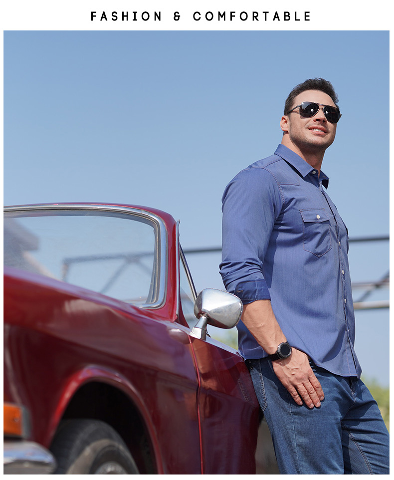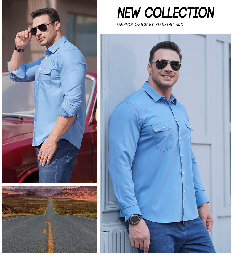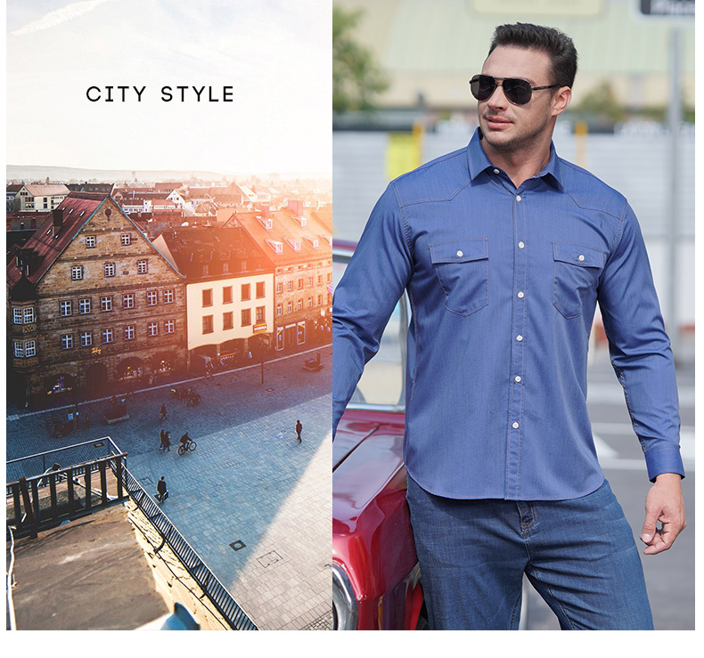 【一口价】【新款DM】 新款大依优型大码长袖衬衫弹力免烫大号牛仔衬衣加肥加大男装
