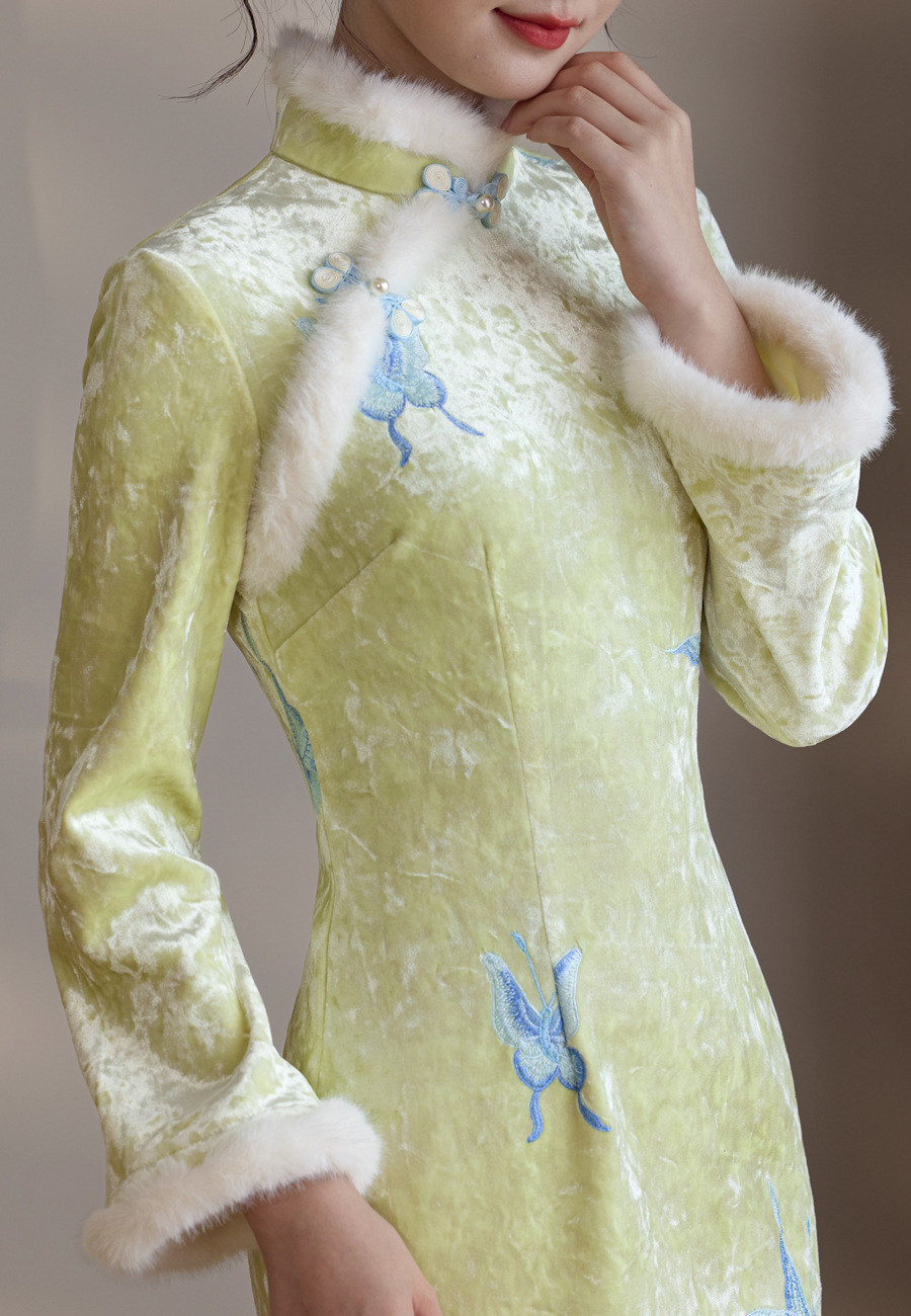 MYJ 刺绣加绒加厚国风新中式长袖改良旗袍复古 商品图3