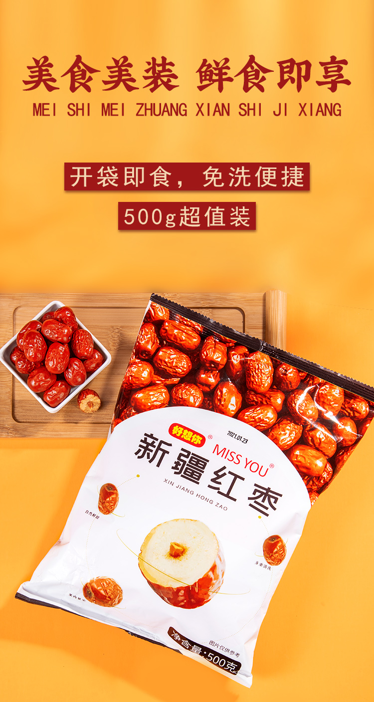 【✅19.9元特卖】好想你missyou 新疆红枣免洗即食 500g*2袋