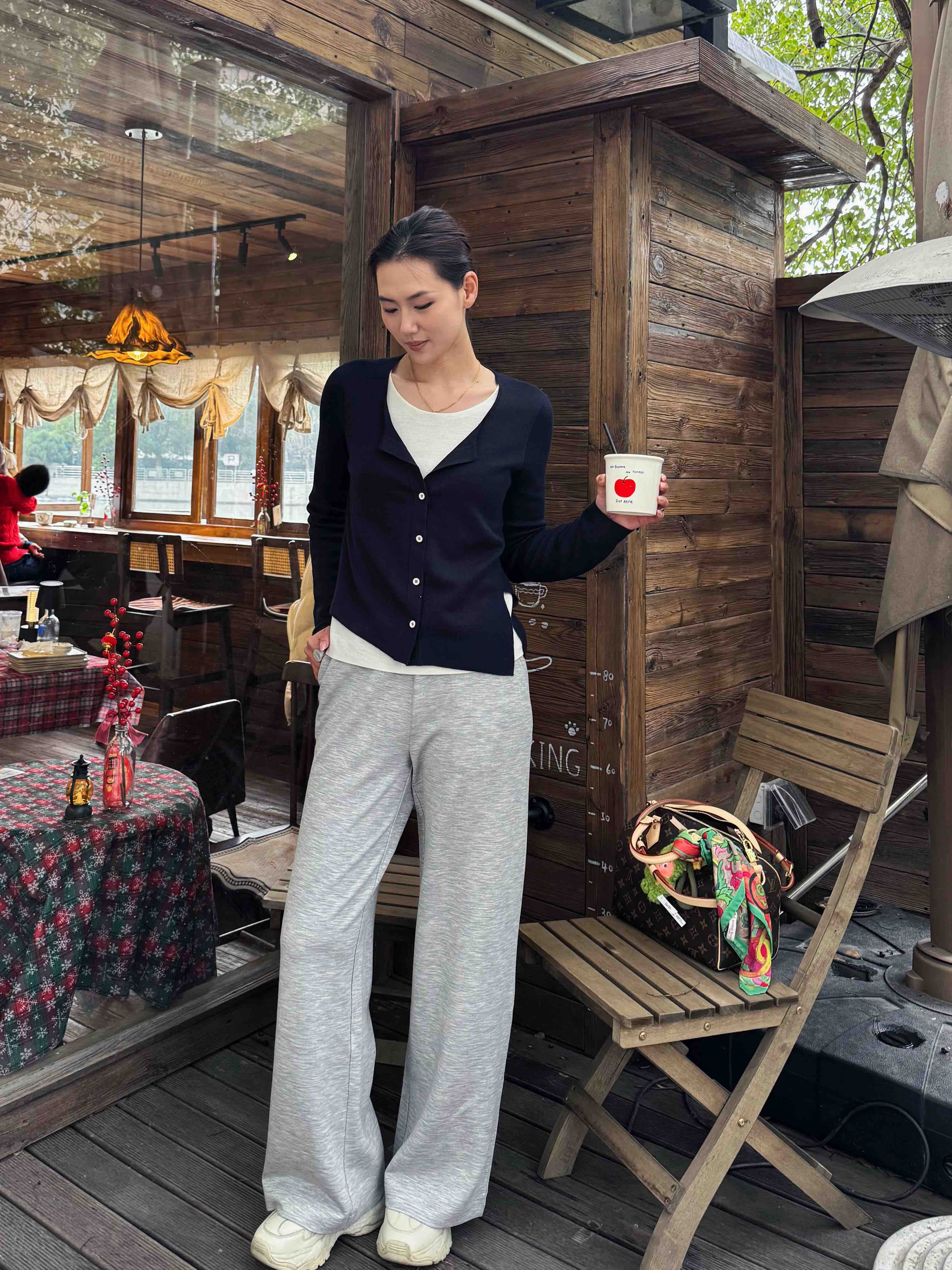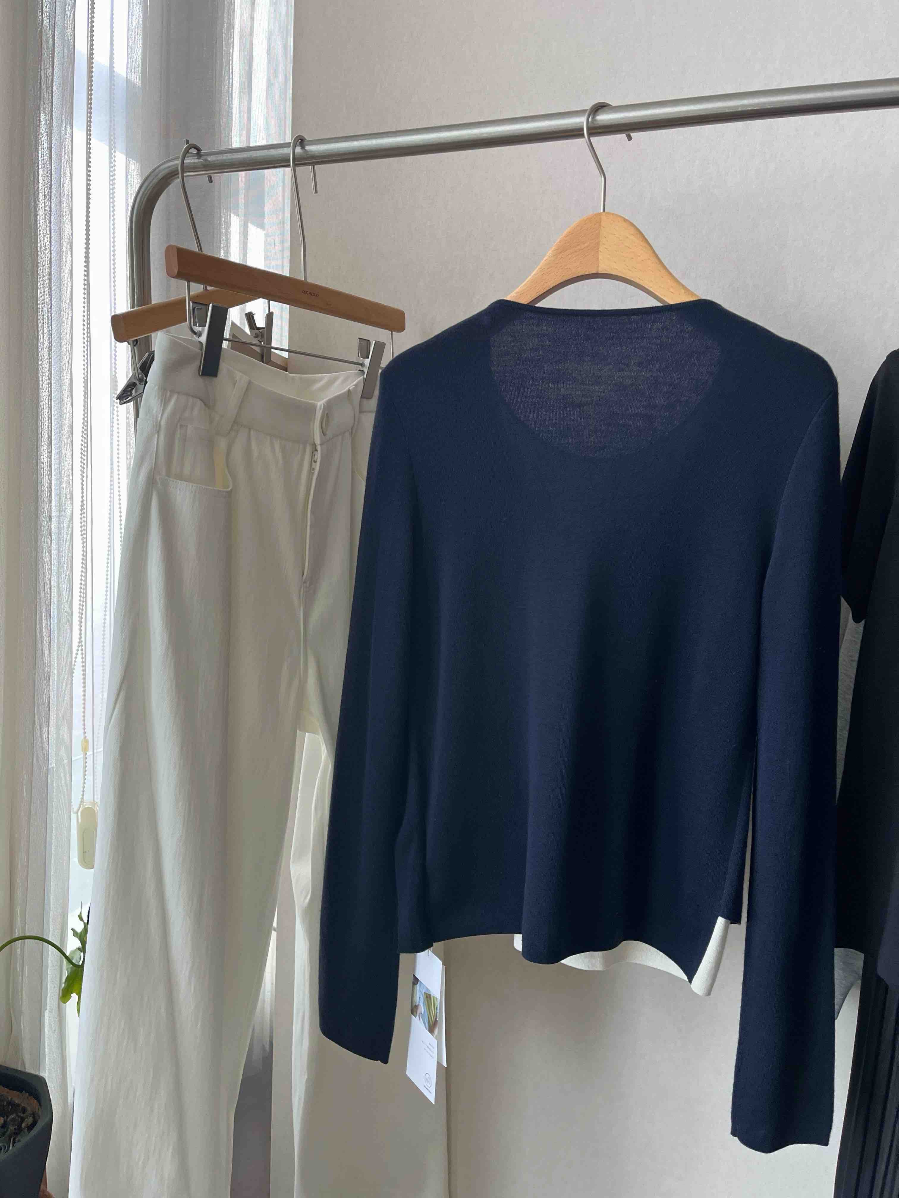内里白T领口+外搭藏青蓝毛衣,层次感拿捏得死死的!套上就走,懒人秒变“精心搭配”✨