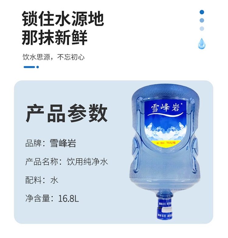 雪峰岩16.8L桶装纯净水15桶/1份【叼生活】